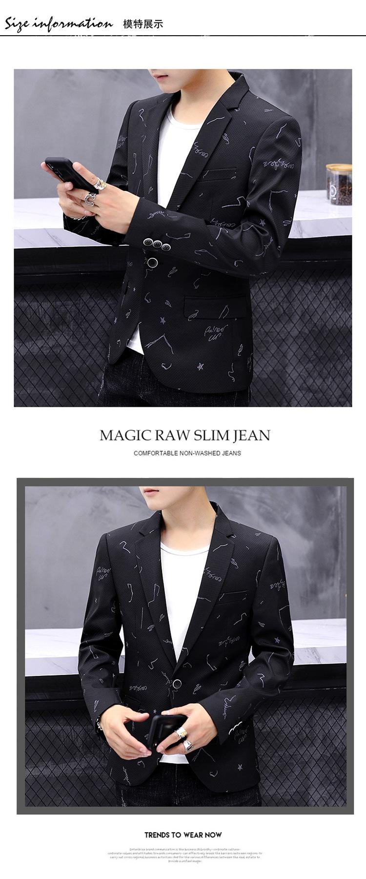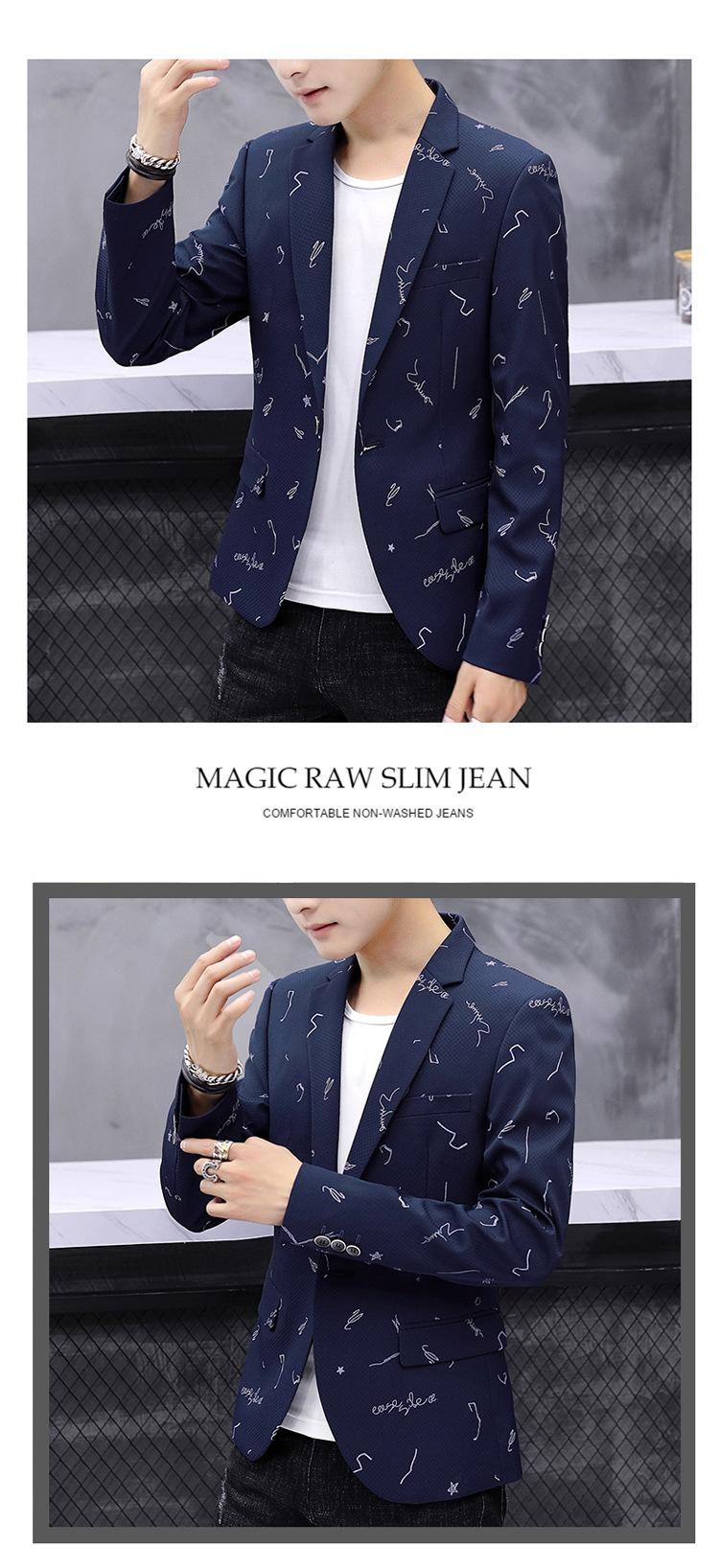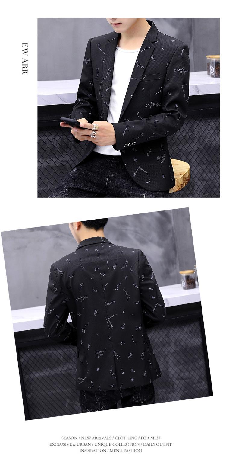 Traje Casual Nuevo de Otoño para Hombre Moderno Guapo Estampado Sencillo Chaleco Juvenil Estilo Coreano Ajustado Traje Pequeño Chaqueta de Hombre