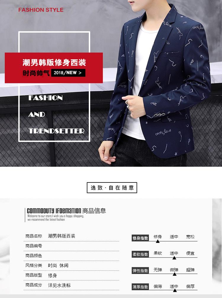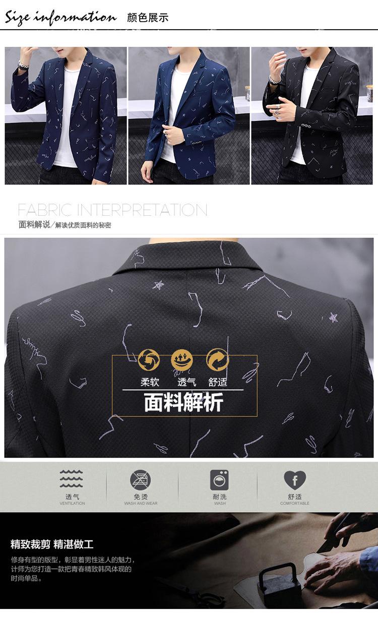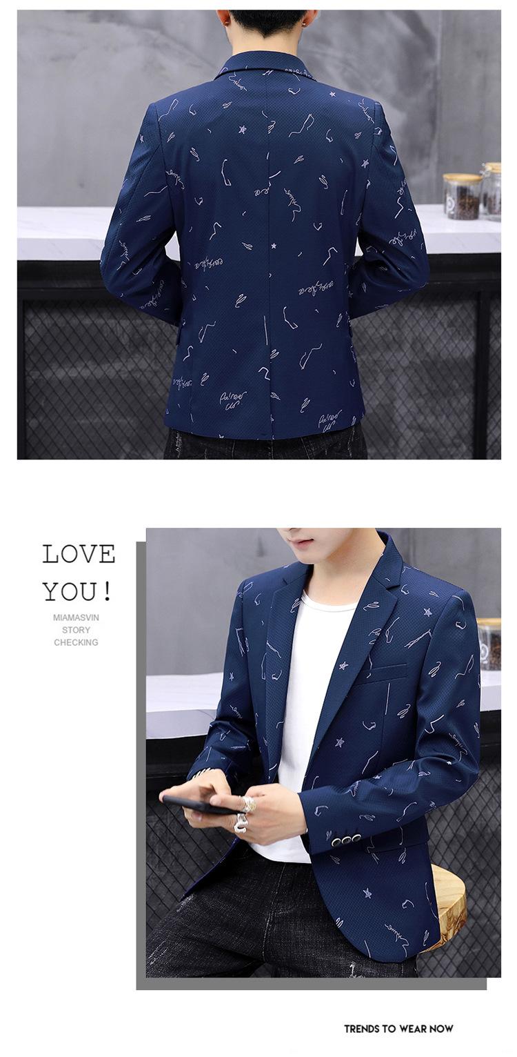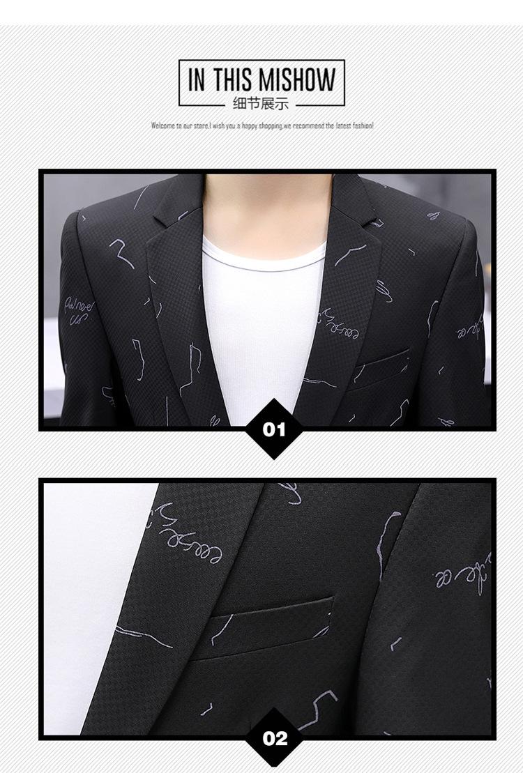Traje Casual Nuevo de Otoño para Hombre Moderno Guapo Estampado Sencillo Chaleco Juvenil Estilo Coreano Ajustado Traje Pequeño Chaqueta de Hombre