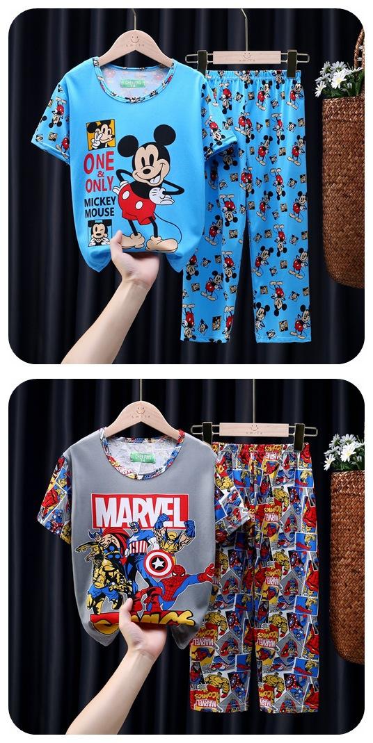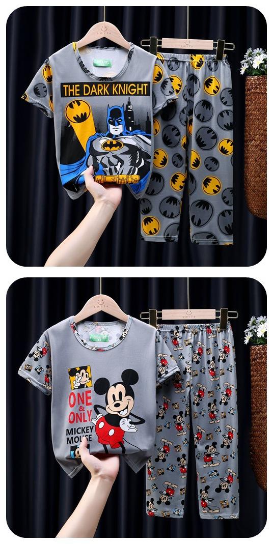 Pijamas de Verano Finos para Niños, Pantalones de Manga Corta para Bebé, Ropa de Casa para Niños, Traje de Aire Acondicionado para Niños y Niñas