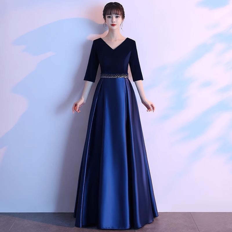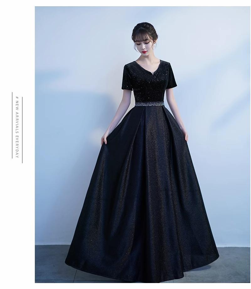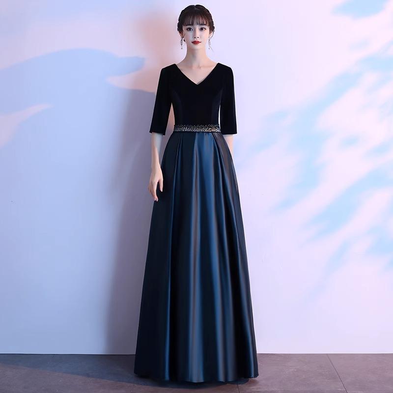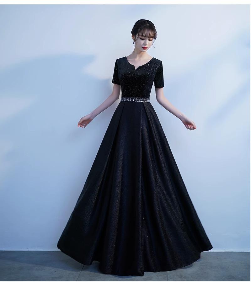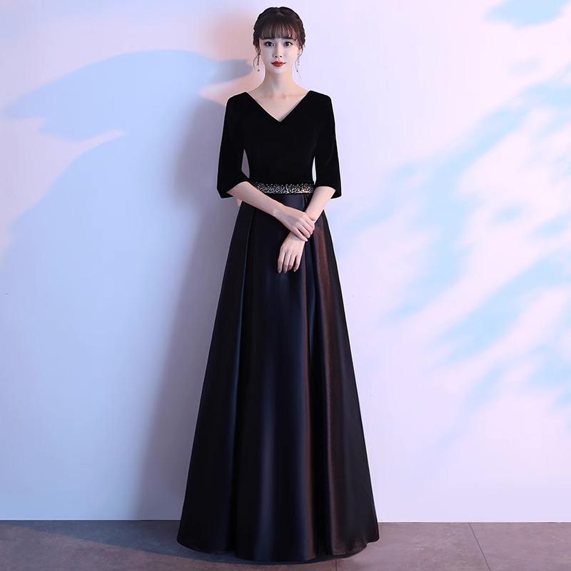 Disfraz de Coro Vestido Largo Vestido de Noche para Mujer Banquete Elegante Negro Lujo Ligero Nicho Alta Gama Vestido de Anfitrión