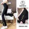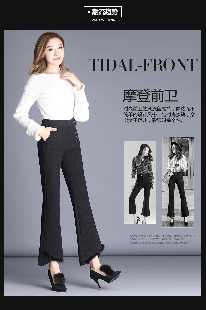 Pantalones microacampanados para mujer de nueve puntos 2023 otoño nueva moda cintura alta pantalones de cola de pez verticales delgados talla micro-pantalones