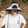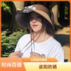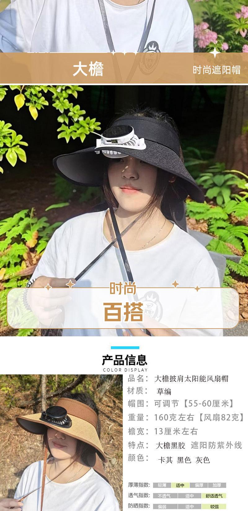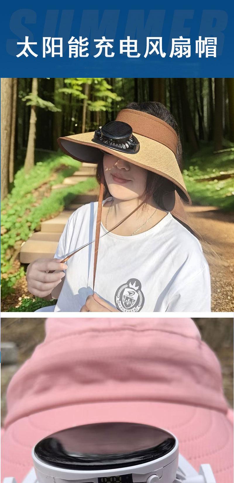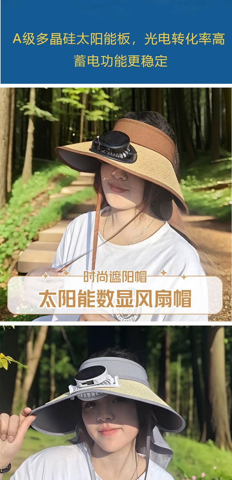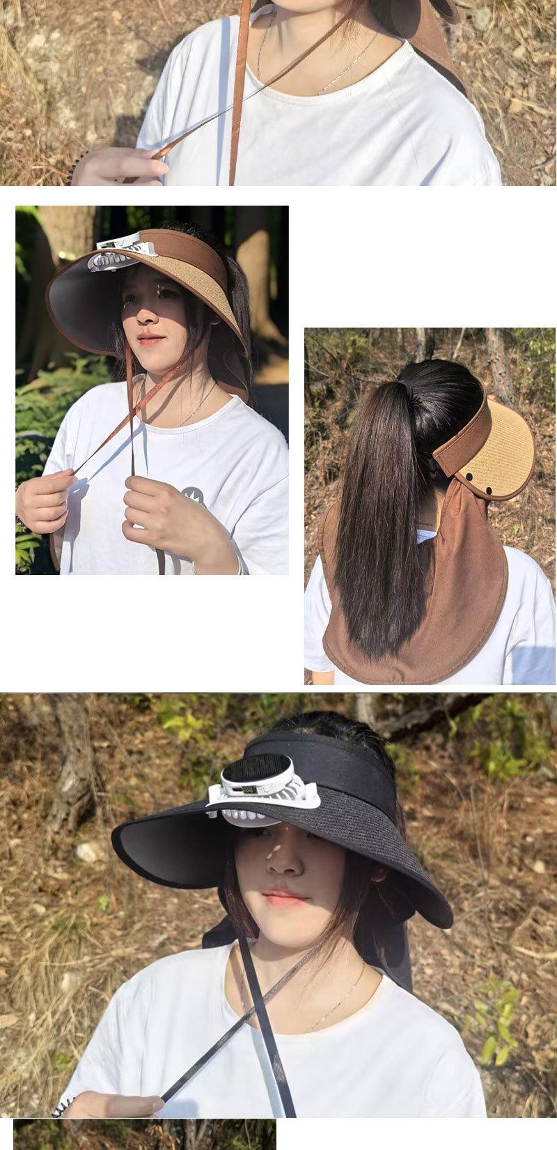 2025 Nuevo Sombrero de Sol con Ventilador Solar Protección Solar Verano para Mujer Protección de Cuello Protección UV Ala Ancha Paja Copa Hueca Sombrero de Sol