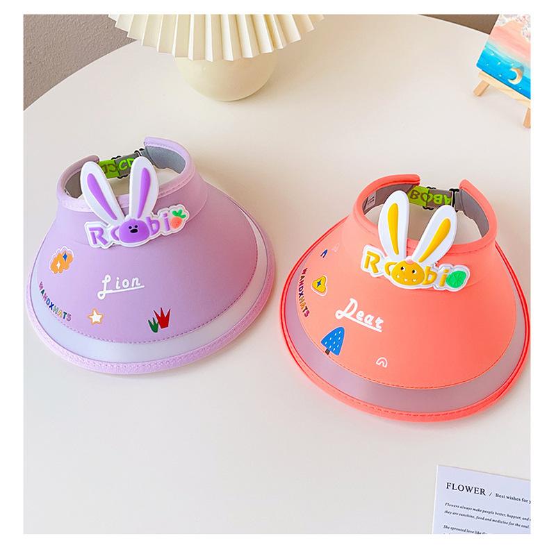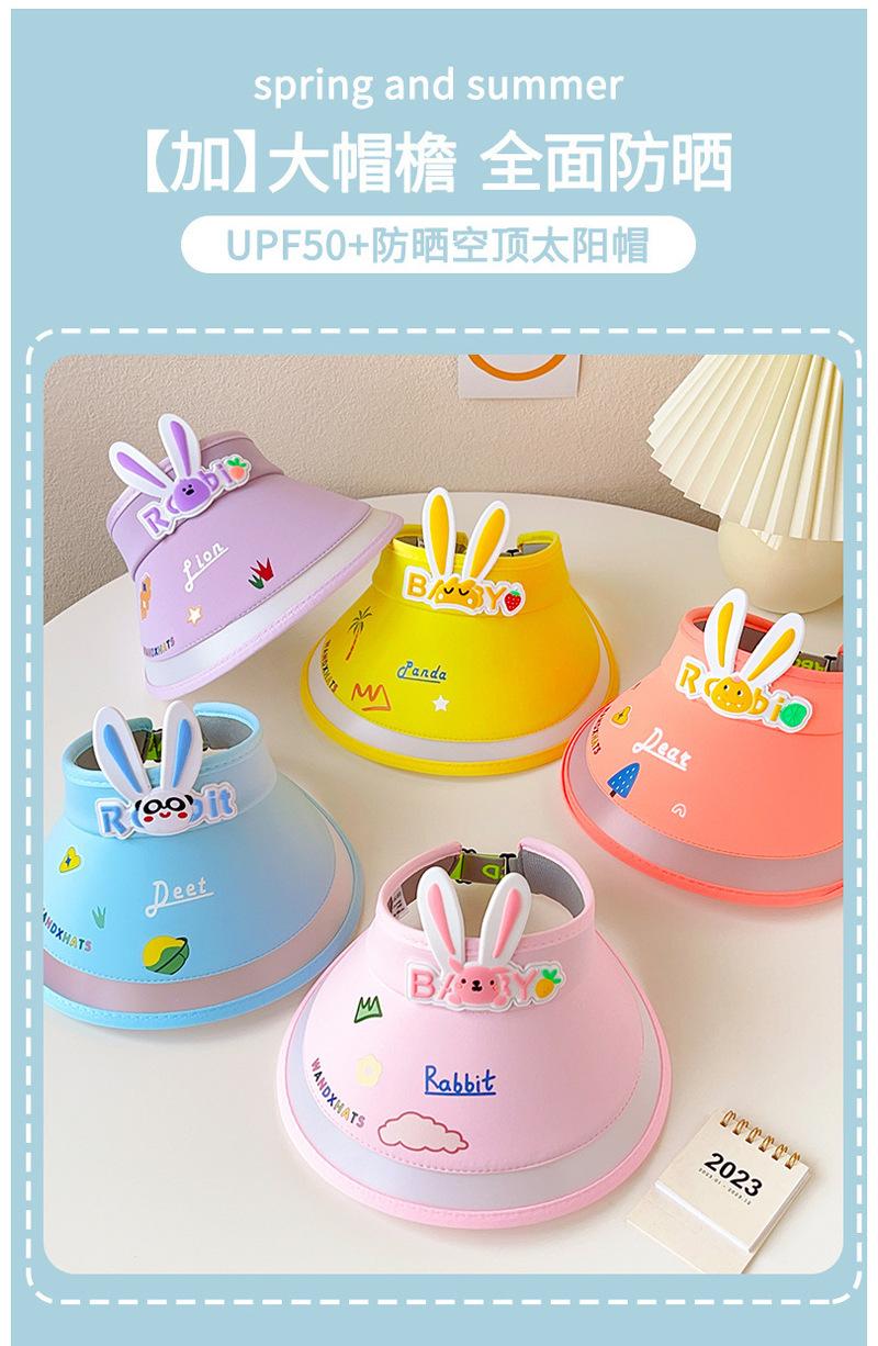 Sombrero de sol para niños, protector solar, vacío, estilo coreano, de verano, con alero grande, bonito sombrero de sol para bebé con diseño de conejito de dibujos animados.