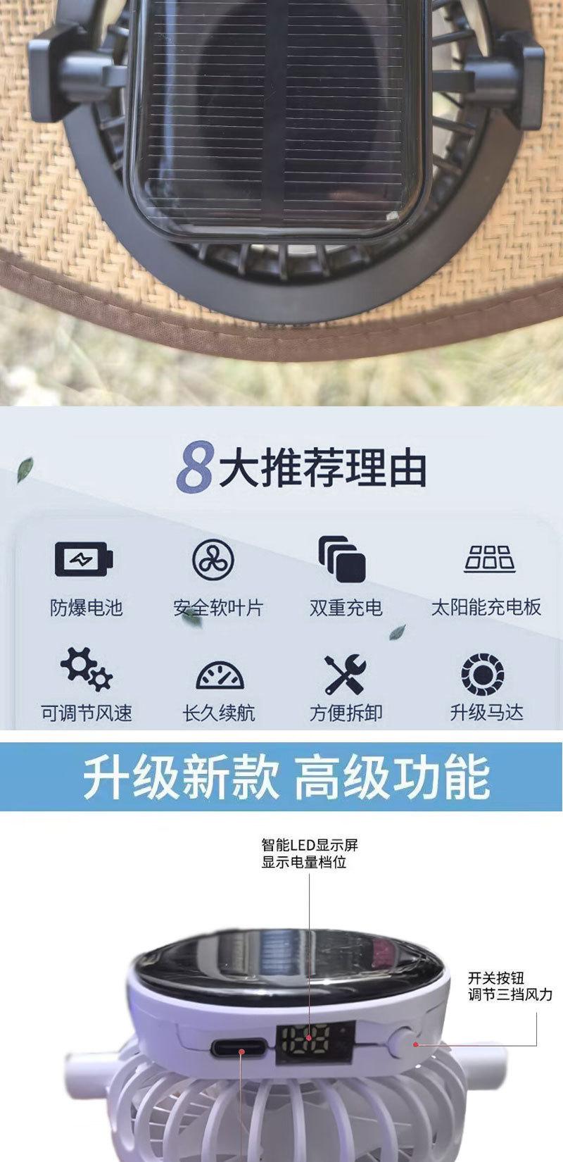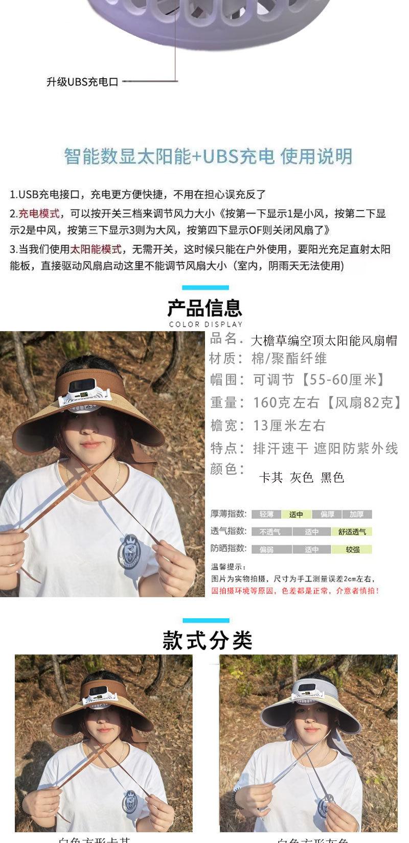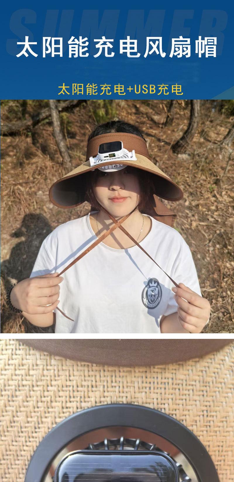 Nuevo Sombrero de Paja Tejida con Carga Solar y Ventilador para Mujer, Visera de Verano para Exteriores con Ala Ancha, Sombrero con Protección Solar de Revestimiento Negro