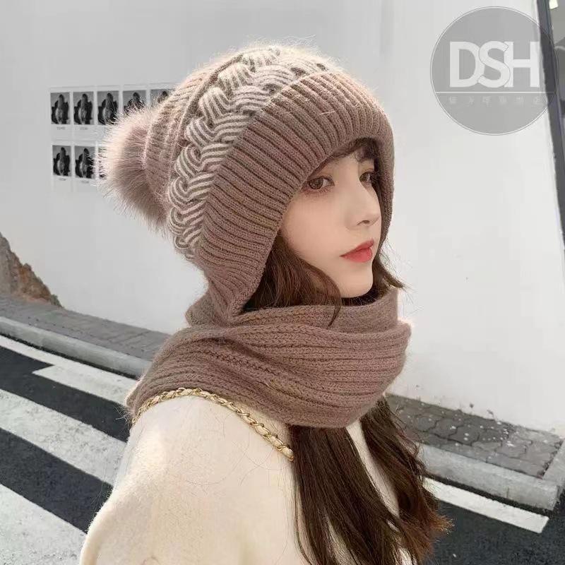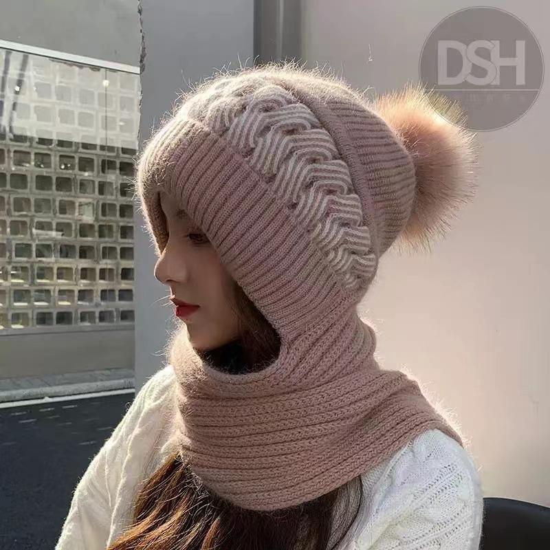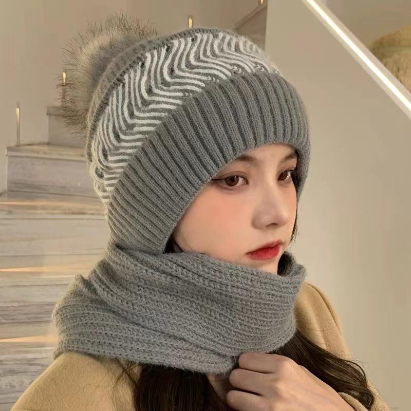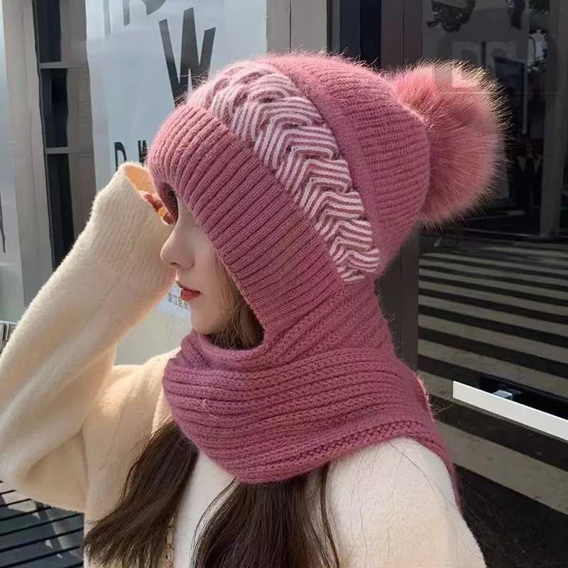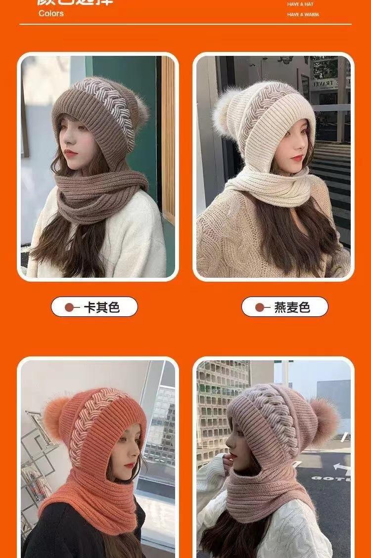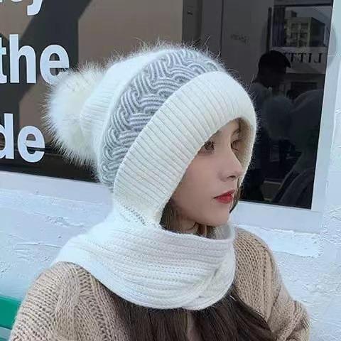 Gorro Invierno Mujer Cálido Más Terciopelo Espesar Damas Bufanda Invierno Integrado Terciopelo Ardilla Gorro a Prueba de Viento y Nieve Estilo Rojo de Internet Protección contra el Frío