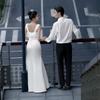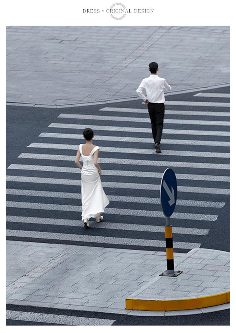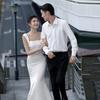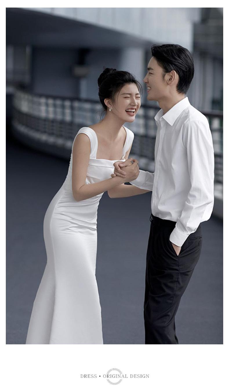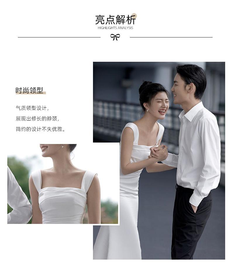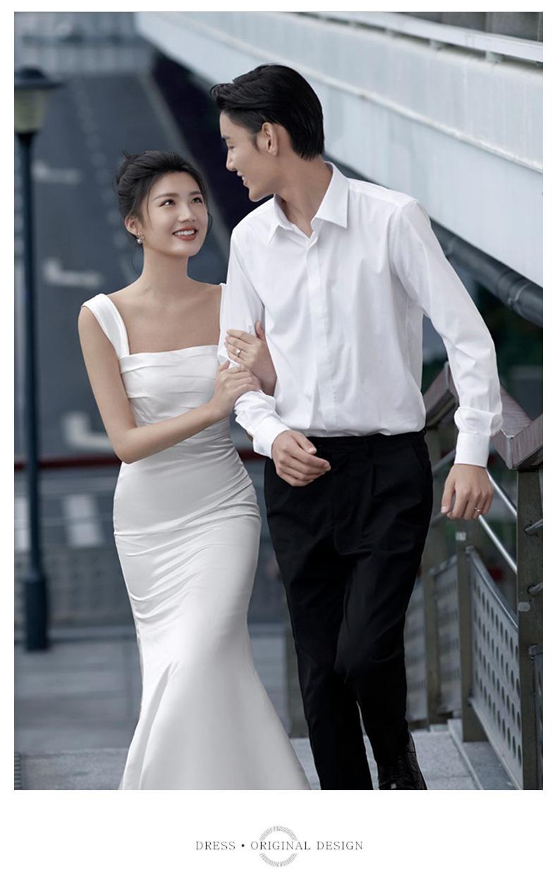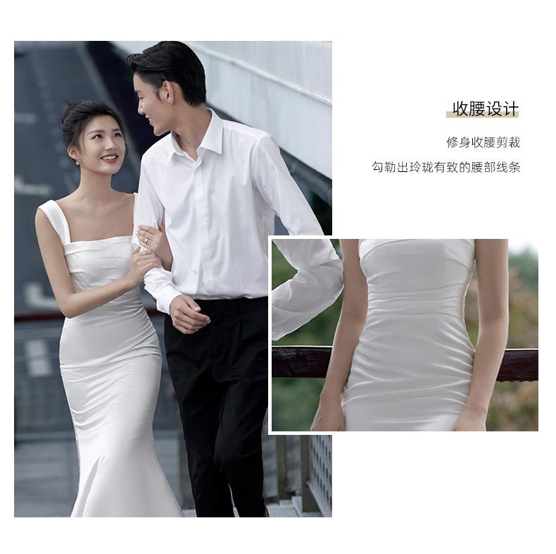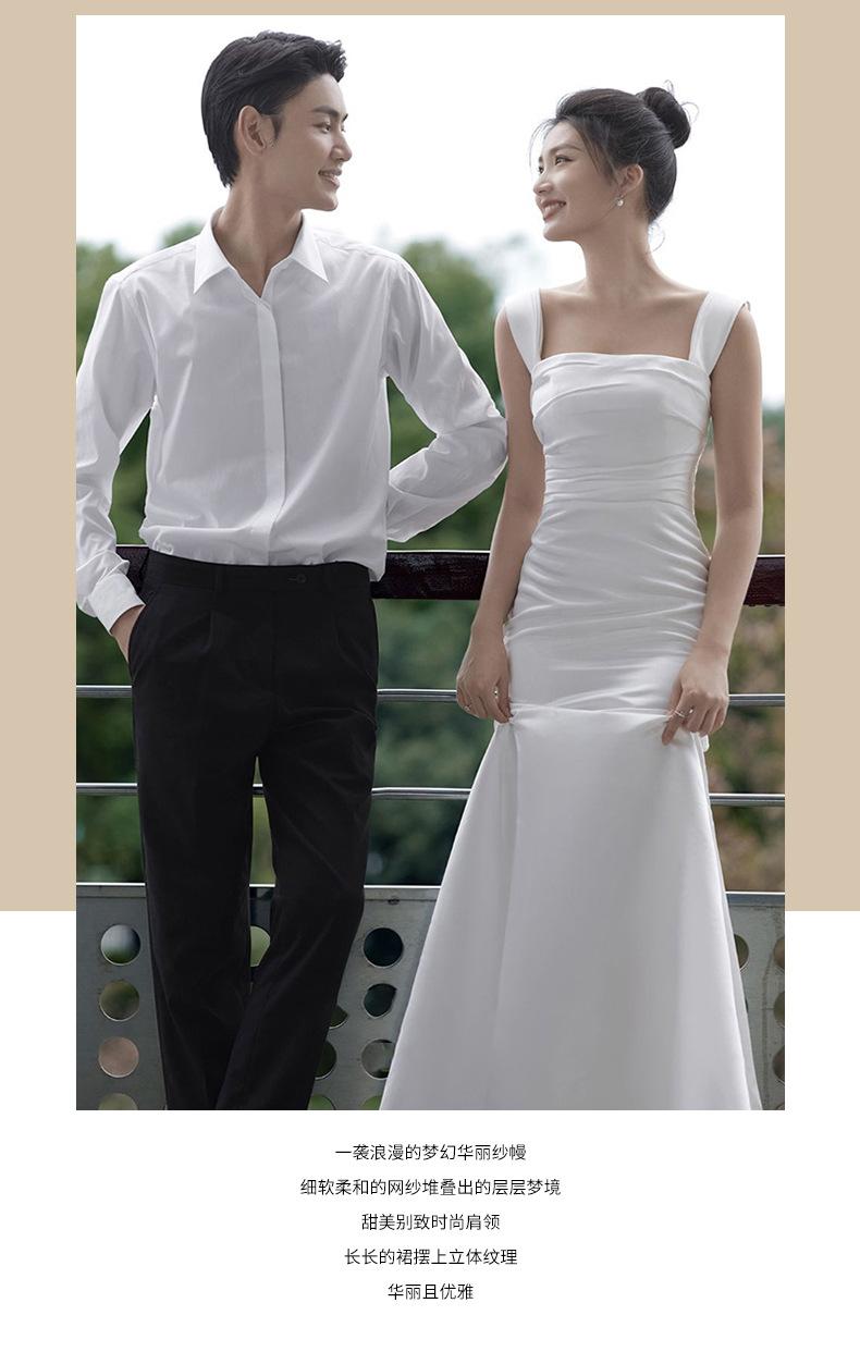 Vestido de Novia Francés con Tirantes 2025 Nuevo Novia Boda Sencillo Bienvenida Salida Gasa Elegante Cola de Pez Ajustado