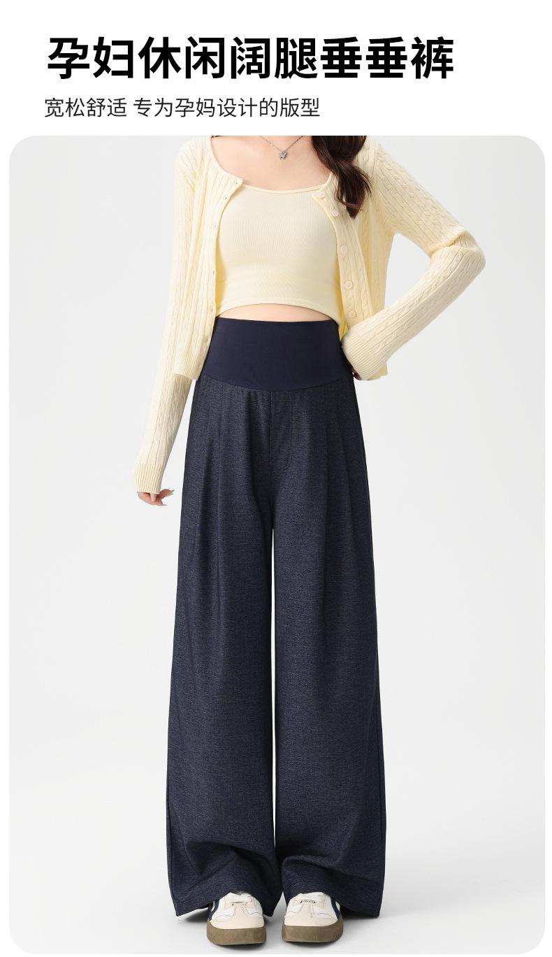 Pantalones de maternidad estilo primavera y otoño ropa exterior 2025 nuevo estilo maternidad imitación mezclilla soporte vientre pantalones de pierna ancha pantalones largos de maternidad ropa de otoño