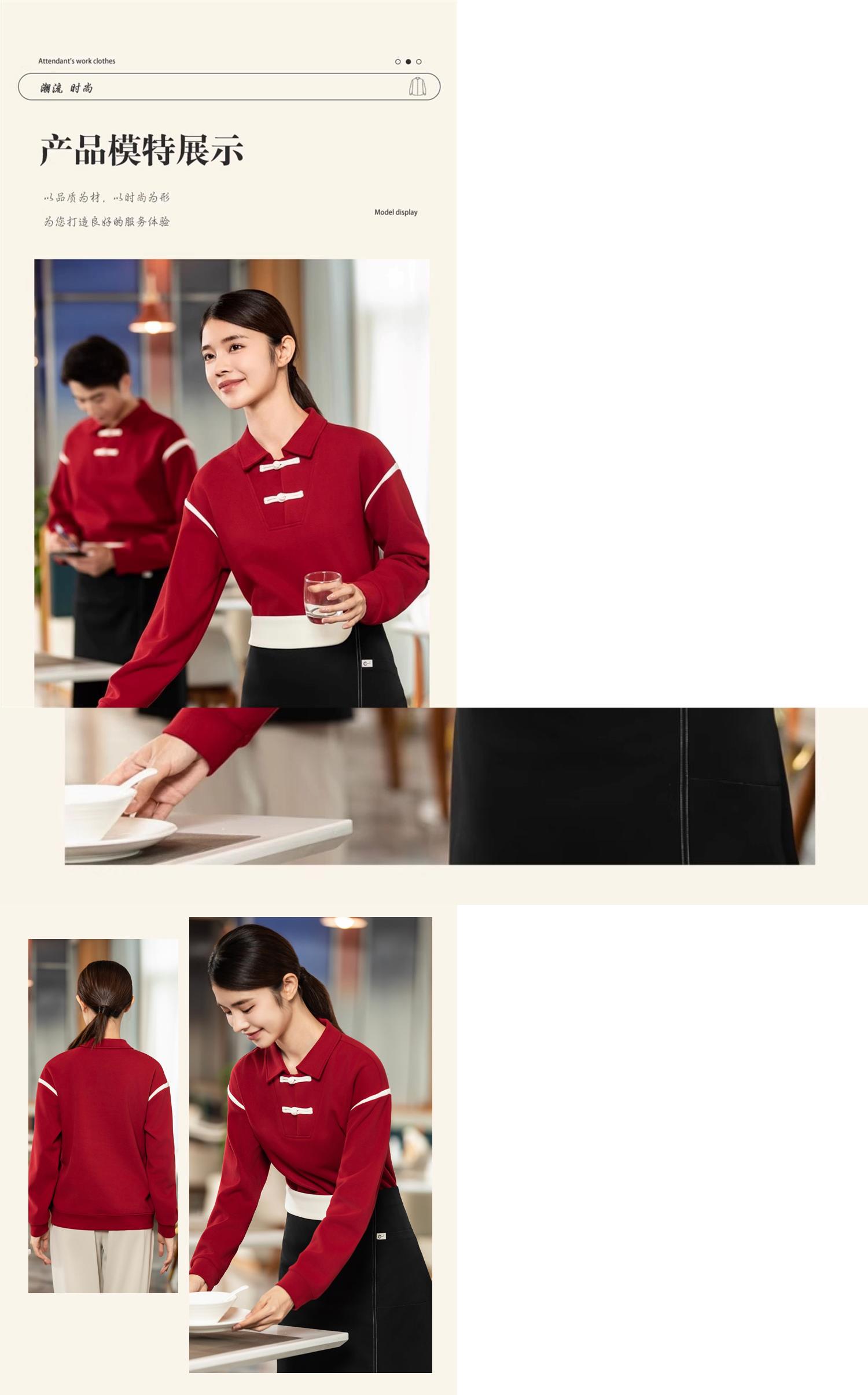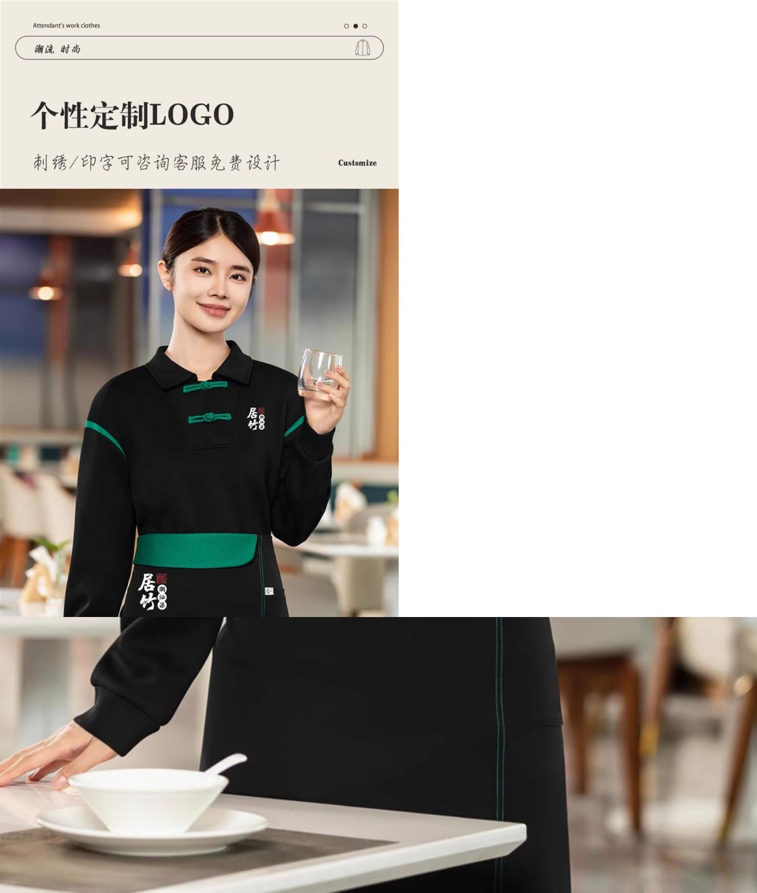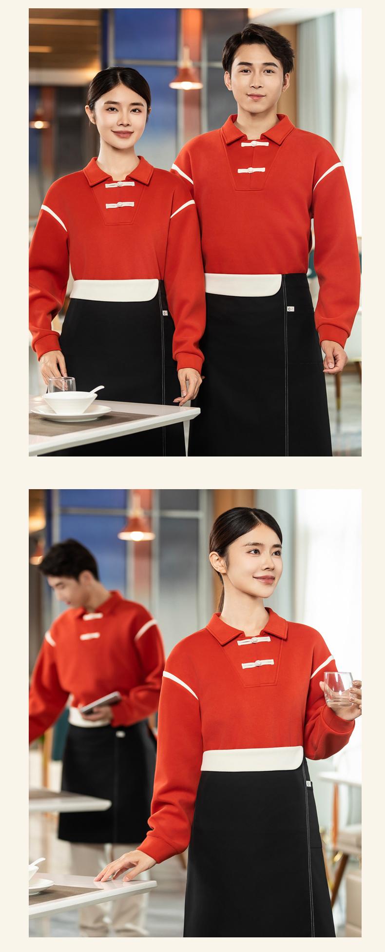 Ropa de Trabajo de Camarero de Catering Ropa de Manga Larga Otoño e Invierno Restaurante Restaurante Restaurante de Fideos Barbecue Hotpot Suéter Mujer