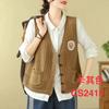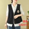 Chaleco de Algodón Suéter de Punto para Mujer 2024 Primavera Nuevo Estilo Suéter sin Mangas Cuello en V Chaleco Holgado Ropa Exterior Estilo Retro Literario