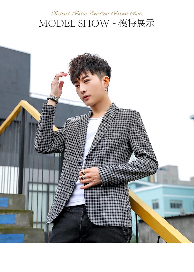 Traje Casual para Hombre Ropa Casual Casual Estilo Coreano Guapo Moderno Ajustado Personalidad Cuadros Traje Pequeño Moderno Soltero Occidental Top Chaqueta