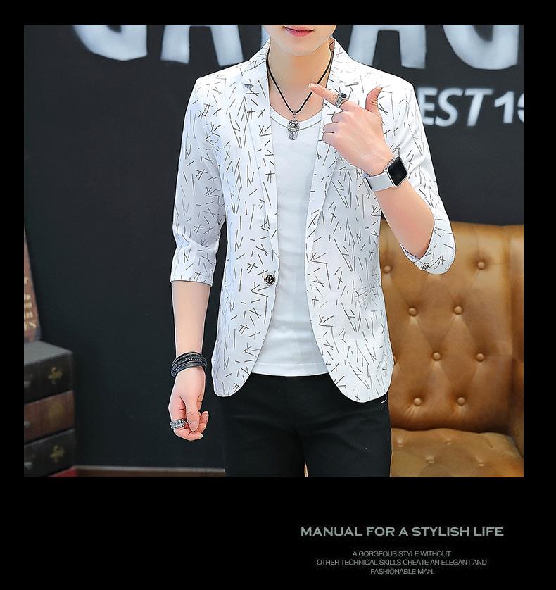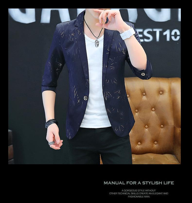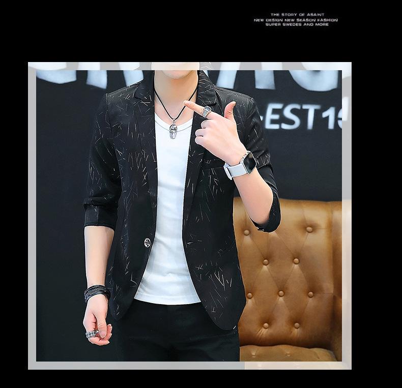 Traje Pequeño Daifa para Hombre Primavera y Otoño Nuevo Casual Manga Larga Chaqueta de Traje Ajustado Coreano Estampado Guapo Juvenil Moderno