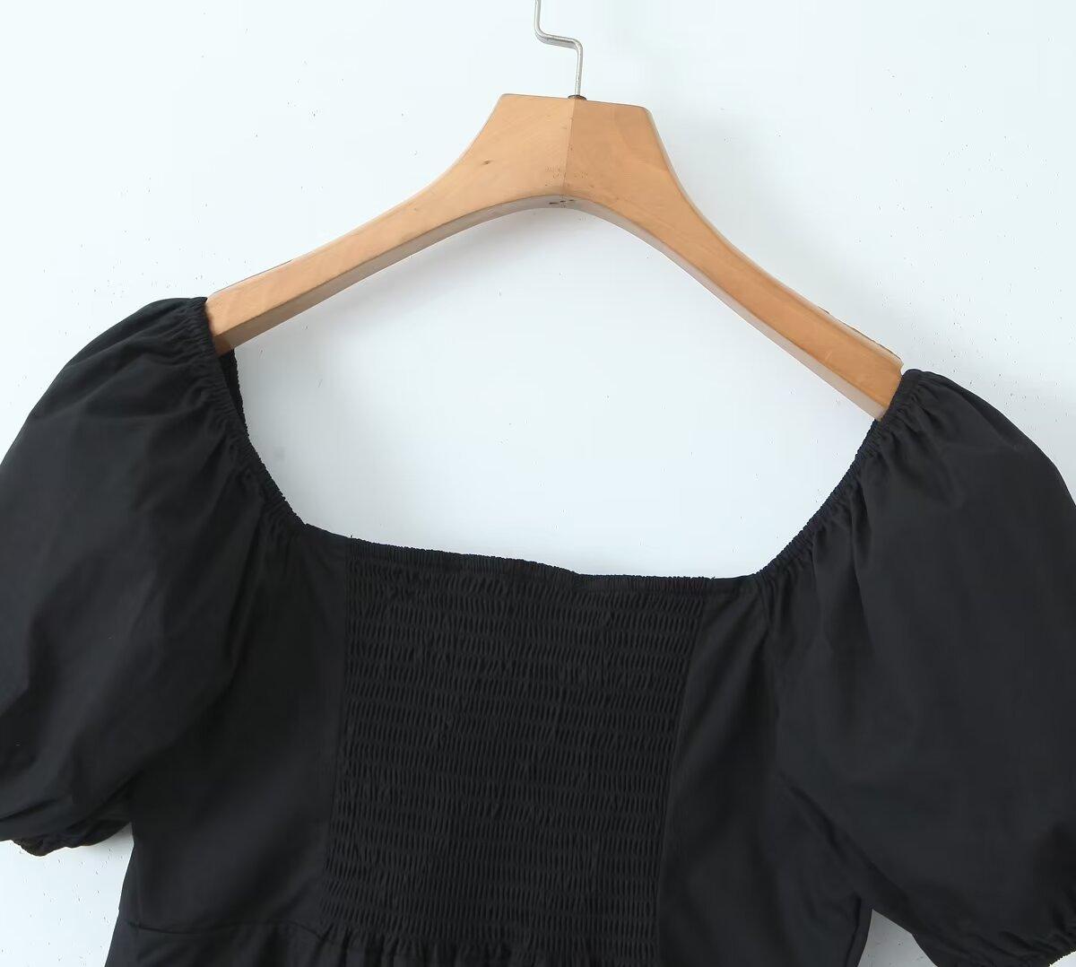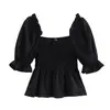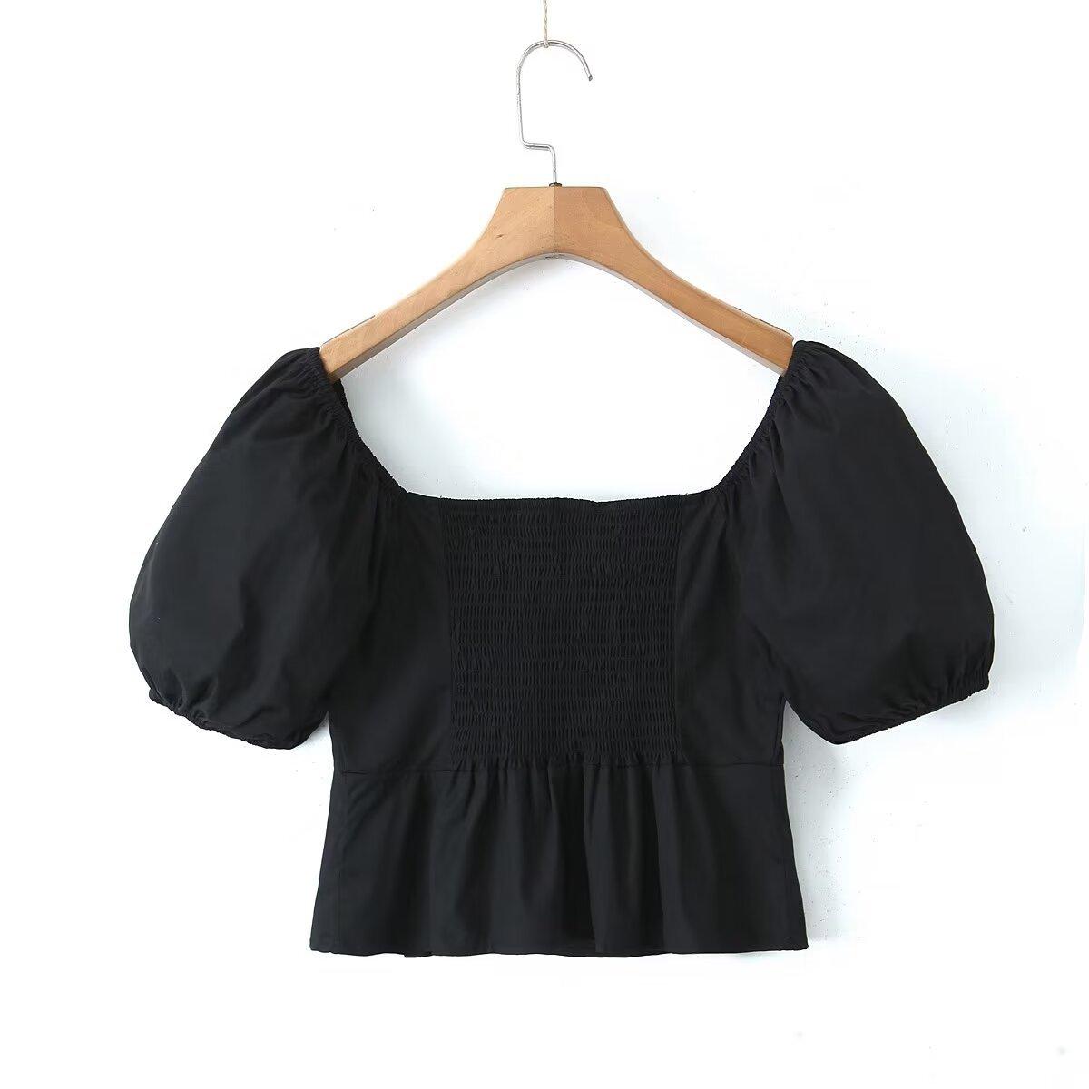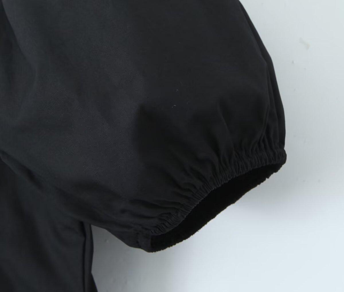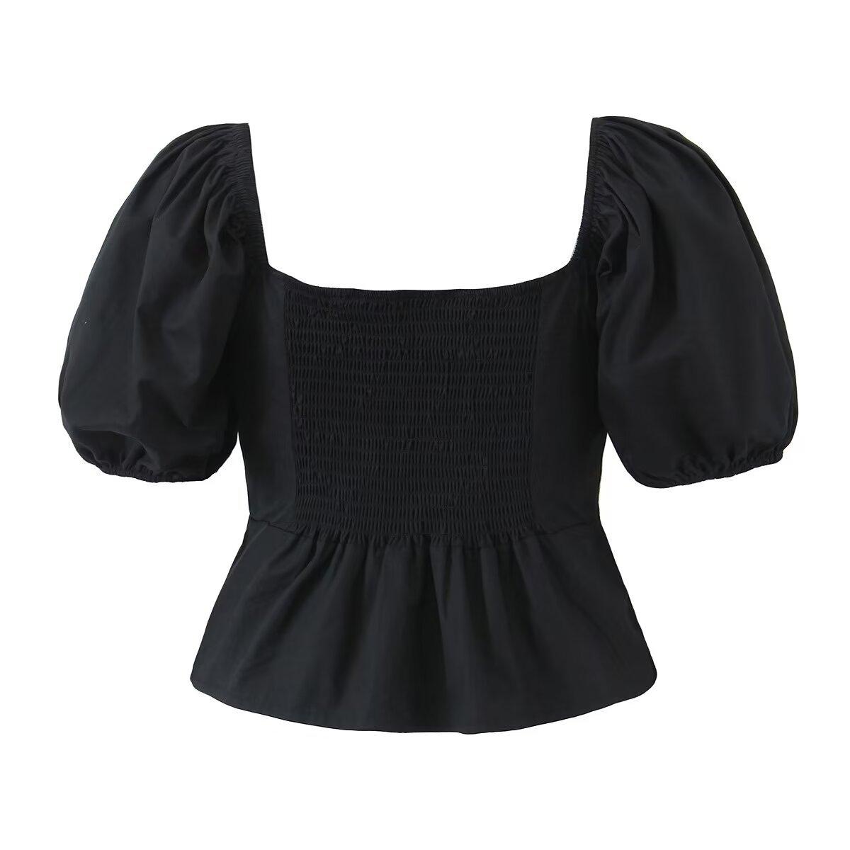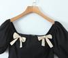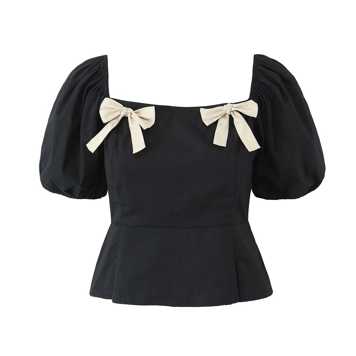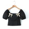 Venta al por mayor 2024 primavera nuevo estilo europeo y americano camisa negra de mujer con lazo, cuello cuadrado