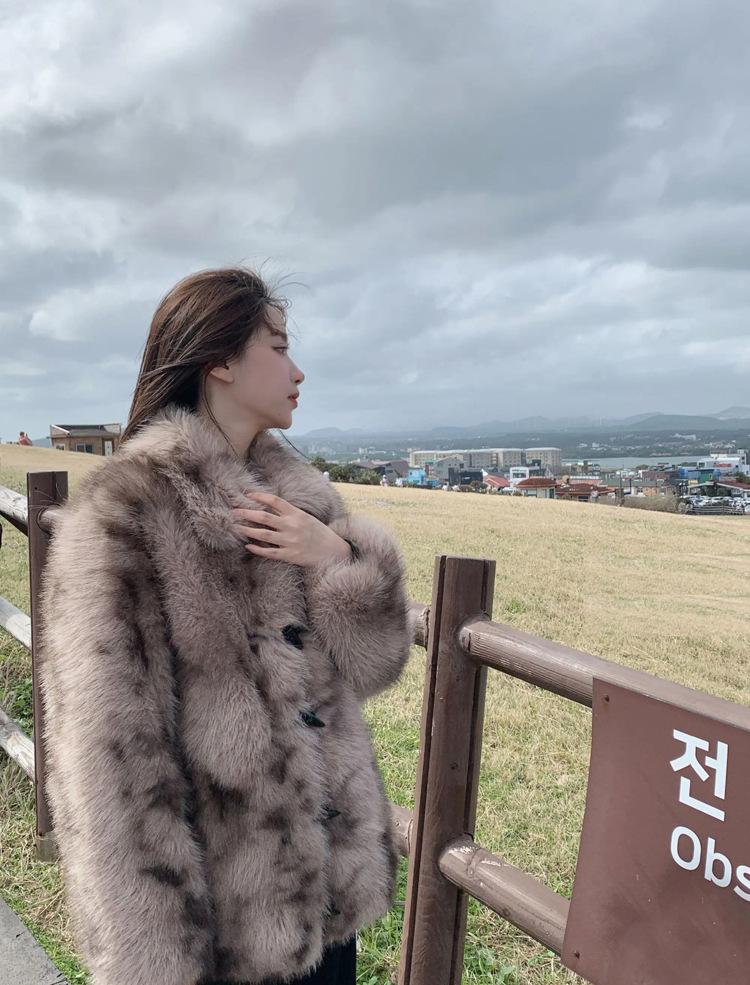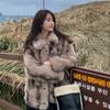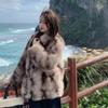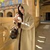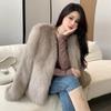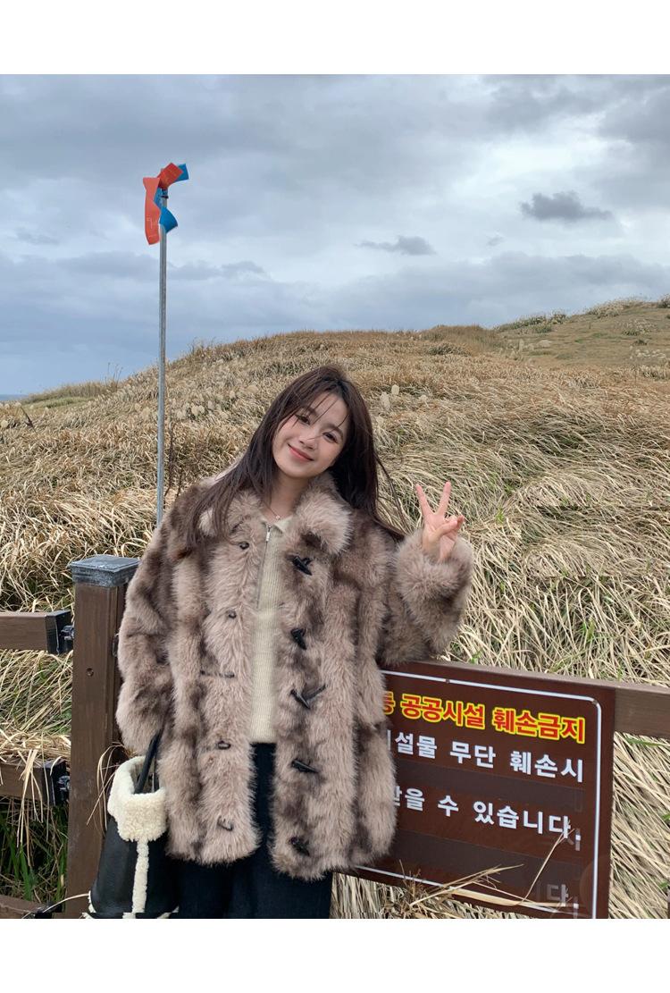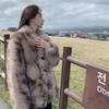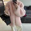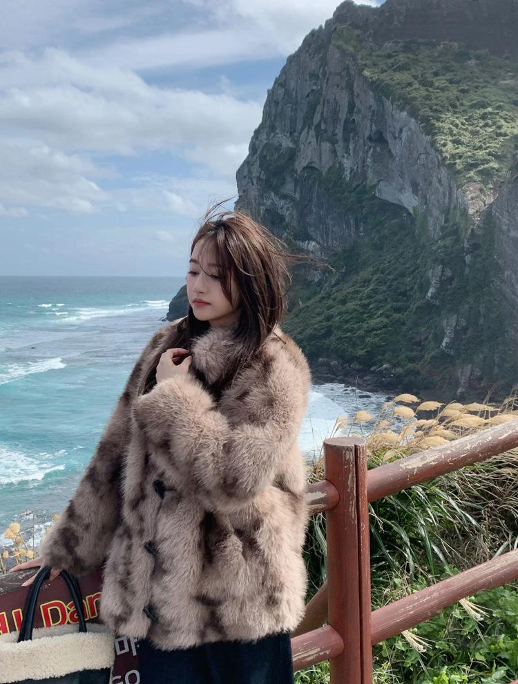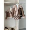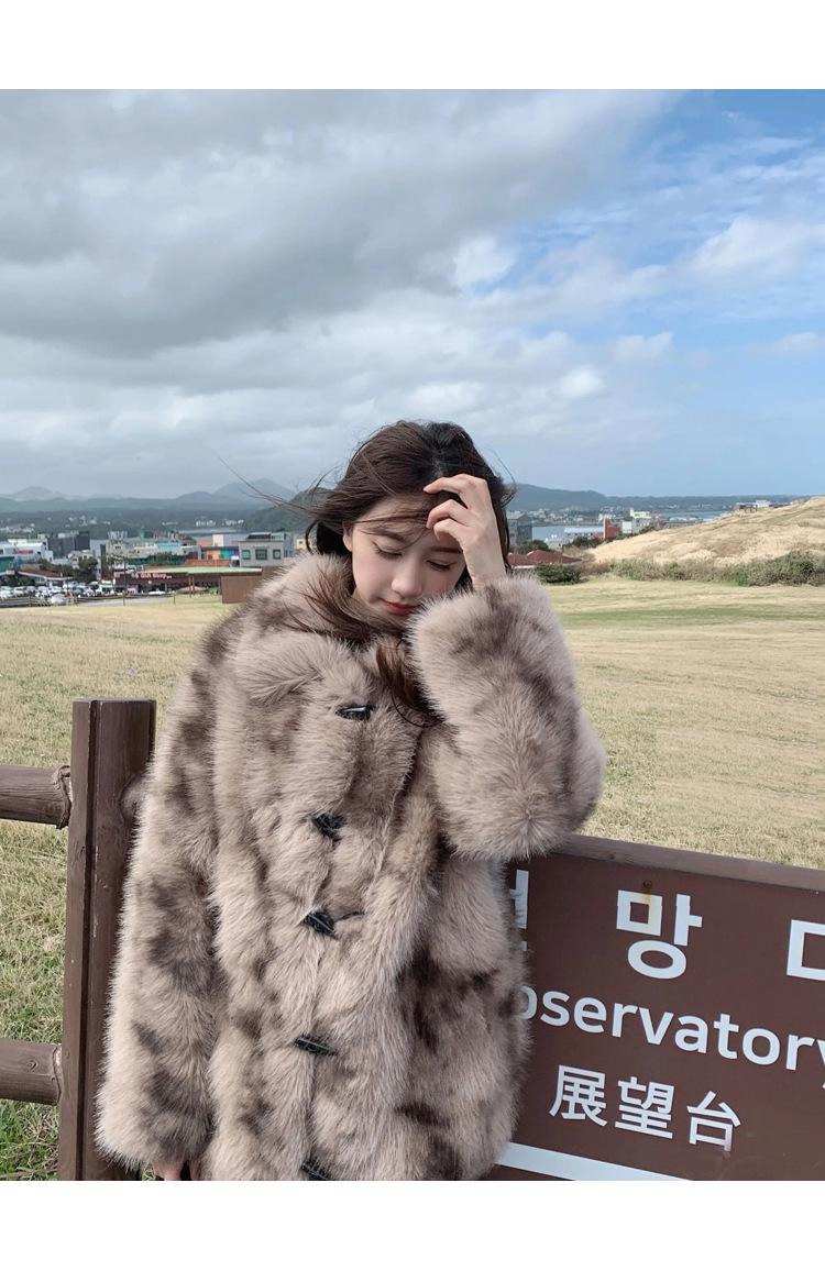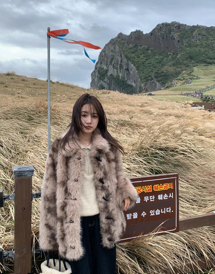 Abrigo de piel ecológica de otoño e invierno en stock, foto real
