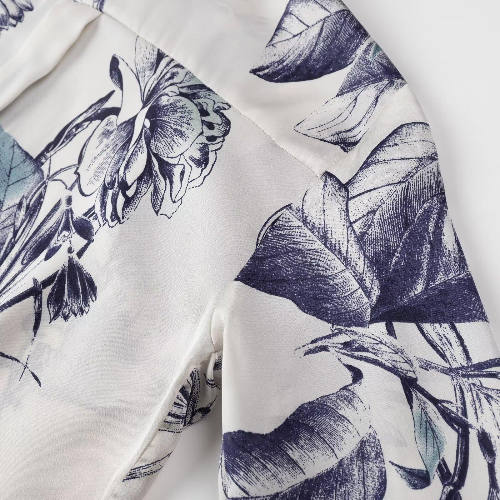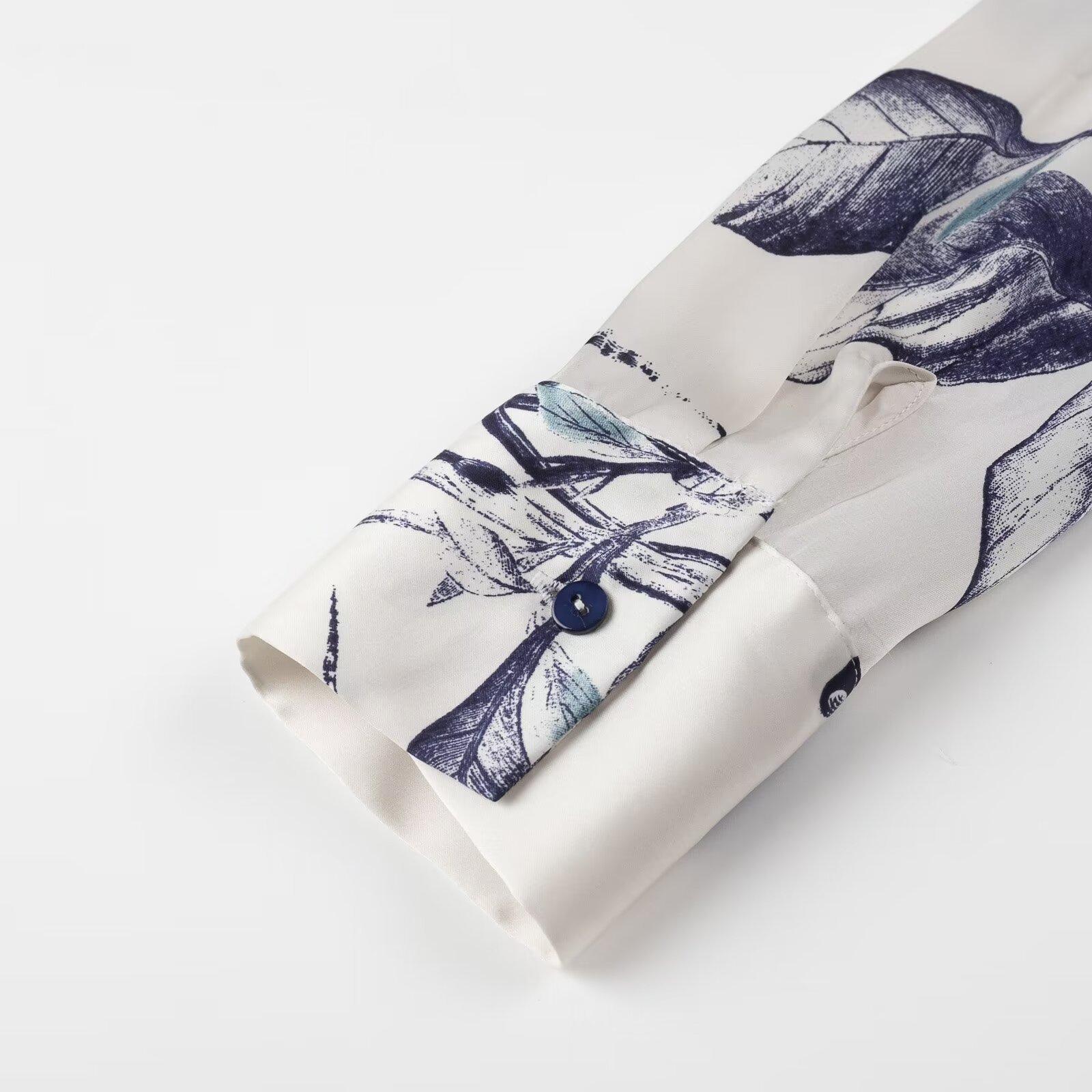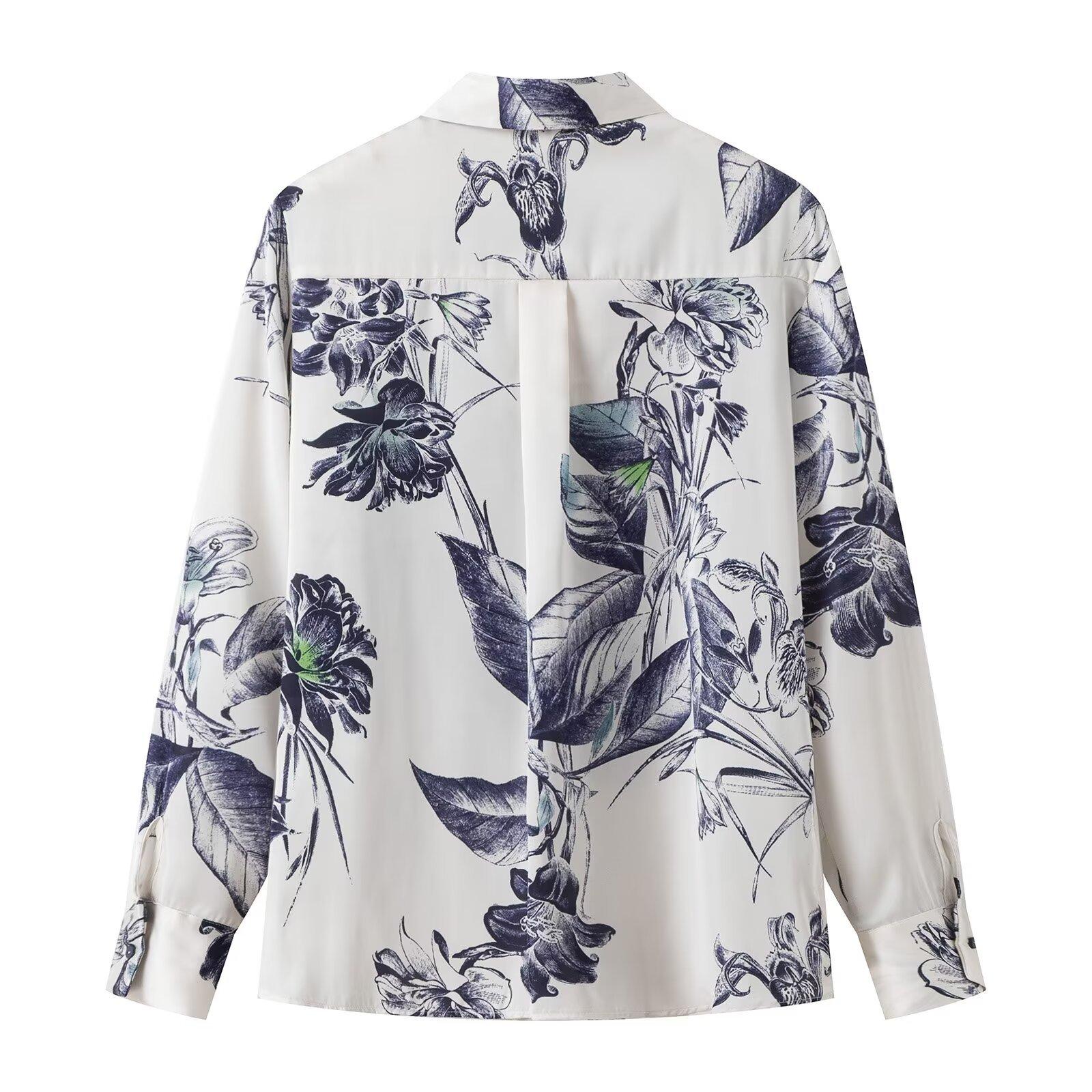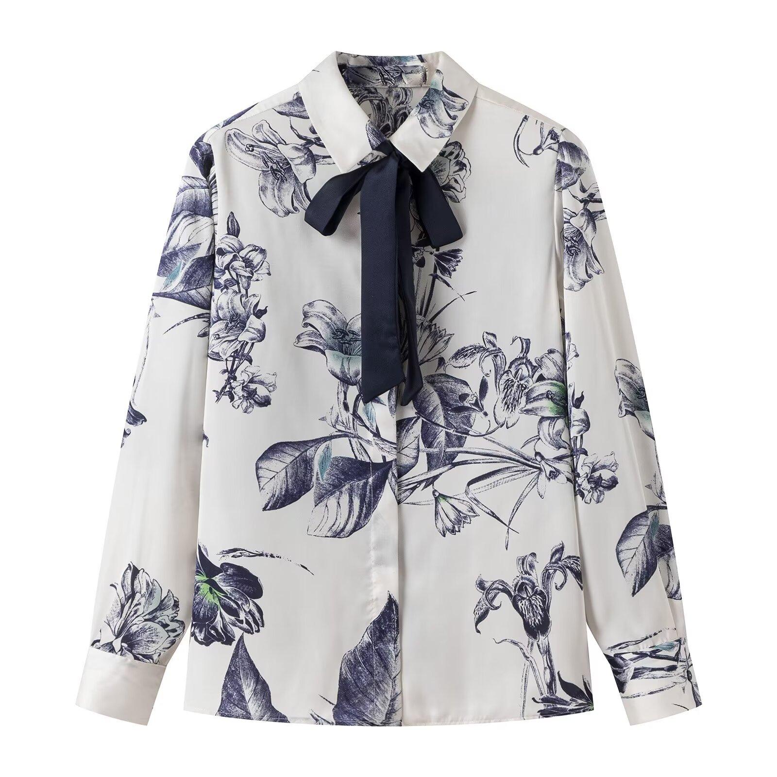 Venta al por mayor 2024 primavera nueva camisa de mujer de manga larga con lazo estampado estilo europeo y americano