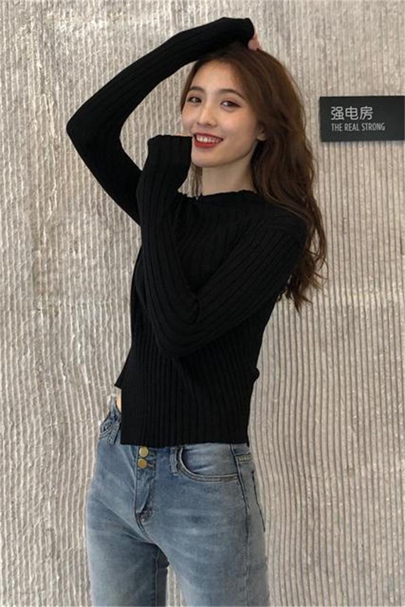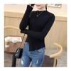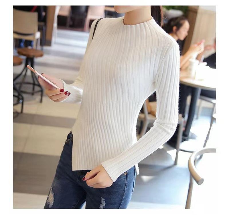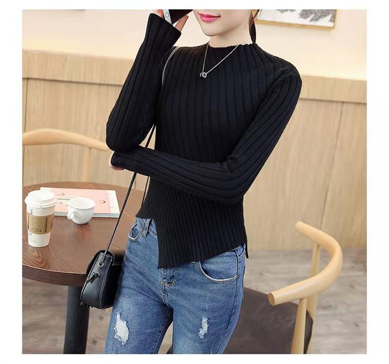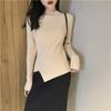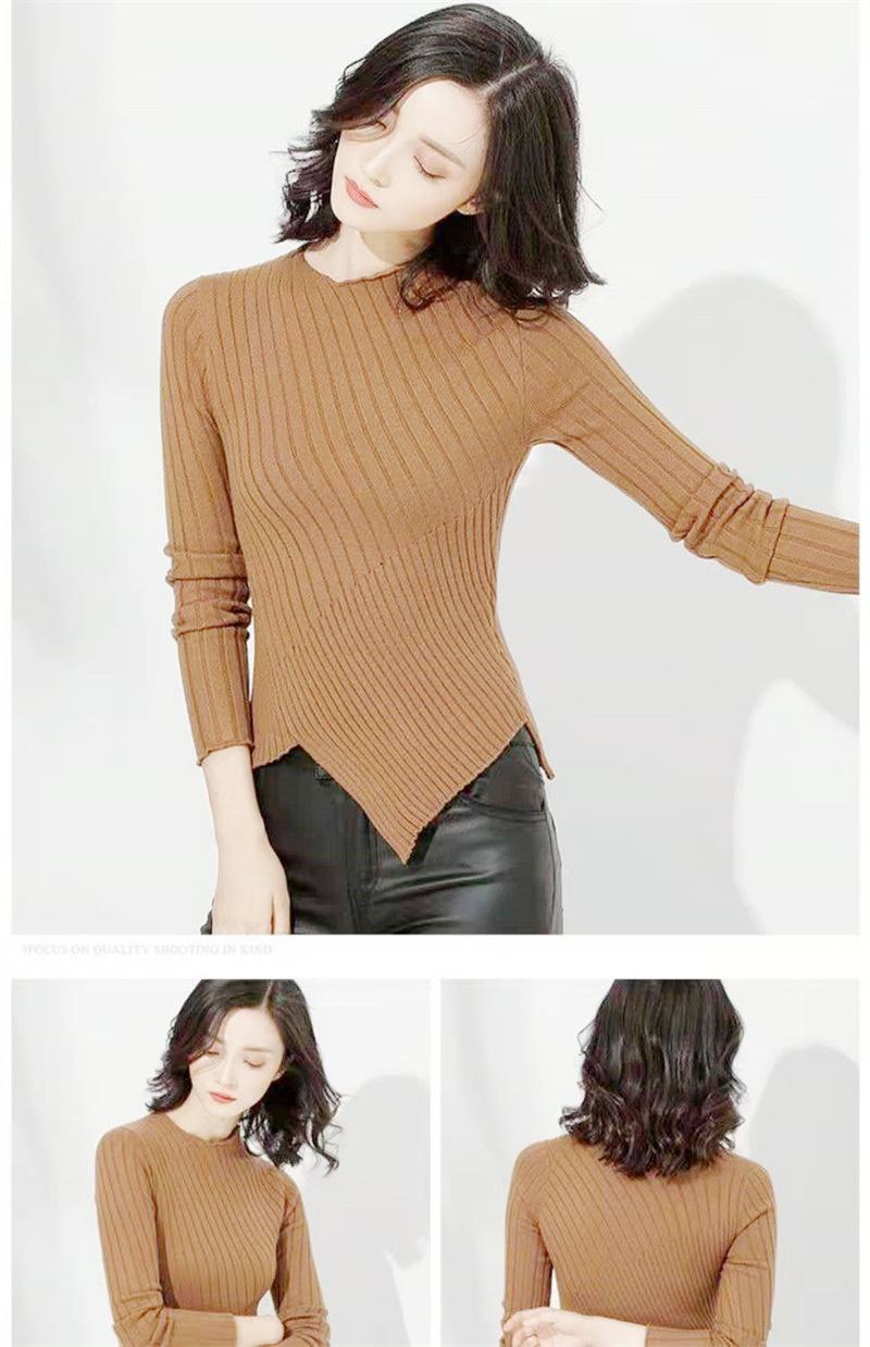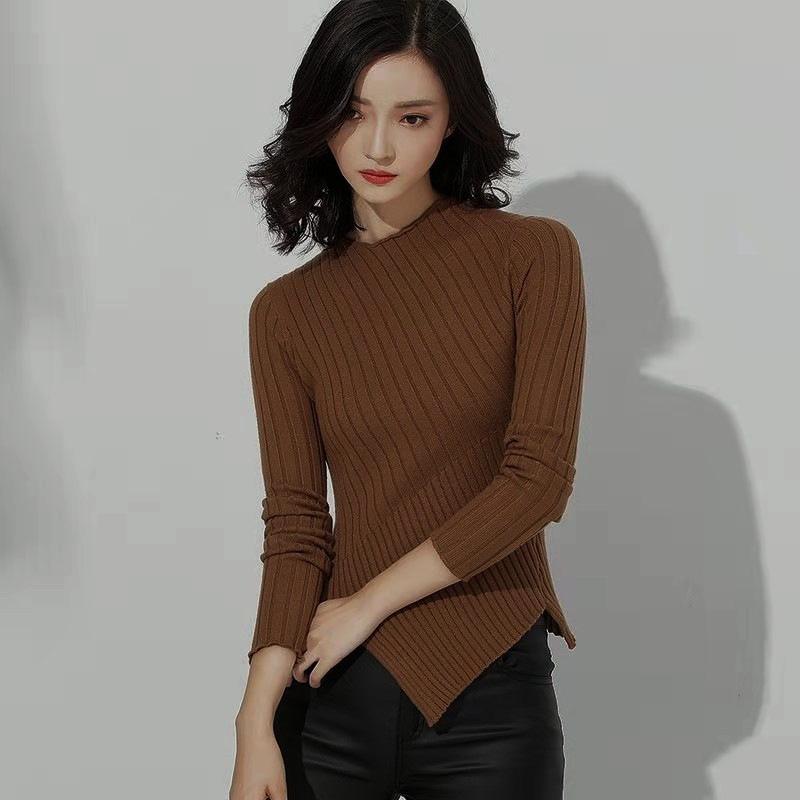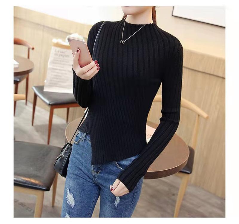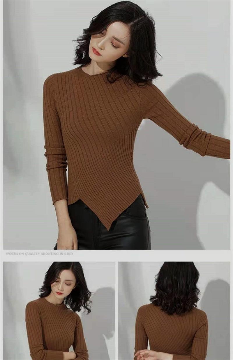 Suéter grueso para mujer otoño e invierno camisa de fondo de punto estilo occidental ajustado irregular punto de galleta suéter para mujer color sólido camisa de fondo
