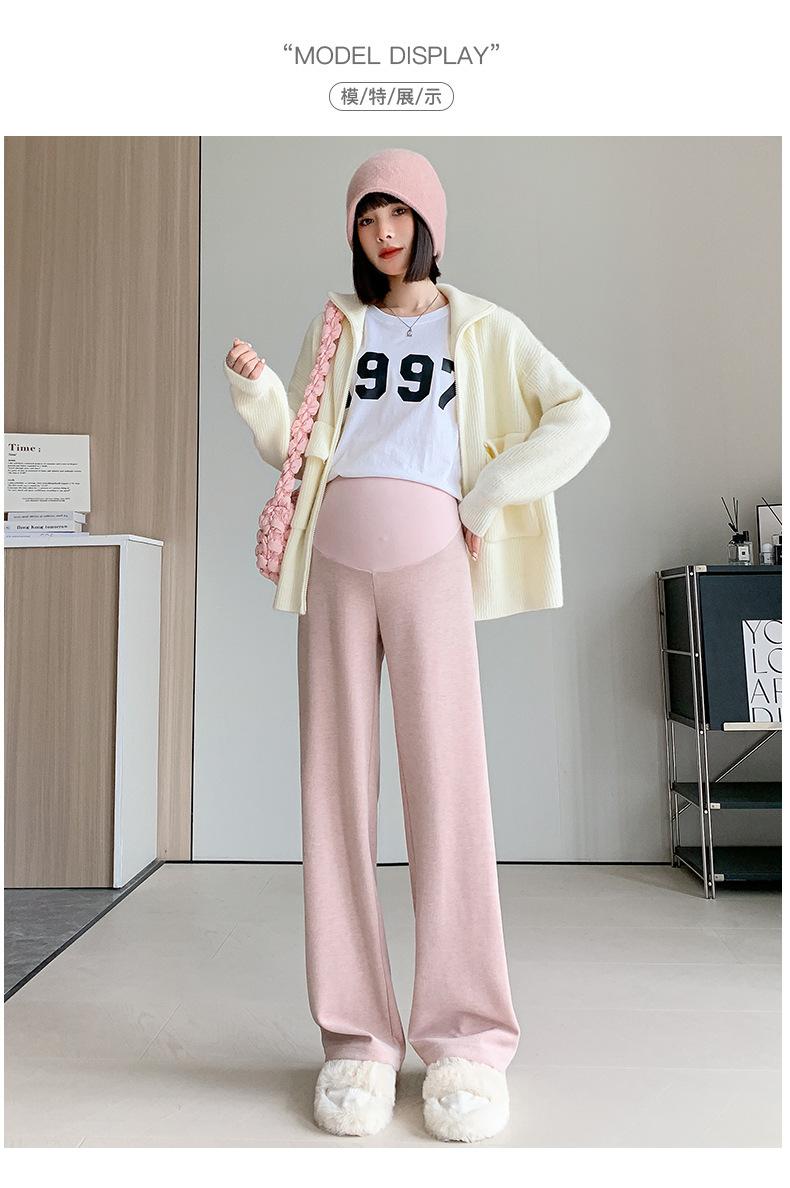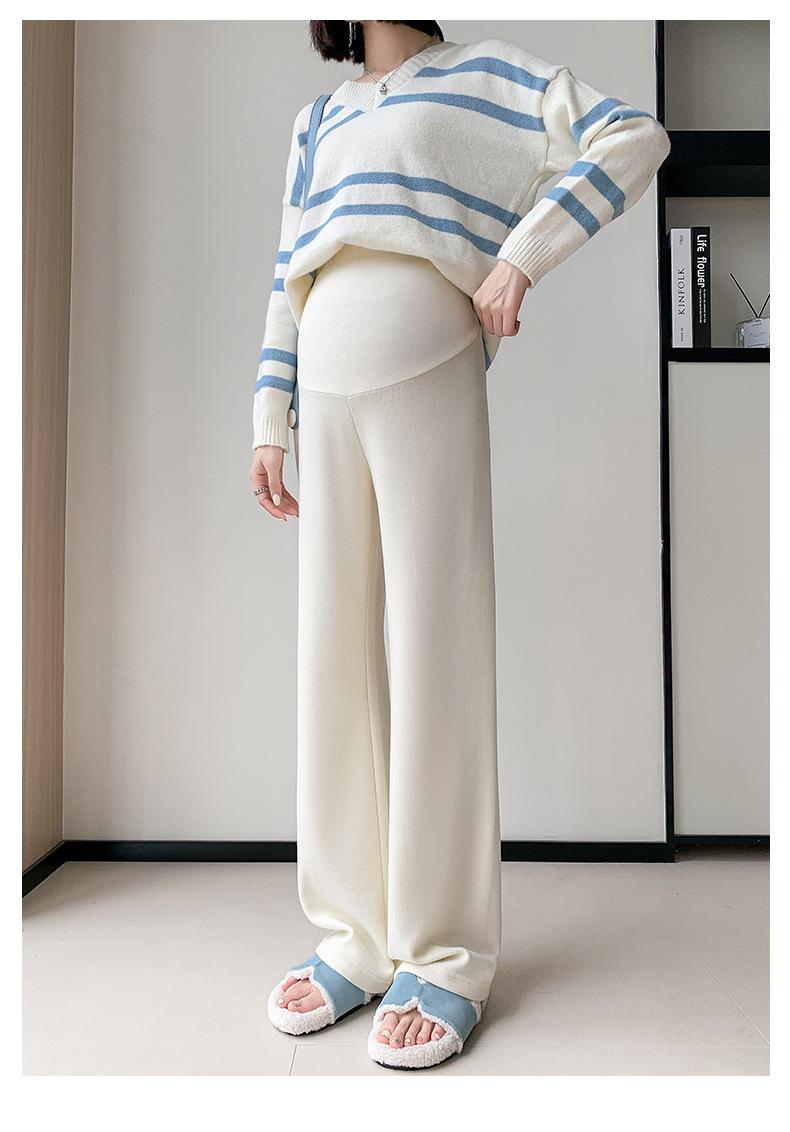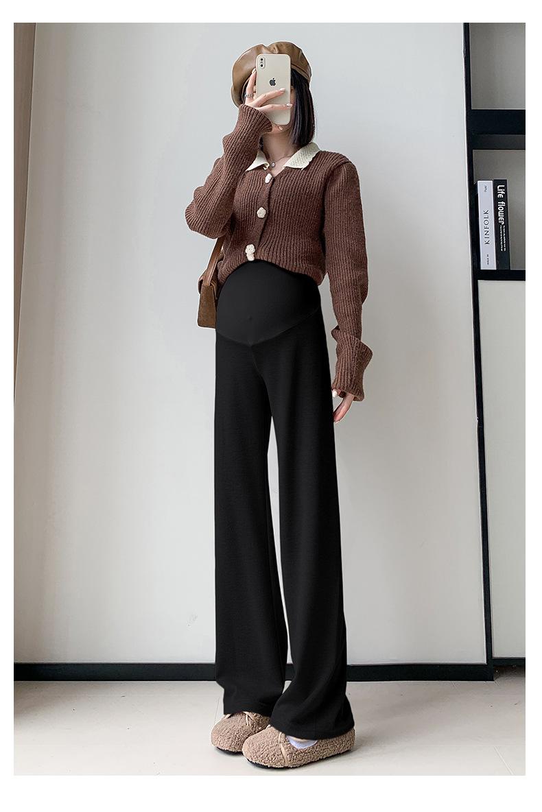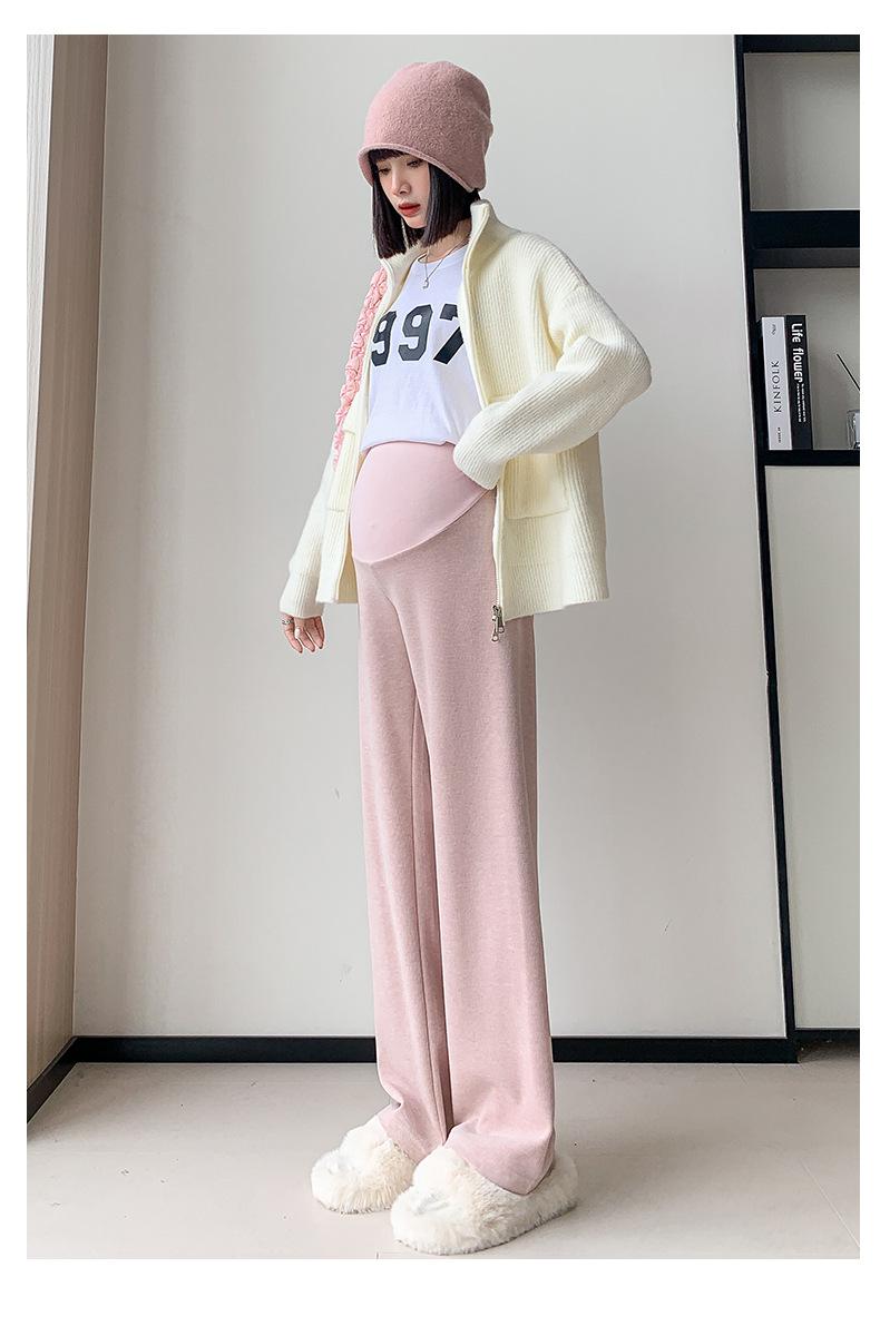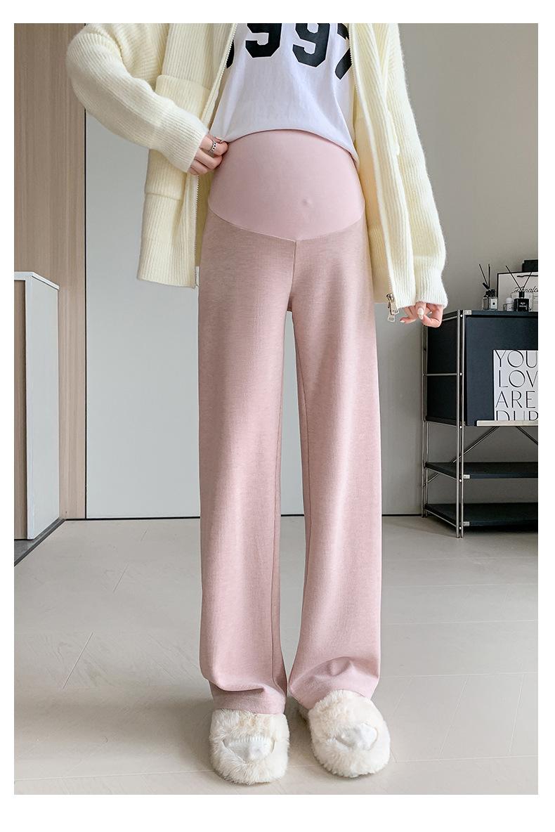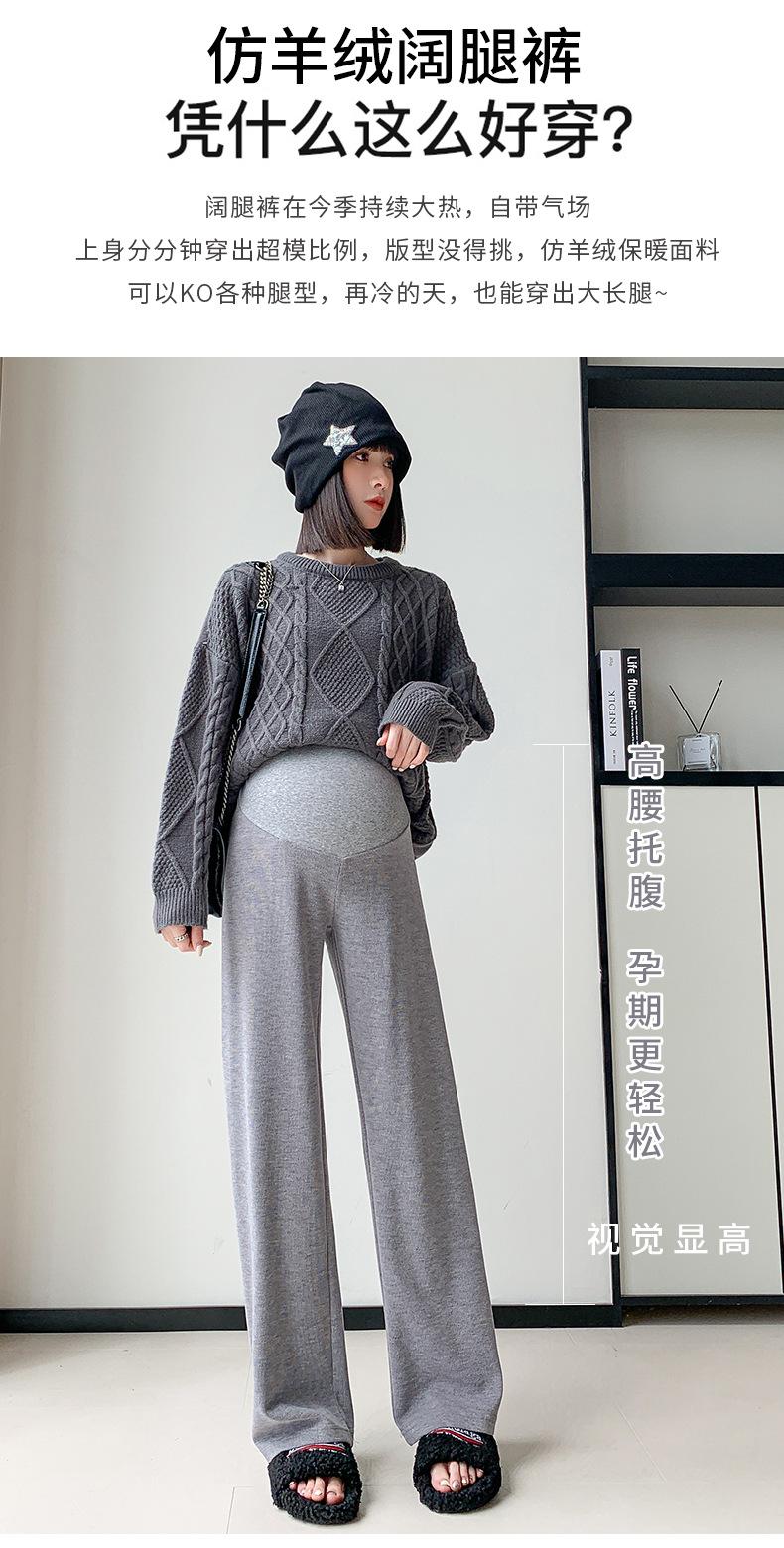 Pantalones de pierna ancha para mujeres embarazadas Otoño e Invierno con forro polar Engrosados Cachemira Slim Pantalones ajustados Sueltos Casuales Rectos Adelgazantes Pantalones para mujeres embarazadas