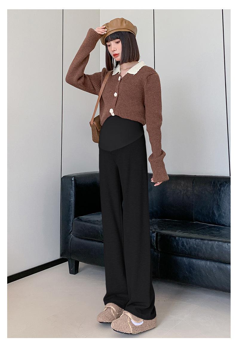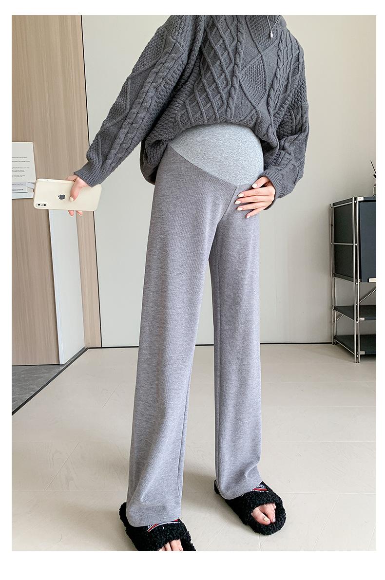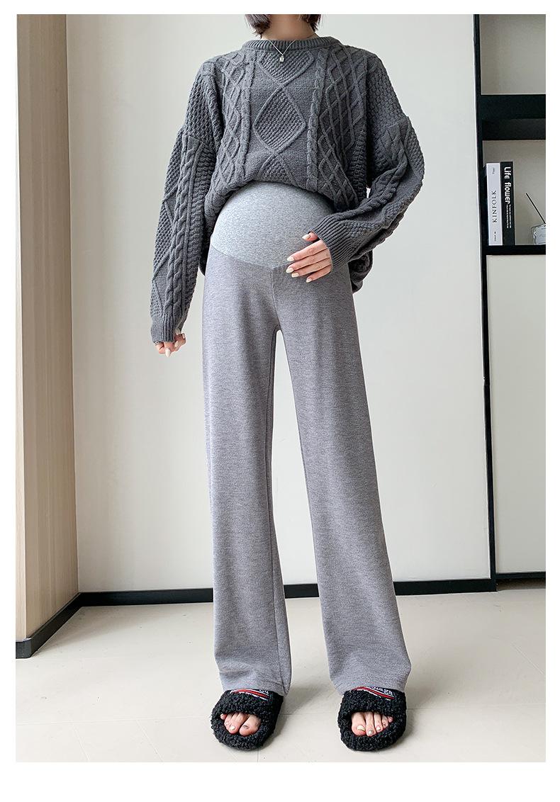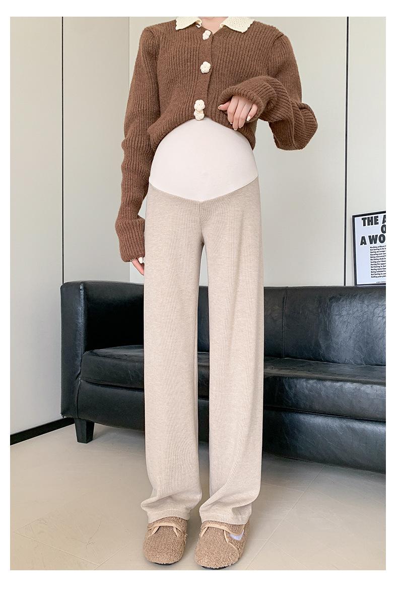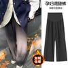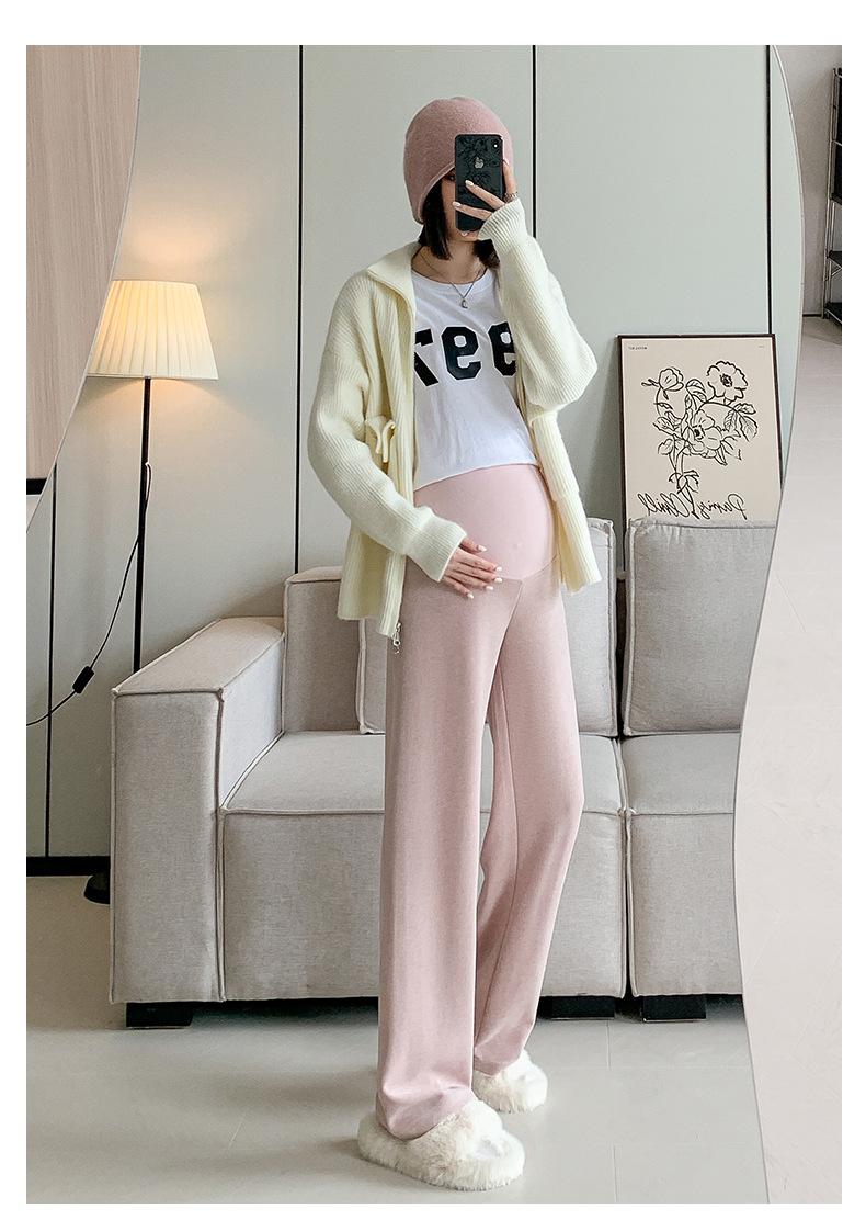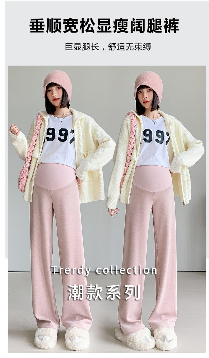 Pantalones de pierna ancha para mujeres embarazadas Otoño e Invierno con forro polar Engrosados Cachemira Slim Pantalones ajustados Sueltos Casuales Rectos Adelgazantes Pantalones para mujeres embarazadas