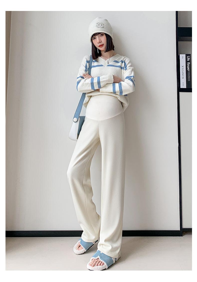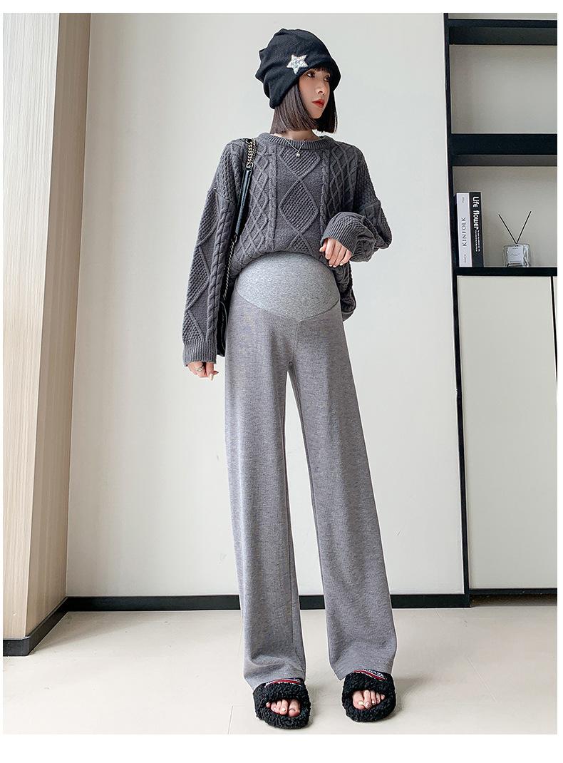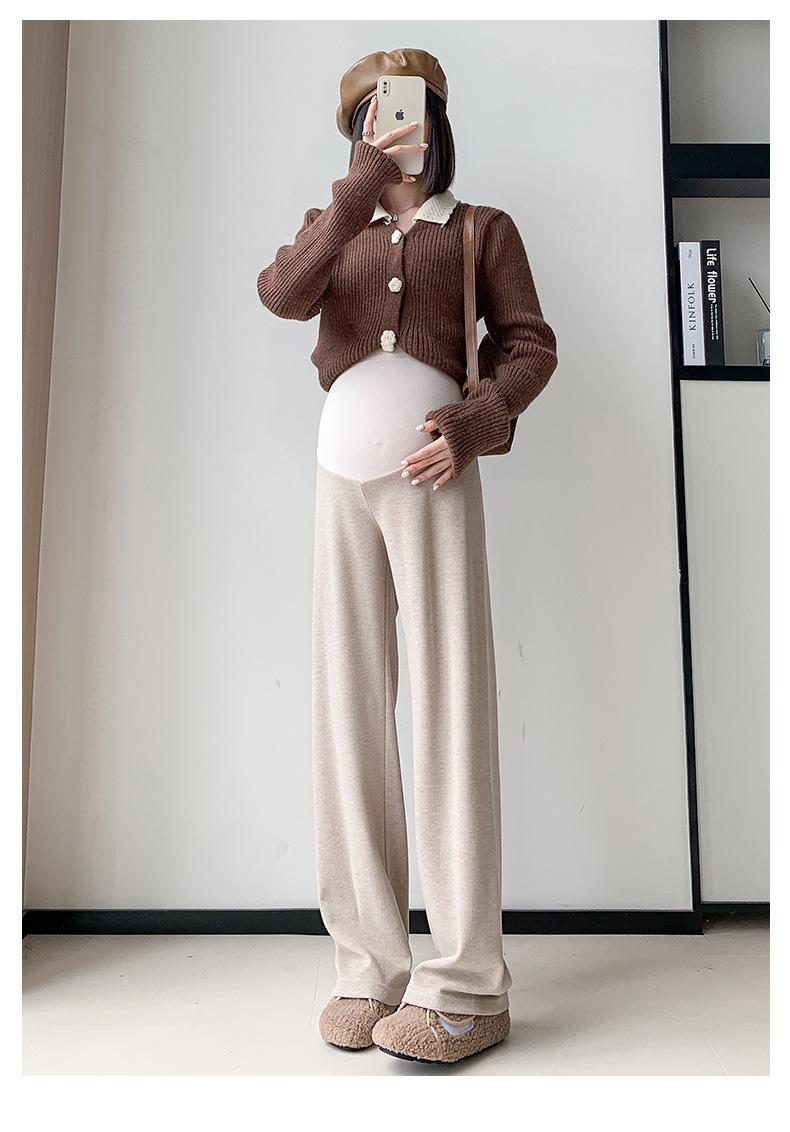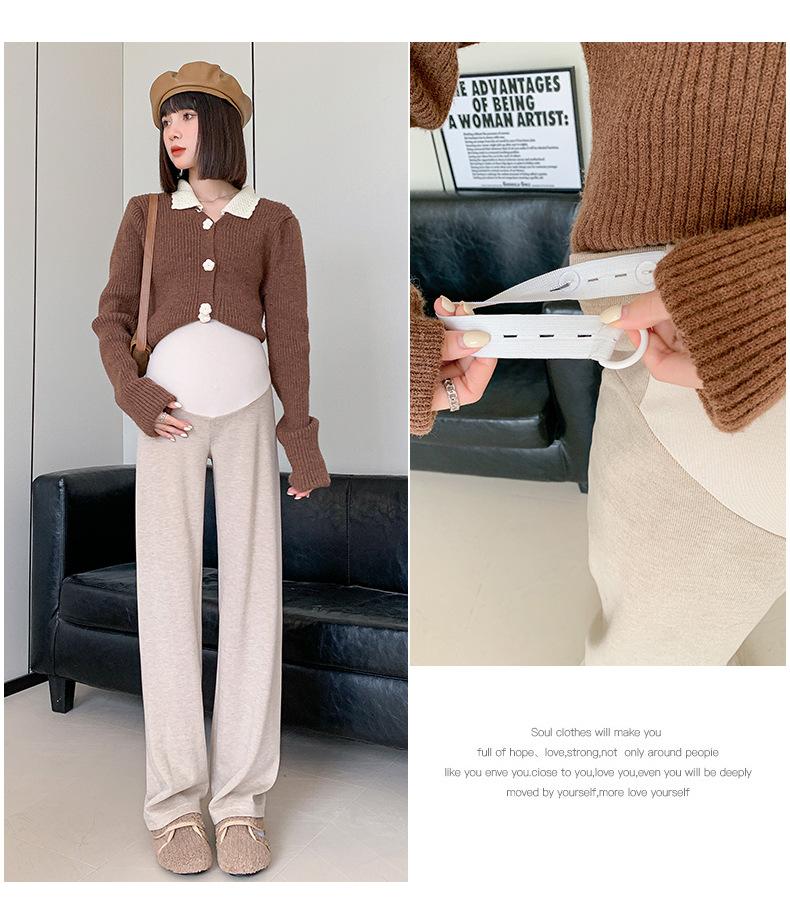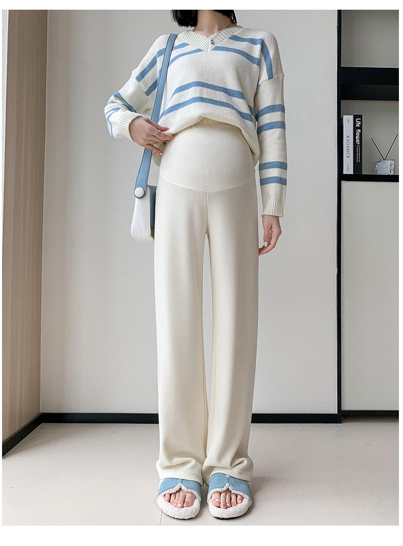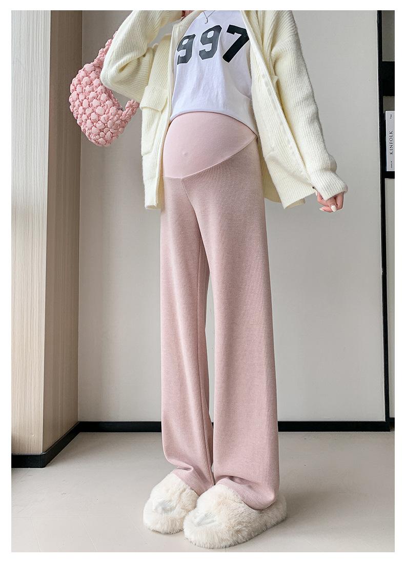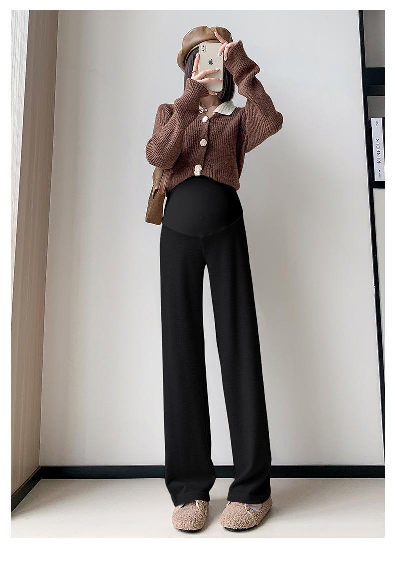 Pantalones de pierna ancha para mujeres embarazadas Otoño e Invierno con forro polar Engrosados Cachemira Slim Pantalones ajustados Sueltos Casuales Rectos Adelgazantes Pantalones para mujeres embarazadas