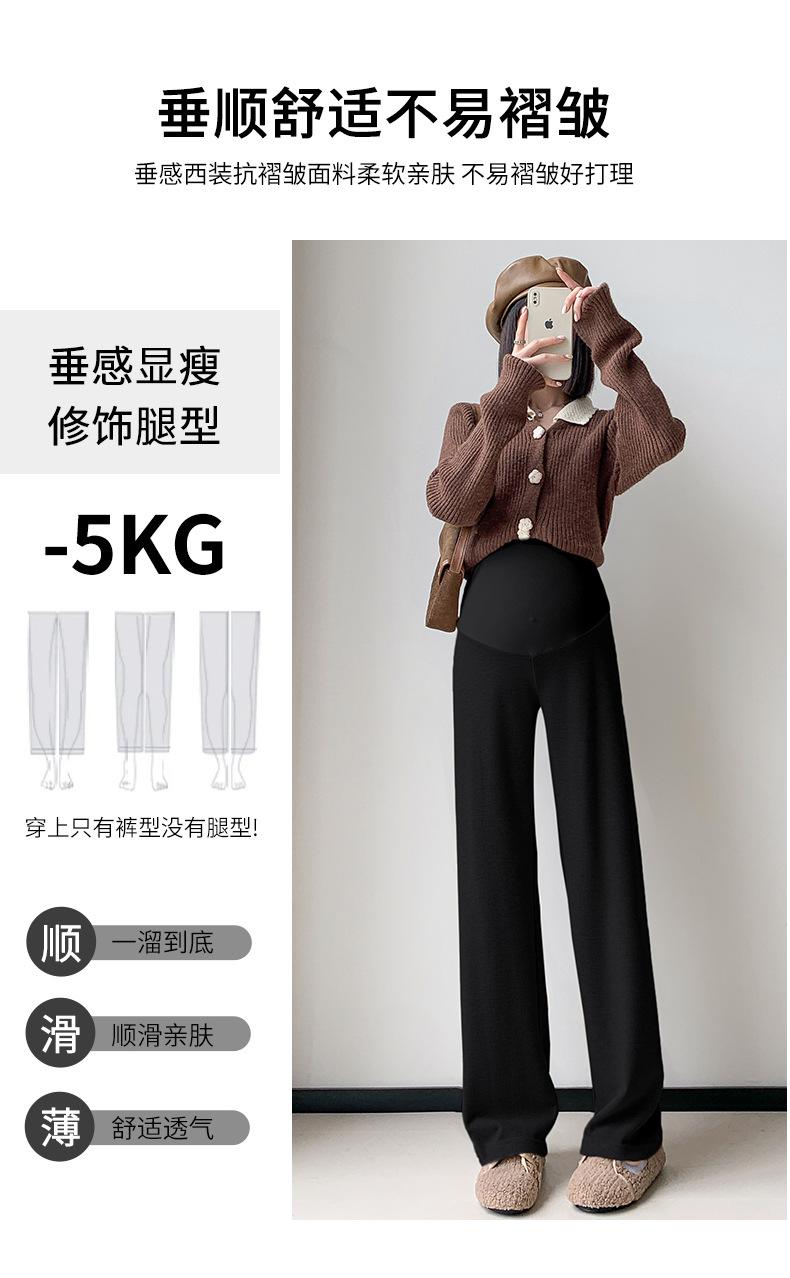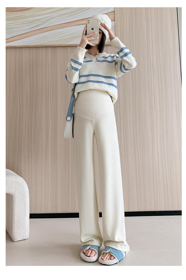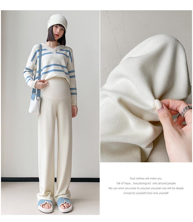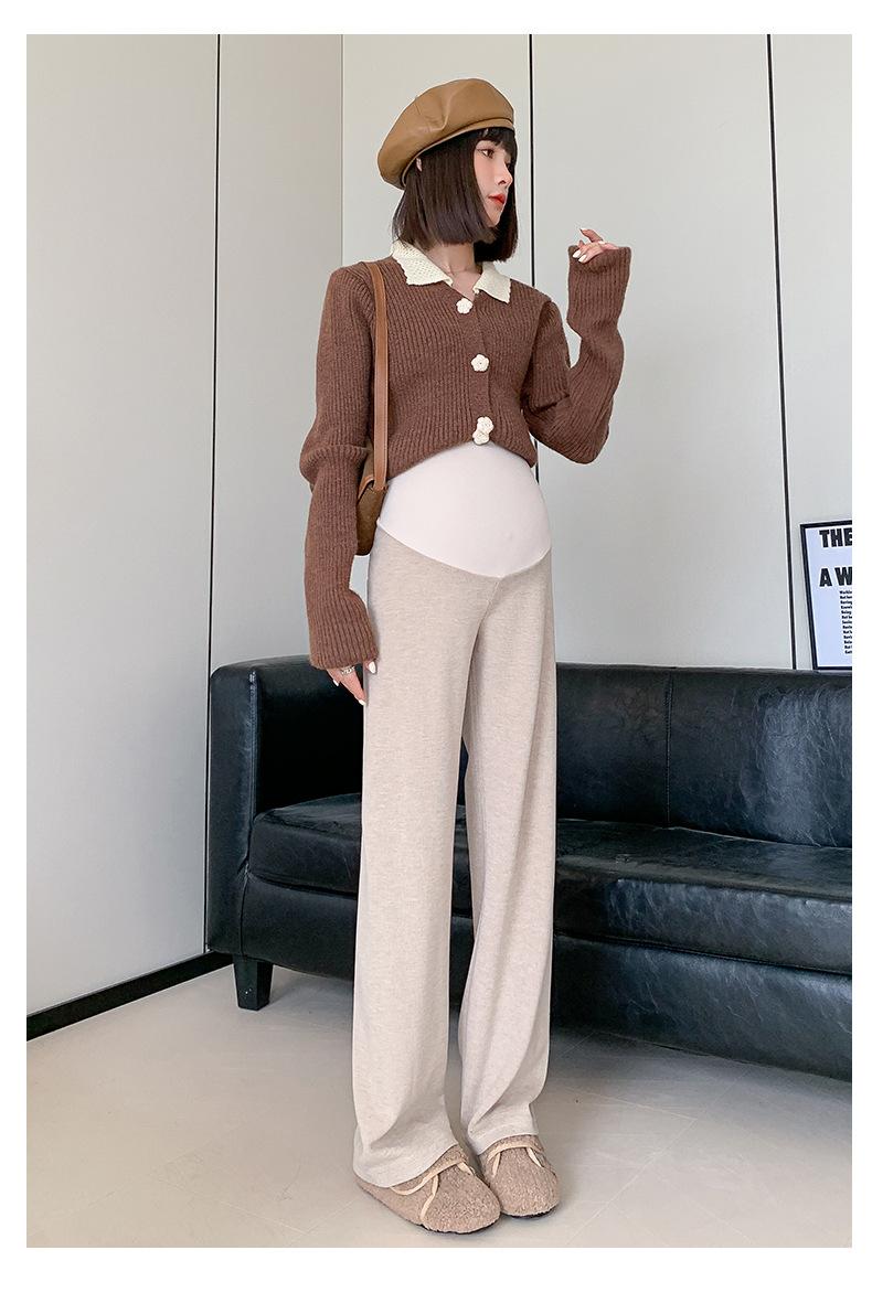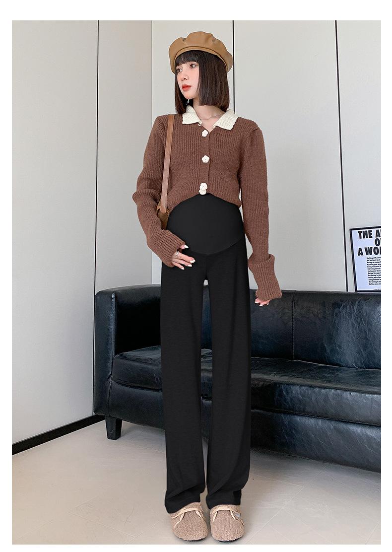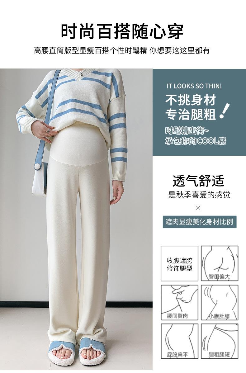 Pantalones de pierna ancha para mujeres embarazadas Otoño e Invierno con forro polar Engrosados Cachemira Slim Pantalones ajustados Sueltos Casuales Rectos Adelgazantes Pantalones para mujeres embarazadas