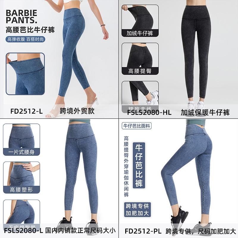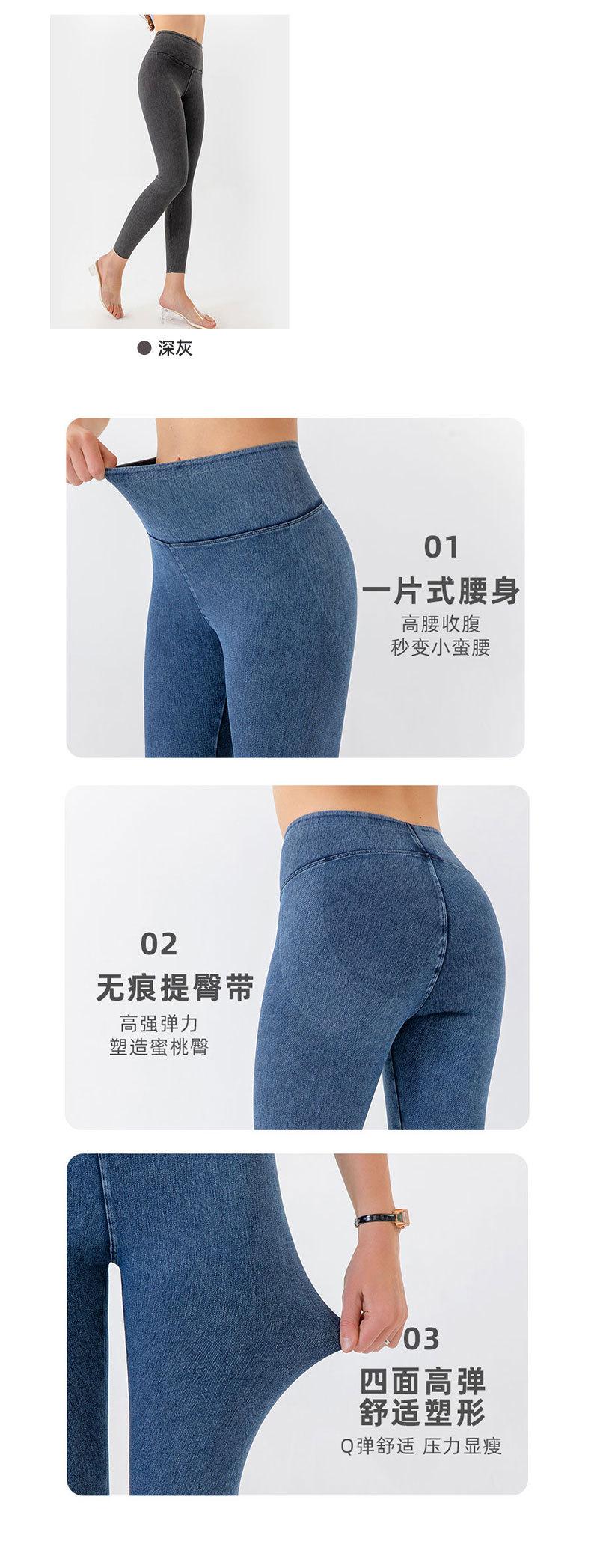 Europeo y Americano Nuevo Cintura Alta Ajustado Una Pieza Yoga Denim Pantalones Barbie Pantalones Deportivos Casuales de Fitness para Mujer Adelgazantes Levanta Glúteos