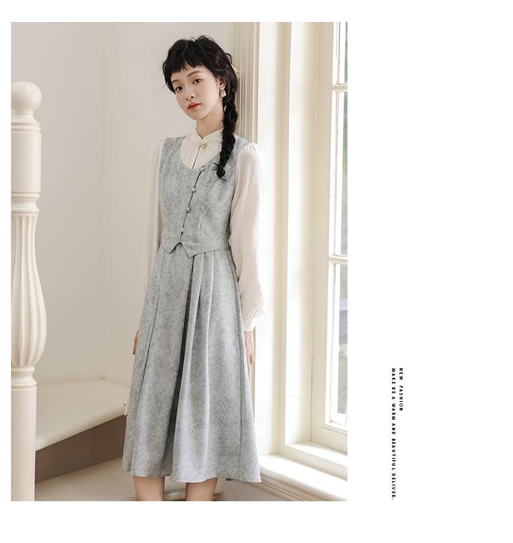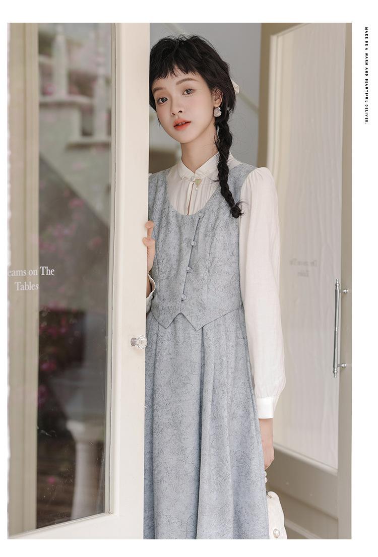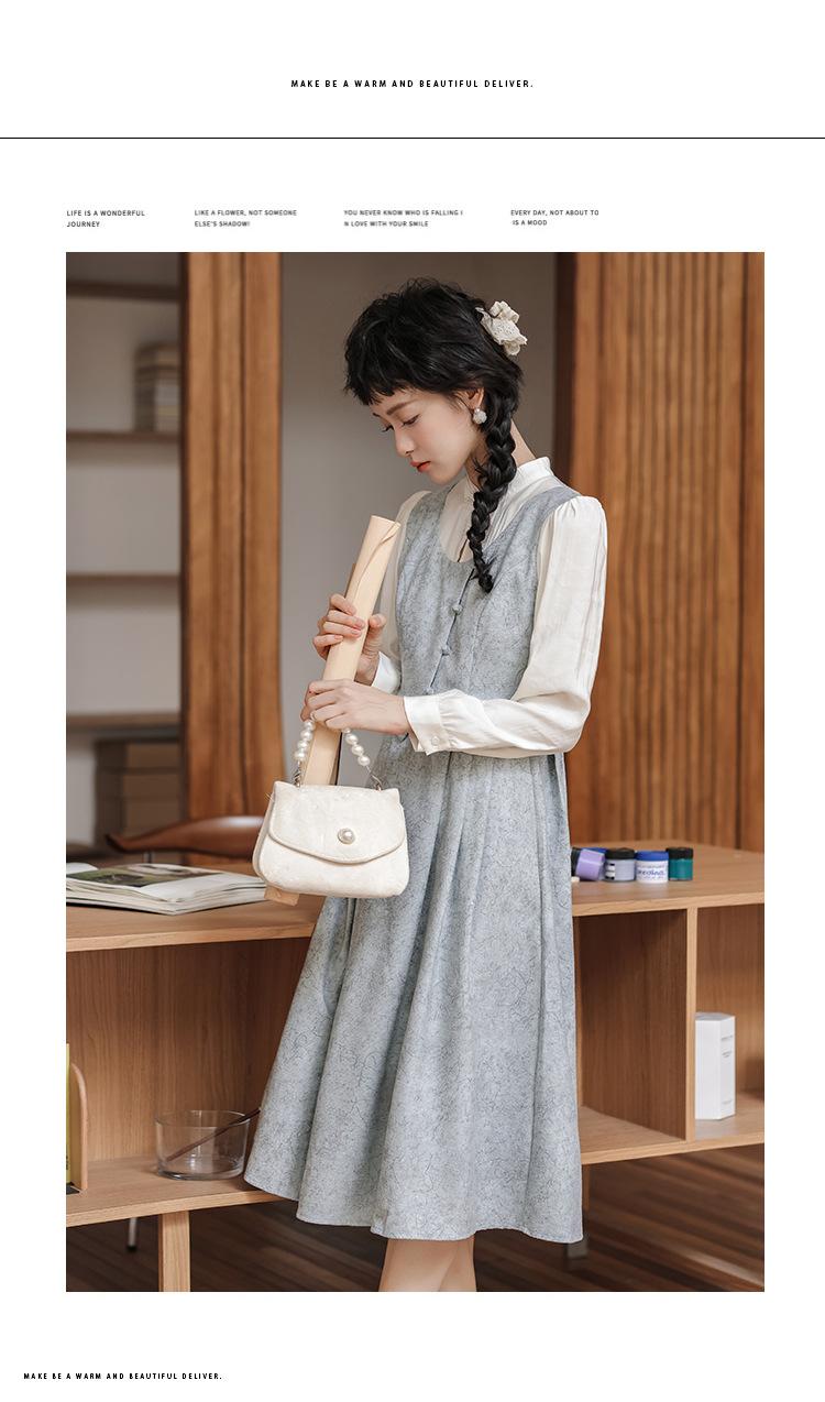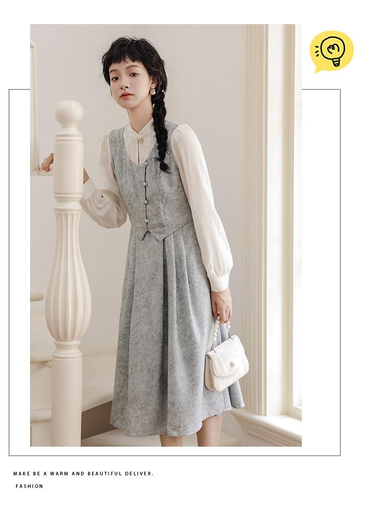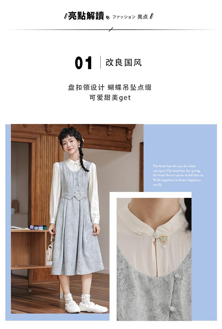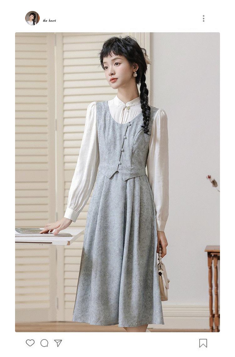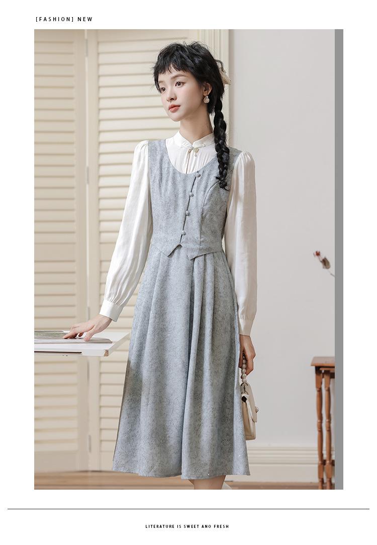 No menos de 148 Vestido de temperamento de manga larga estilo chino nuevo falso de dos piezas estilo chino nuevo