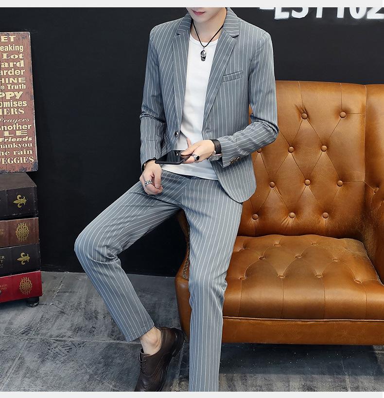 Traje de Otoño para Hombre Estilo Coreano Juvenil Moderno Vestido de Padrino de Boda para Hombre Traje Slim-fit Traje de Dos Piezas