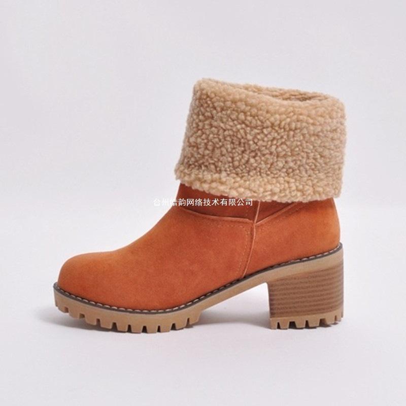 Zapatos de Mujer de Talla Grande Europeos y Americanos Wish Amazon Nuevo Otoño e Invierno Europeos y Americanos Media Pantorrilla Tacón Grueso Gamuza Botas de Nieve Talla 43 Zapatos de Algodón