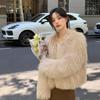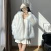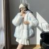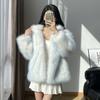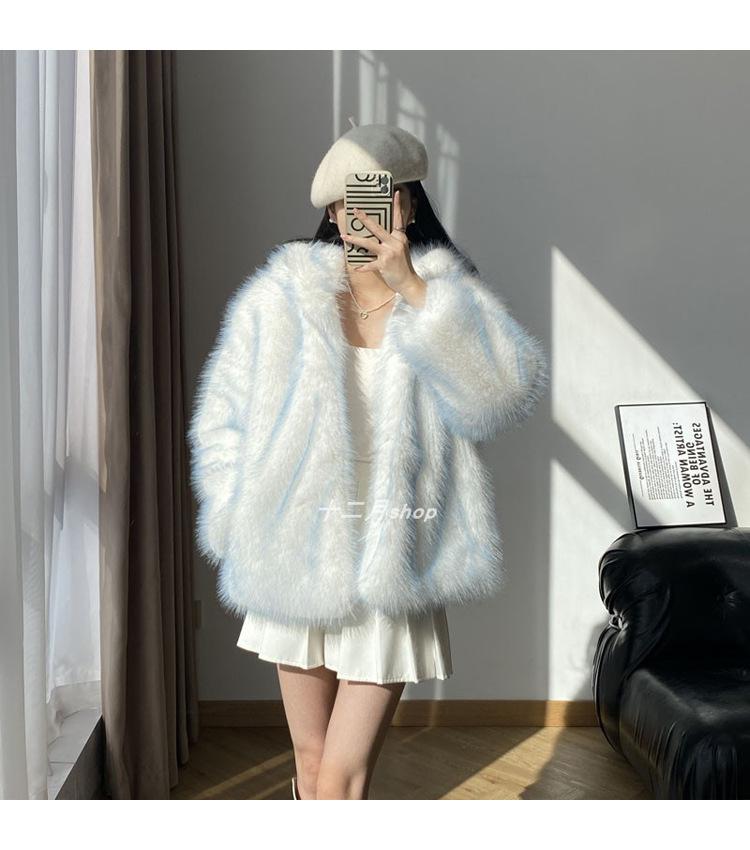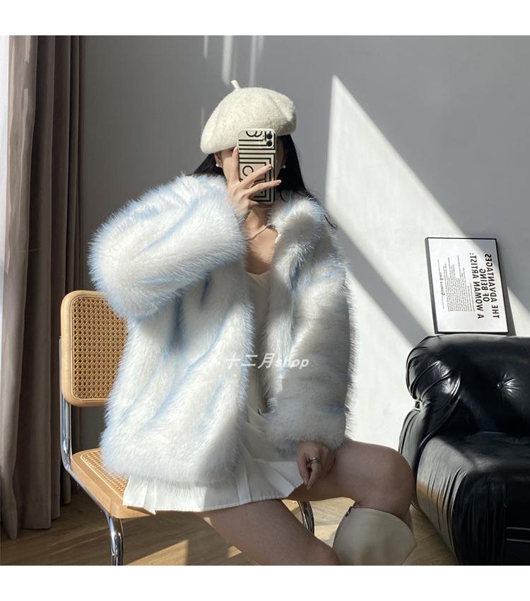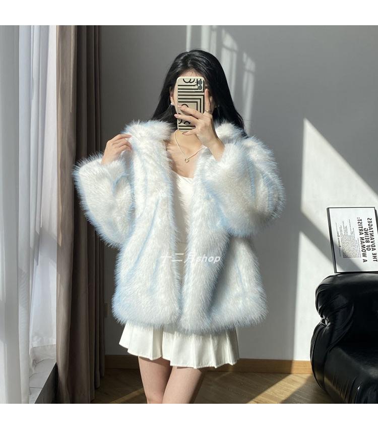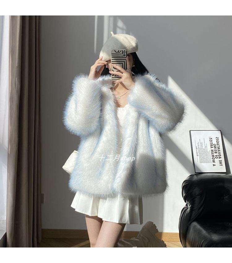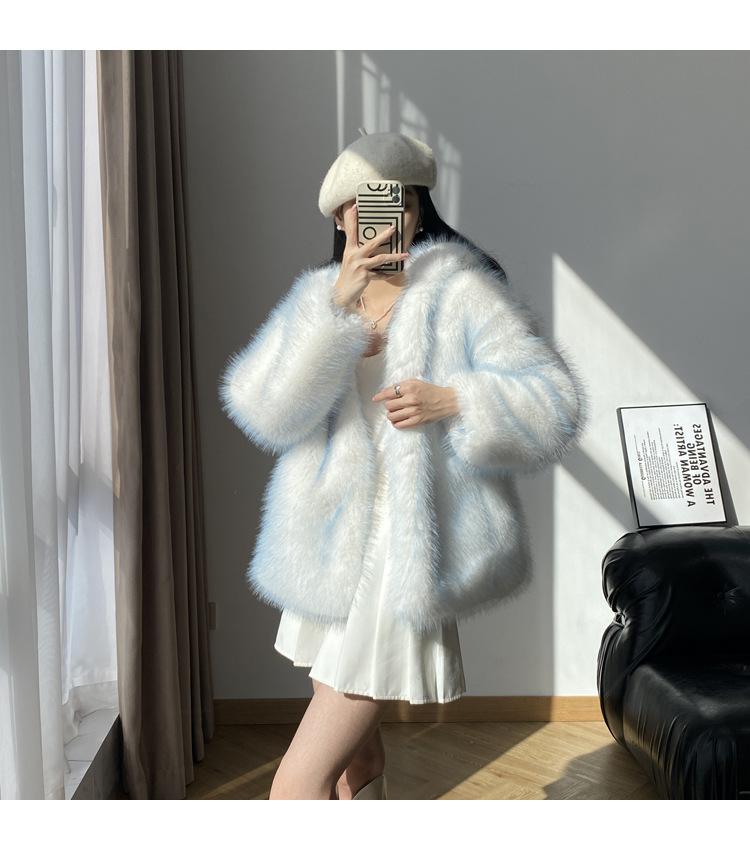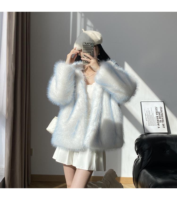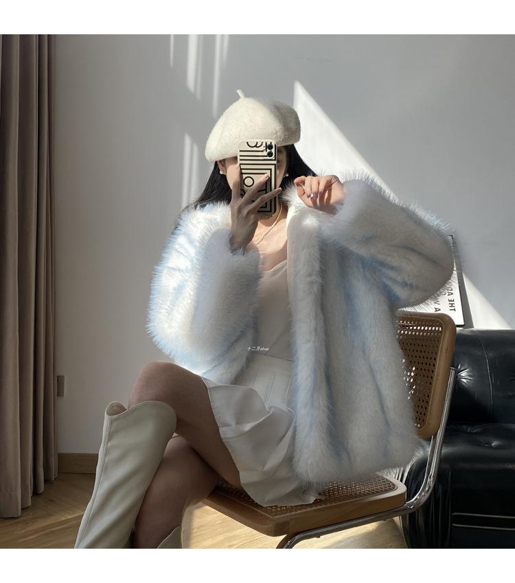 Foto real en stock abrigo de piel sintética de zorro azul degradado para mujer abrigo de piel ecológica piel cálida gruesa
