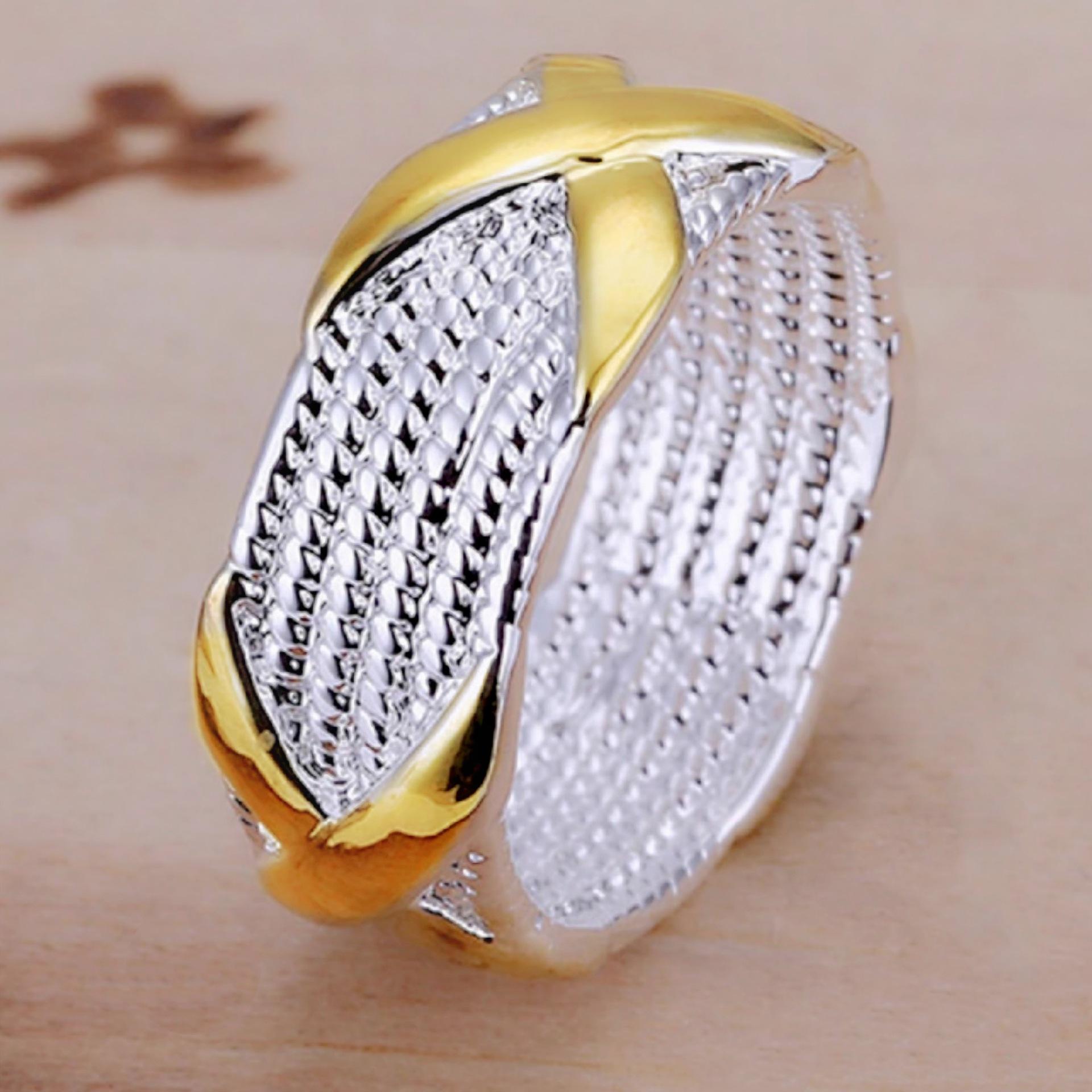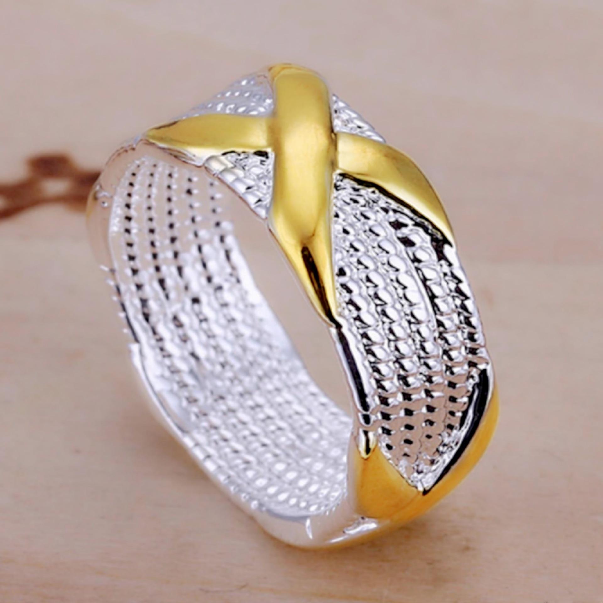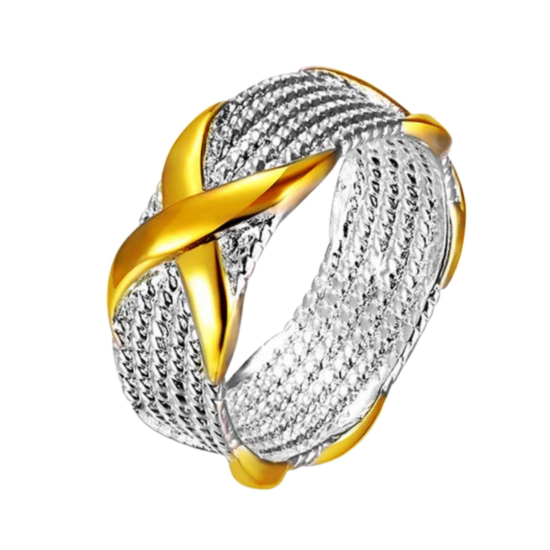 Diseño en Forma de X Anillo Cruzado Bicolor Decoración Anillo de Moda Trendy Joyería Clásica Separación de Color Retro Fabricante de Anillo X