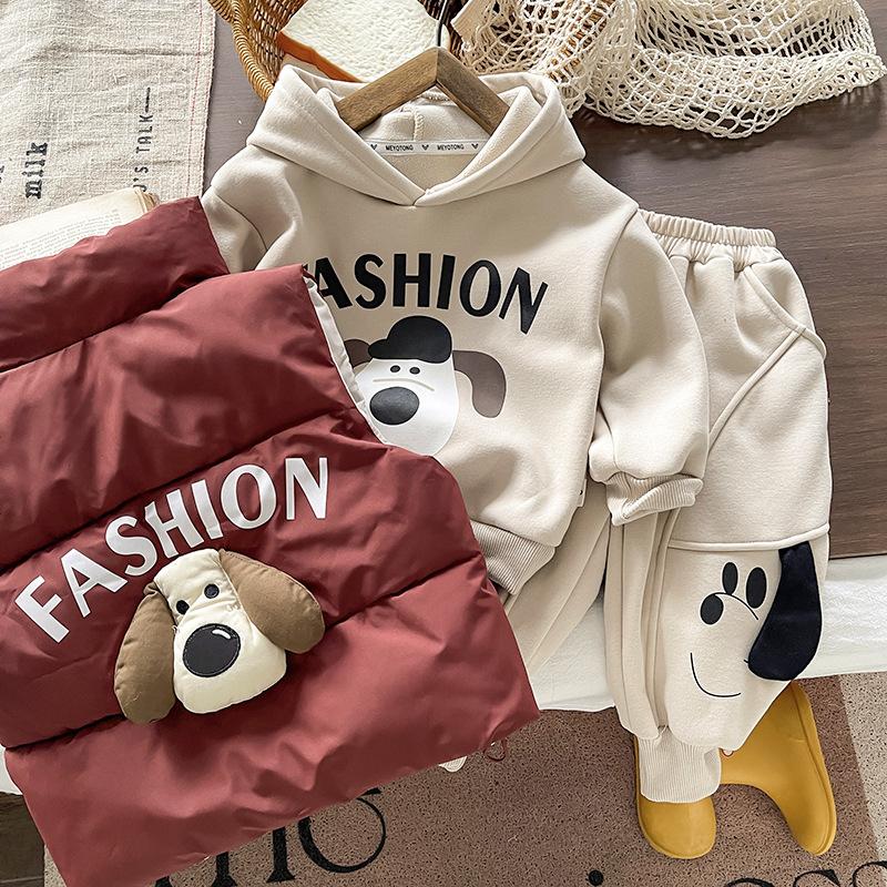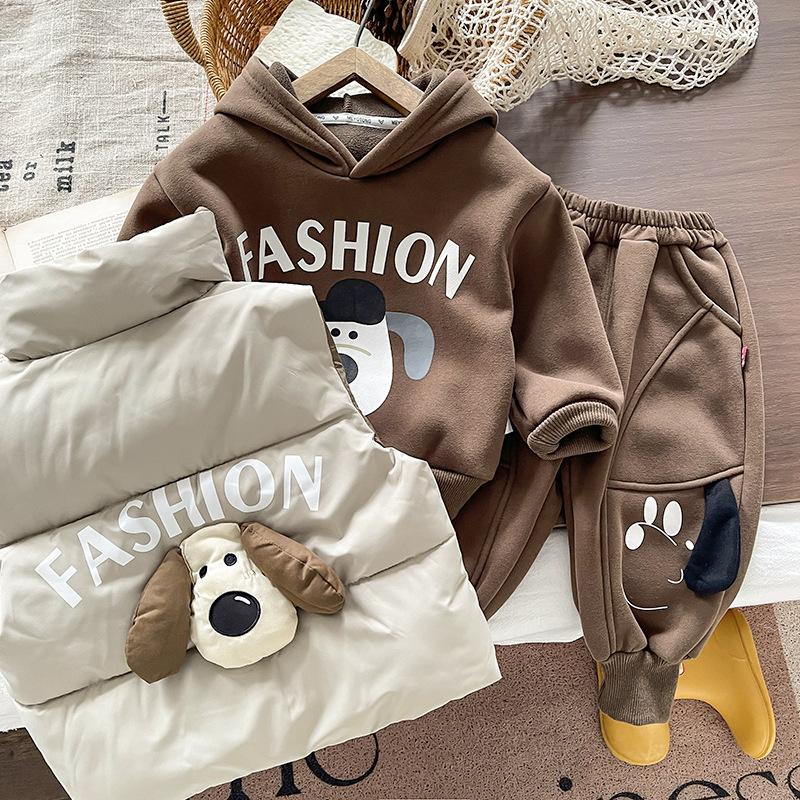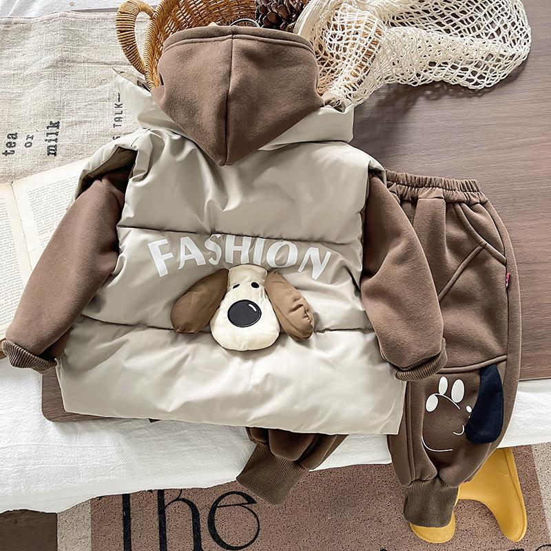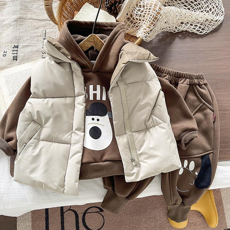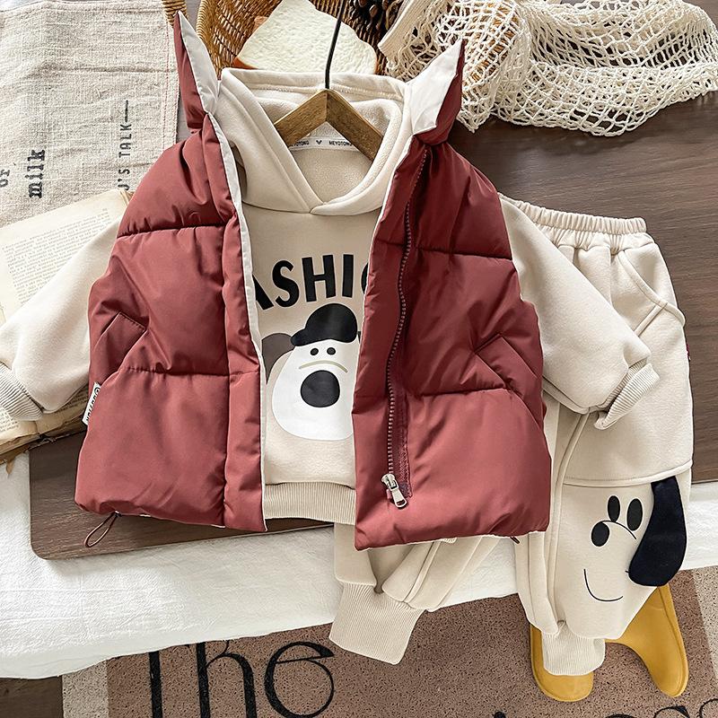 2025 Nuevo Invierno Chaqueta Acolchada de Algodón para Niños Chaleco Niños y Niñas Chaleco de Cuello Alto Conjunto de Tres Piezas Ropa Exterior para Bebé Cálido y Grueso