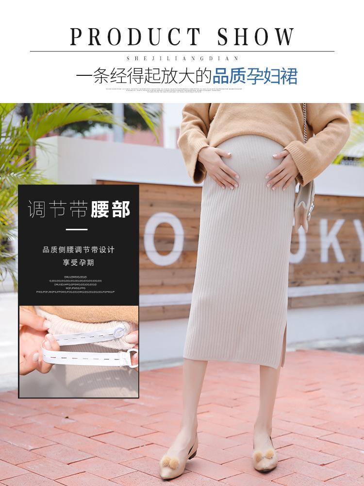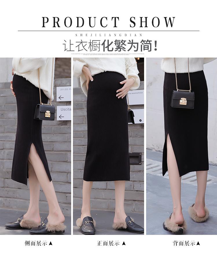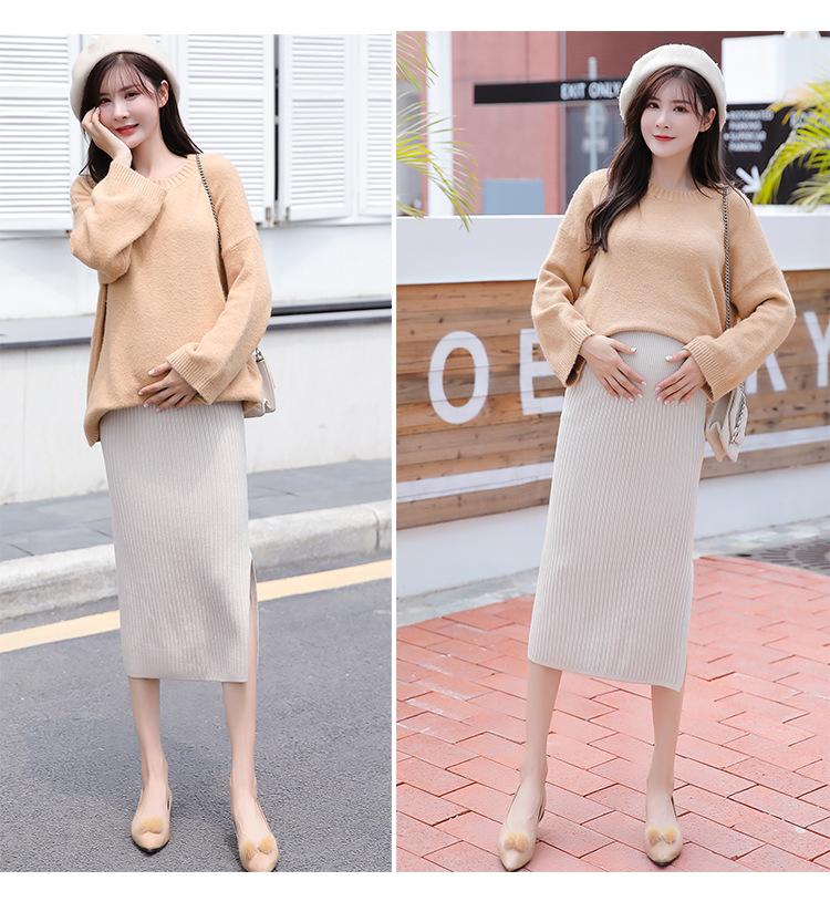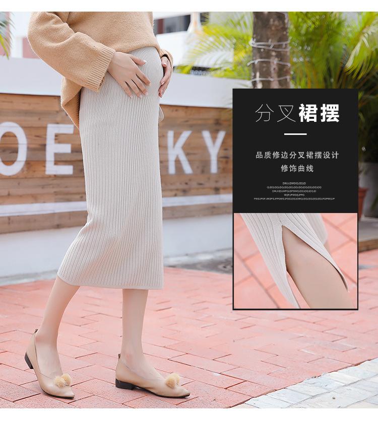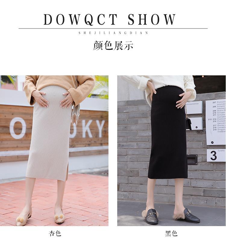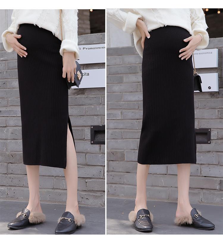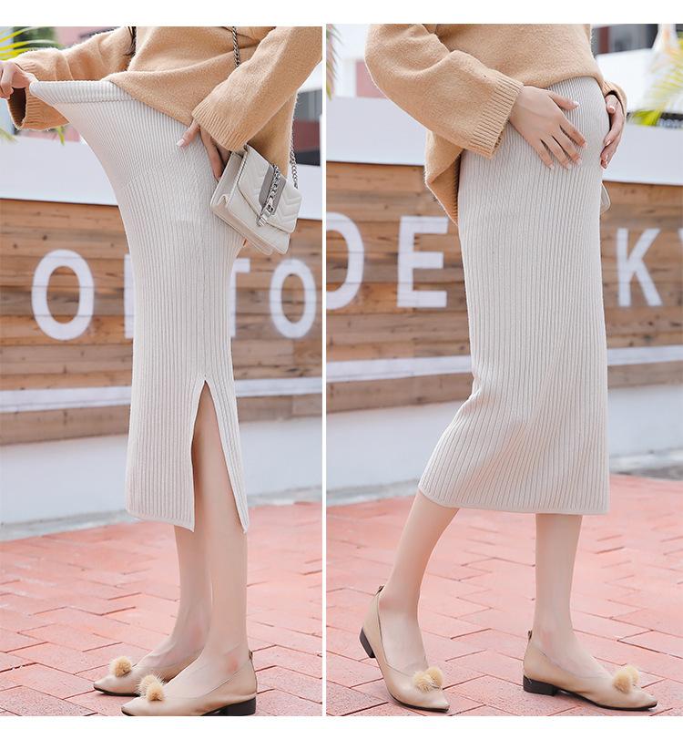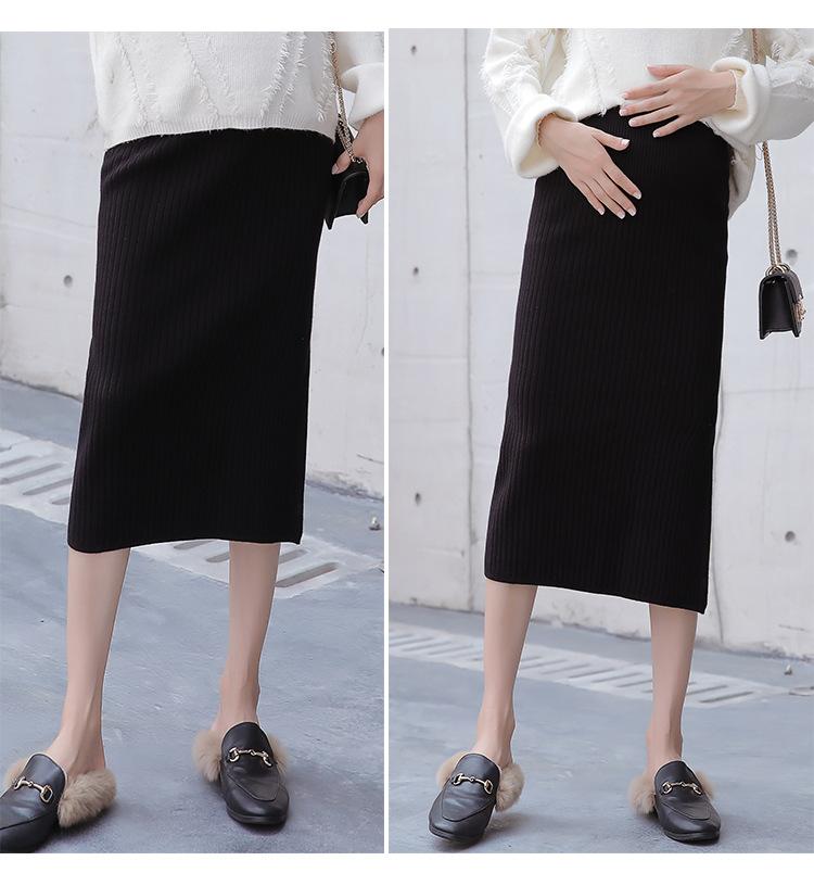 Maternidad 2021 Otoño e Invierno Nueva Falda Tejida Abdominal Cadera Falda de un Paso Media Longitud Falda de Lana para Mujeres Embarazadas
