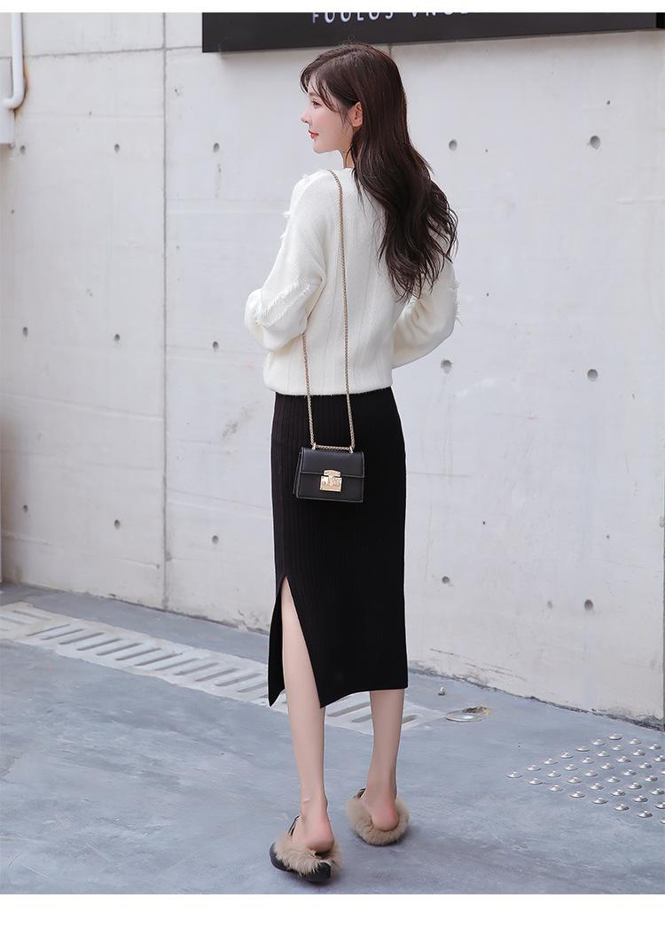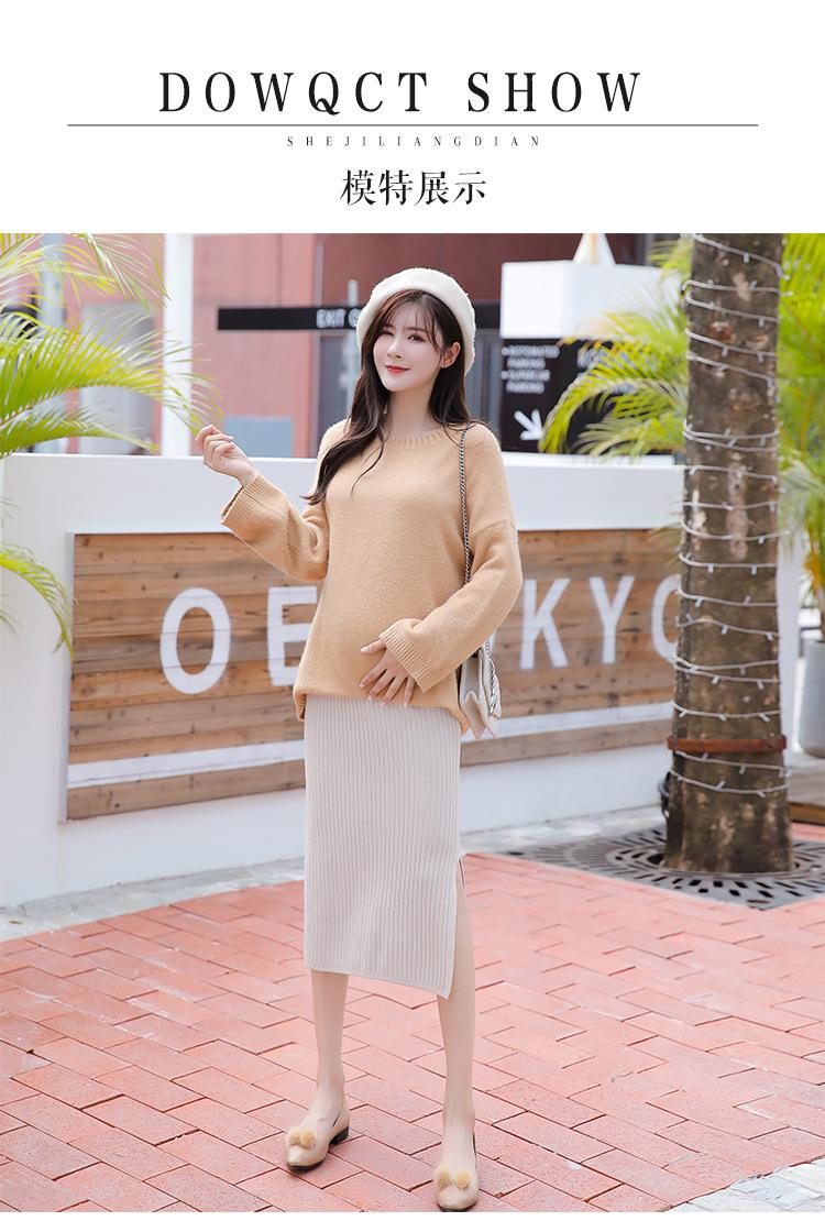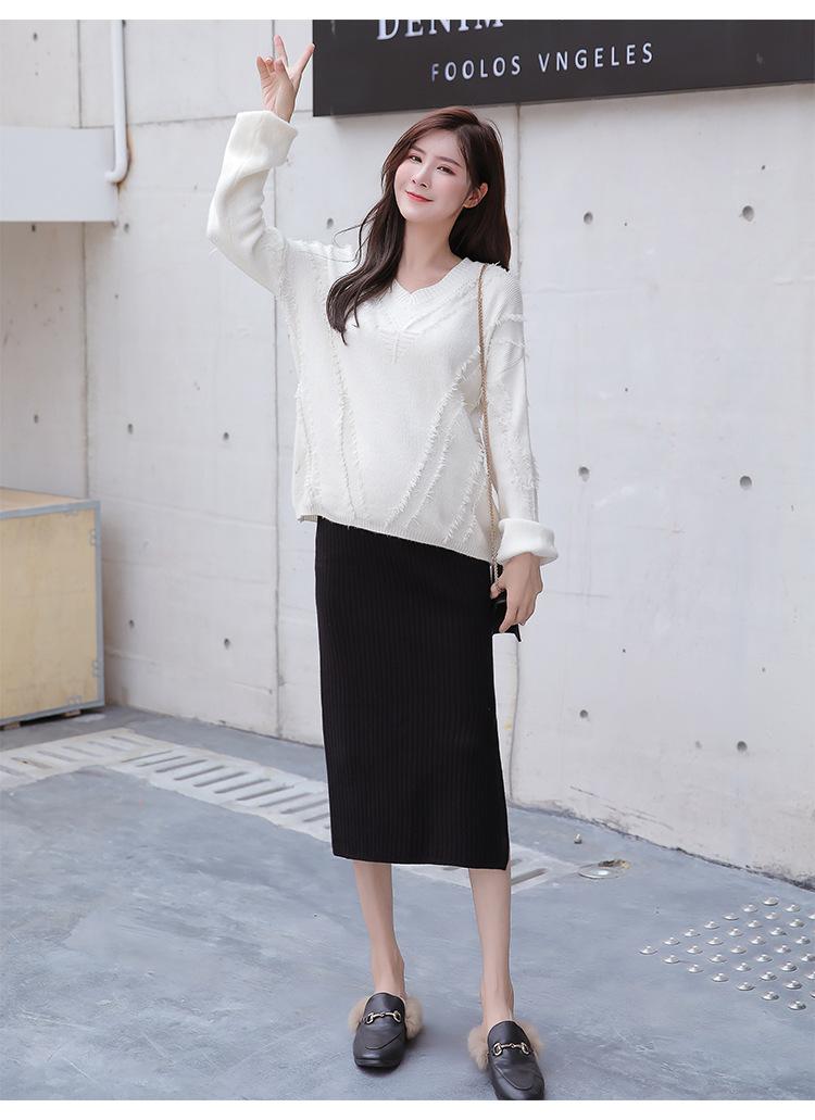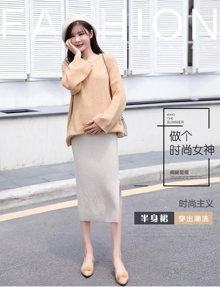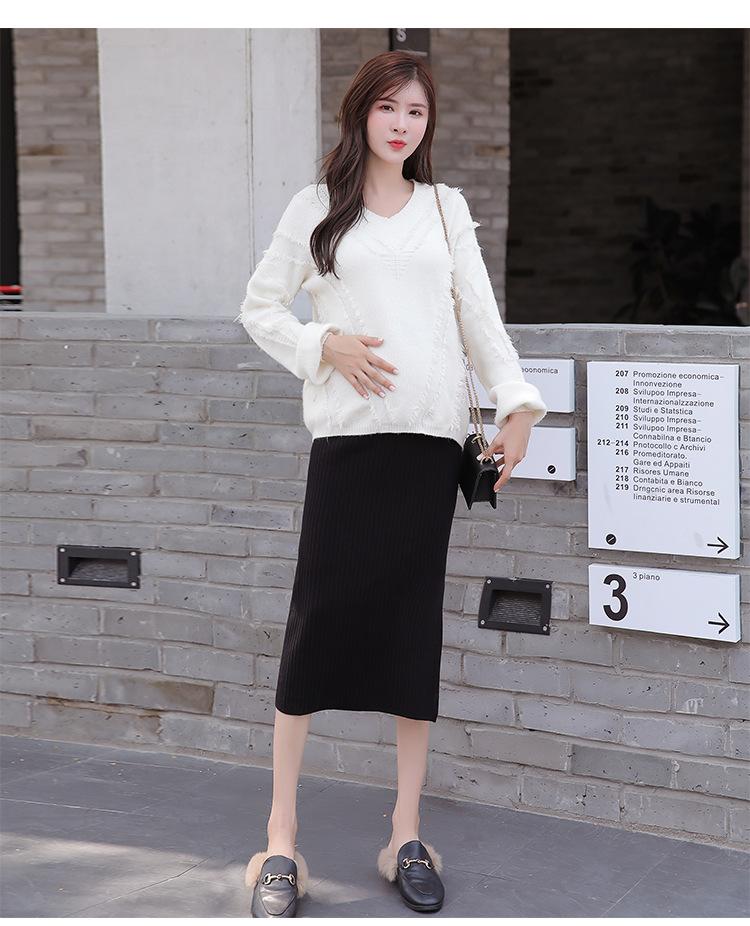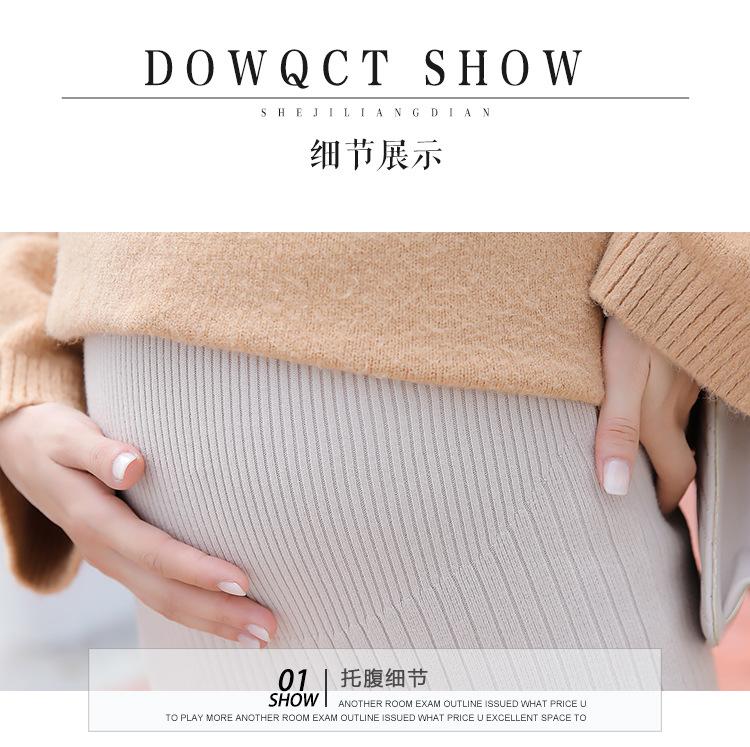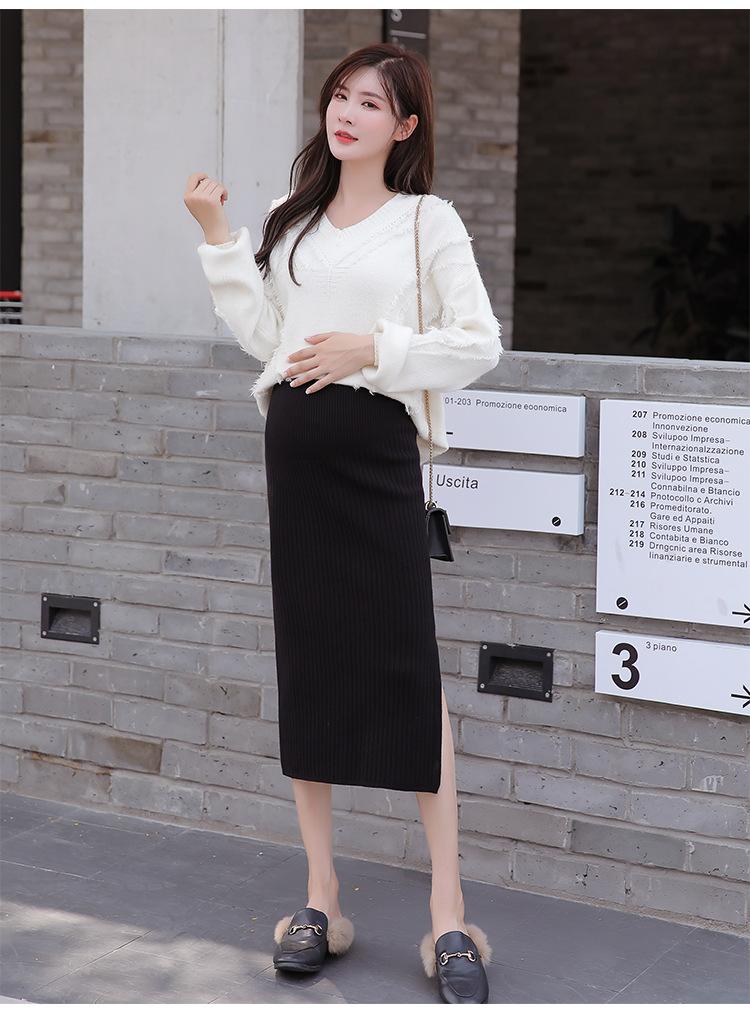 Maternidad 2021 Otoño e Invierno Nueva Falda Tejida Abdominal Cadera Falda de un Paso Media Longitud Falda de Lana para Mujeres Embarazadas