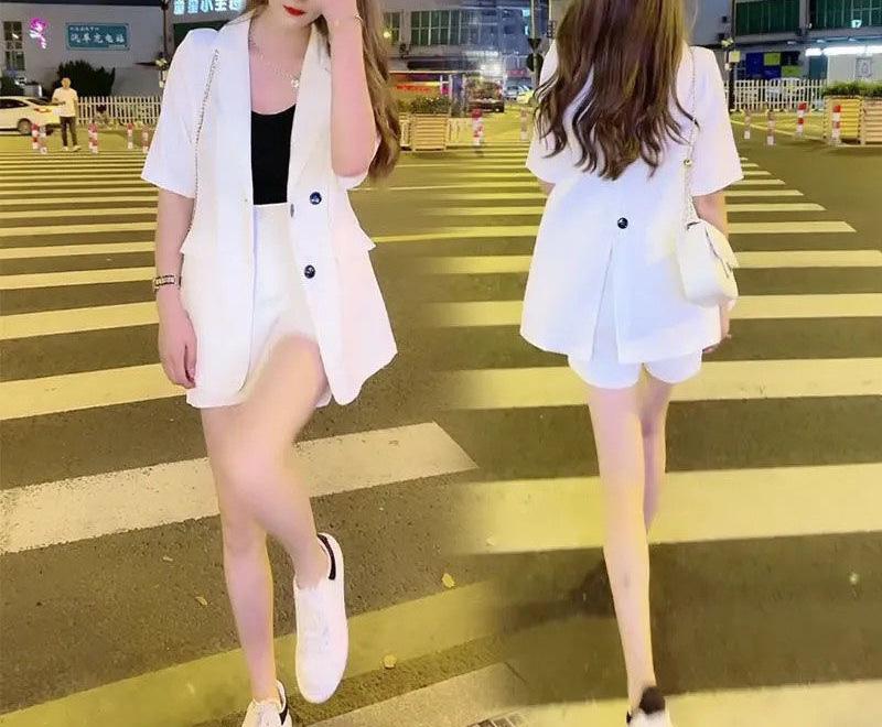 Traje informal, pantalones, novedad de 2024, para mujer, estilo coreano, moda informal, pantalones cortos antiedad, dos piezas, verano, delgados.