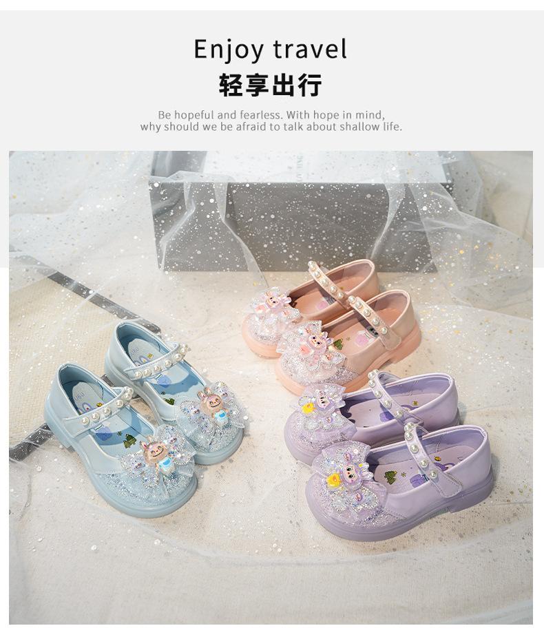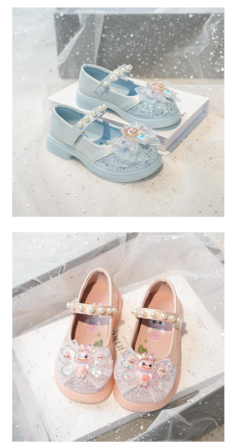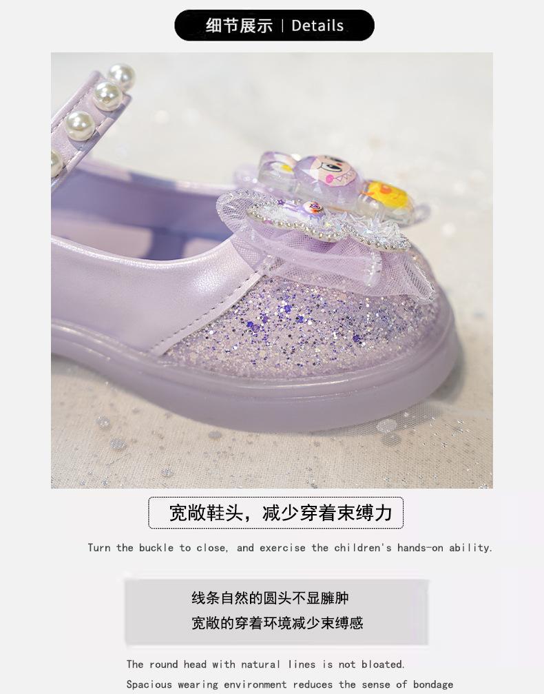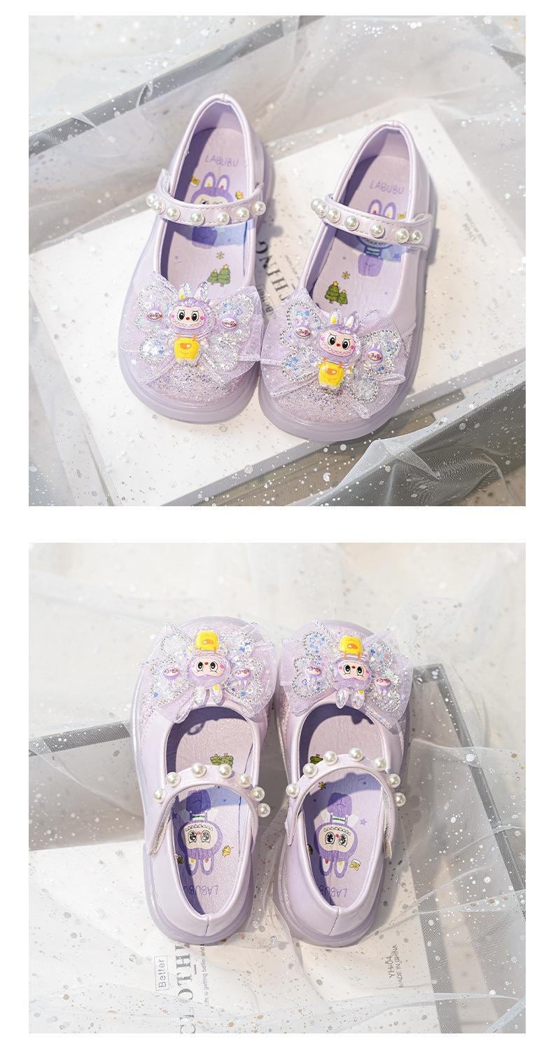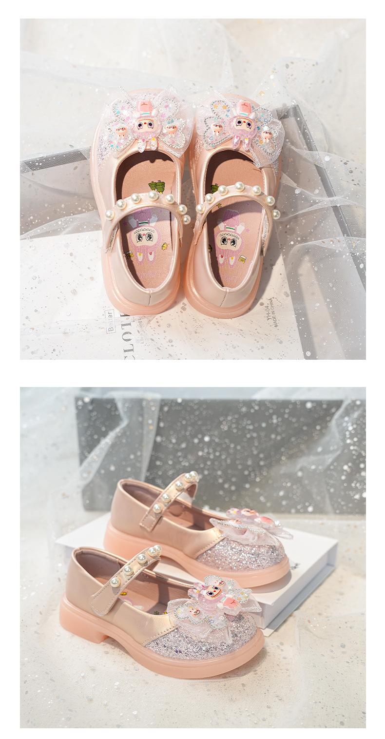 Zapatos de Cuero para Niñas con Luces Zapatos de Princesa Primavera Otoño 2024 Nuevos Suela Suave Niña Perla Mary Janes