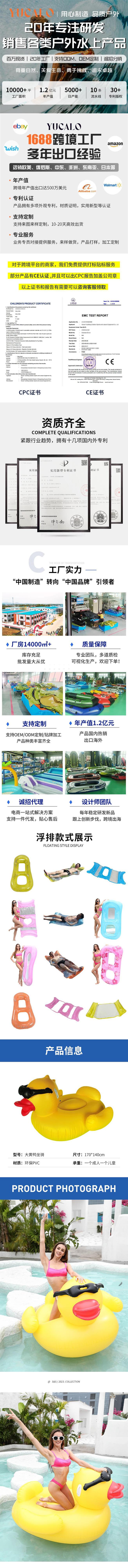 Big yellow duck 170*145*93cm, Flamingo rose gold 150cm, Unicorn 200*90*100cm, Pearl shell 140*90cm, Luminous p...