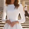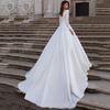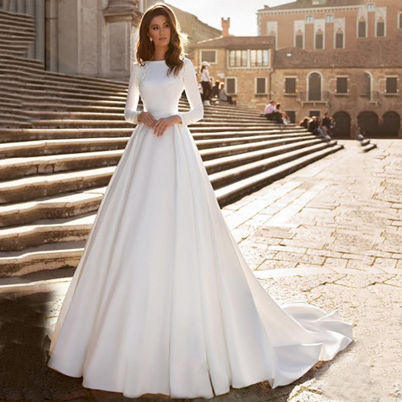 Vestido de Novia de Exportación Europeo y Americano Ebay2025 Nuevo Amazon Manga Larga Satén Estilo Europeo Sencillo Cola Vestido de Novia