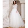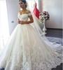 Vestido de Novia para Novias de Comercio Exterior 2025 Nuevo Estilo Hombro Descubierto Manga Larga Encaje Pomposo Tul Vestido de Novia con Cola para Verano