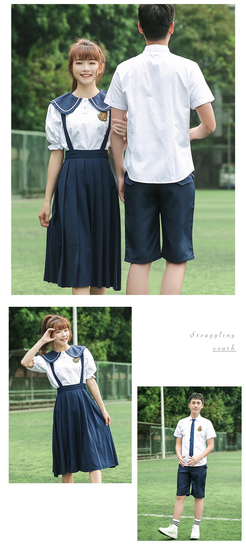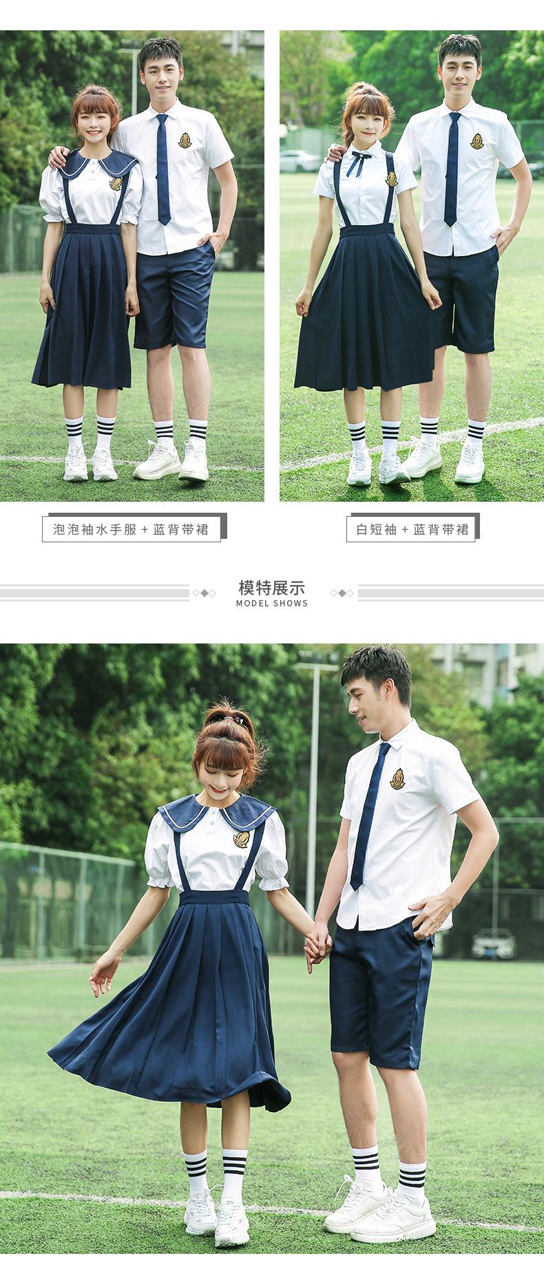 Women's bubble sleeve sailor suit + Blue Dress (straps need to be taken separately) + badge, Men's white short...