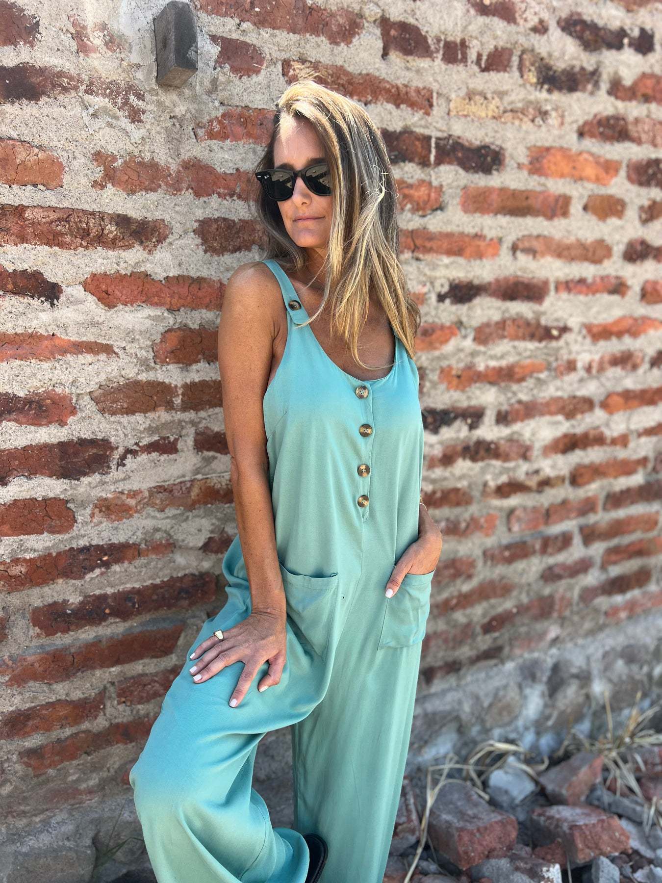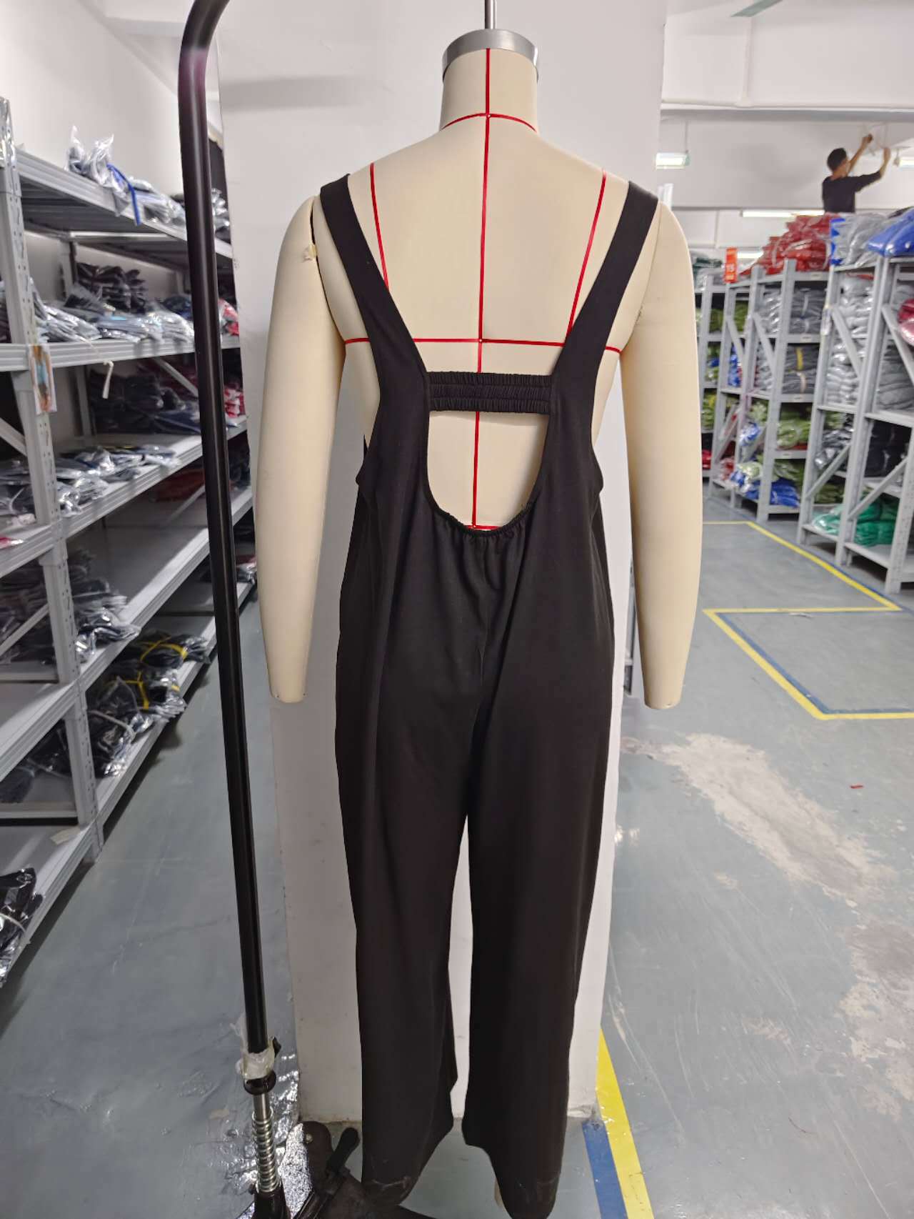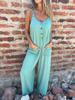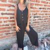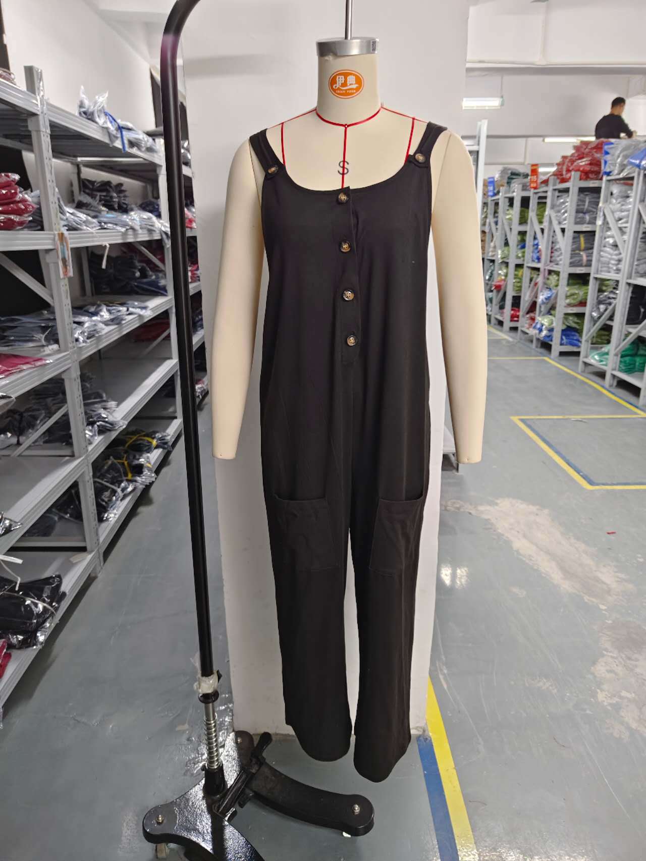 En Stock Verano Nuevo Sitio Independiente de Amazon Europeo y Americano Color Sólido Botón Bolsillo Suelto Casual Mono de Tirantes para Mujer