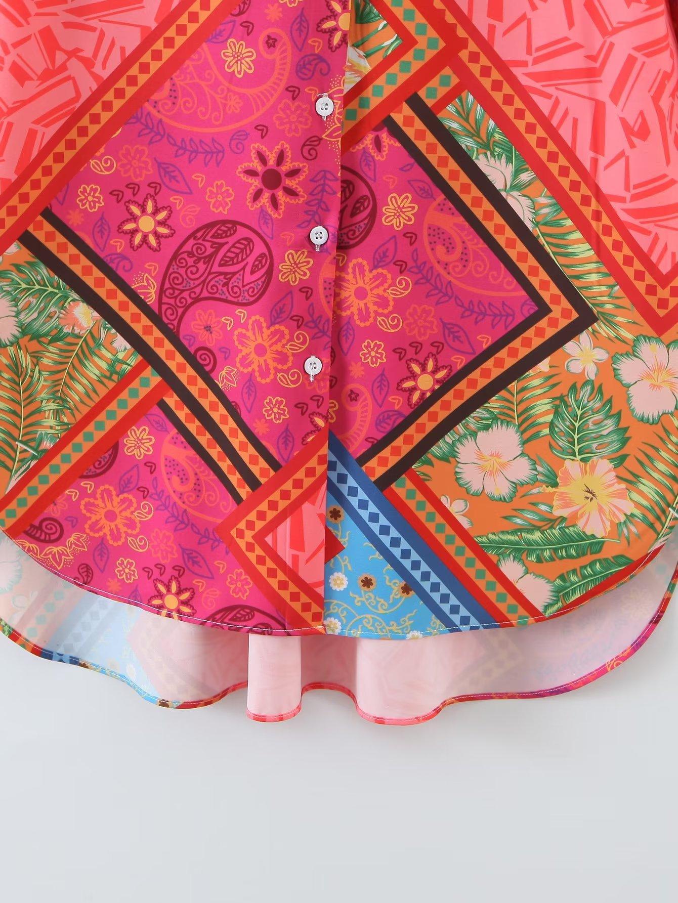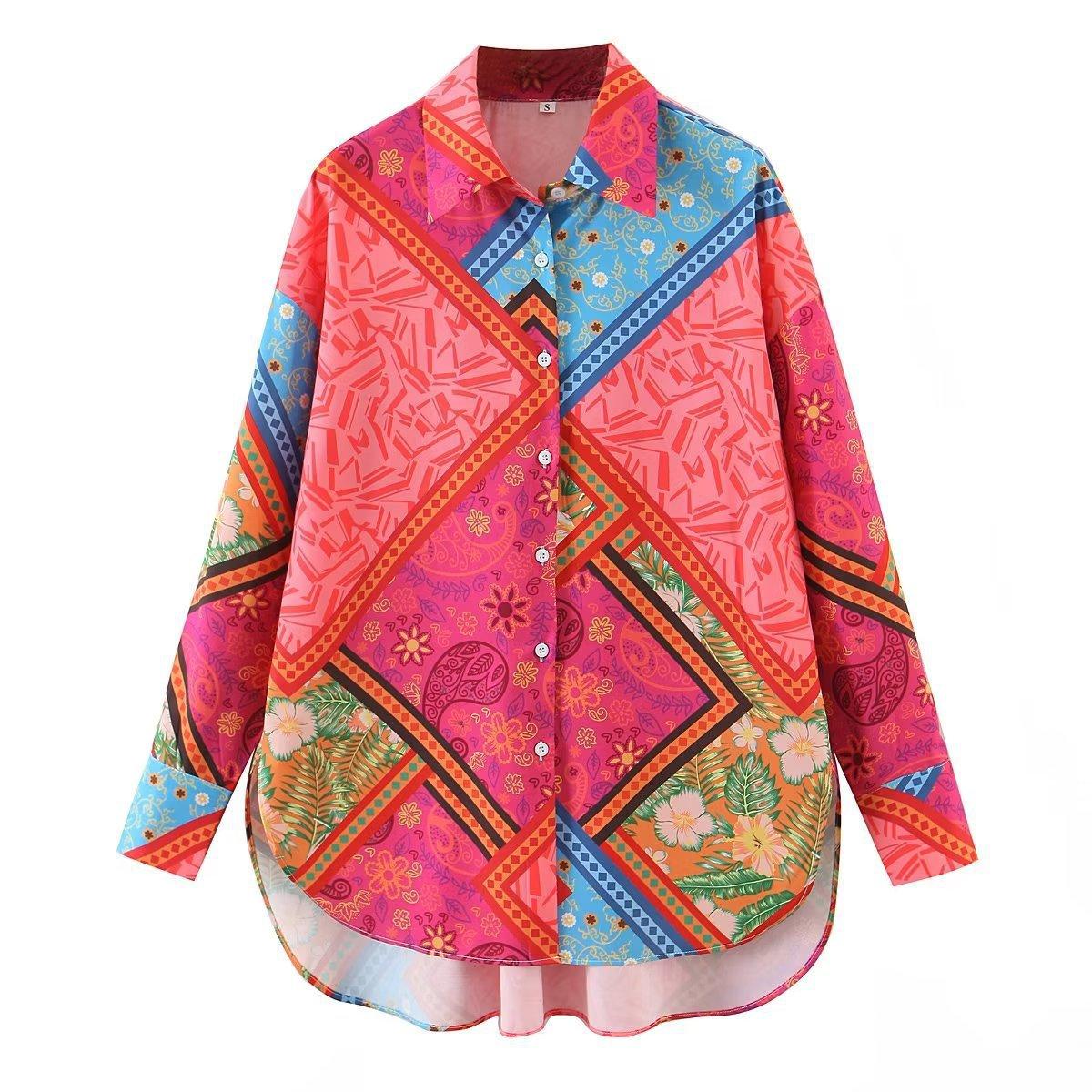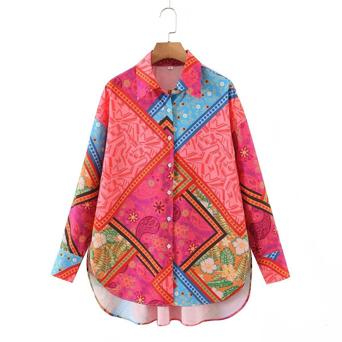Comercio Exterior 2022 Otoño Europeo y Americano Nueva Moda para Mujer Camisa Casual de Manga Larga Estampada Irregular con Corte Holgado