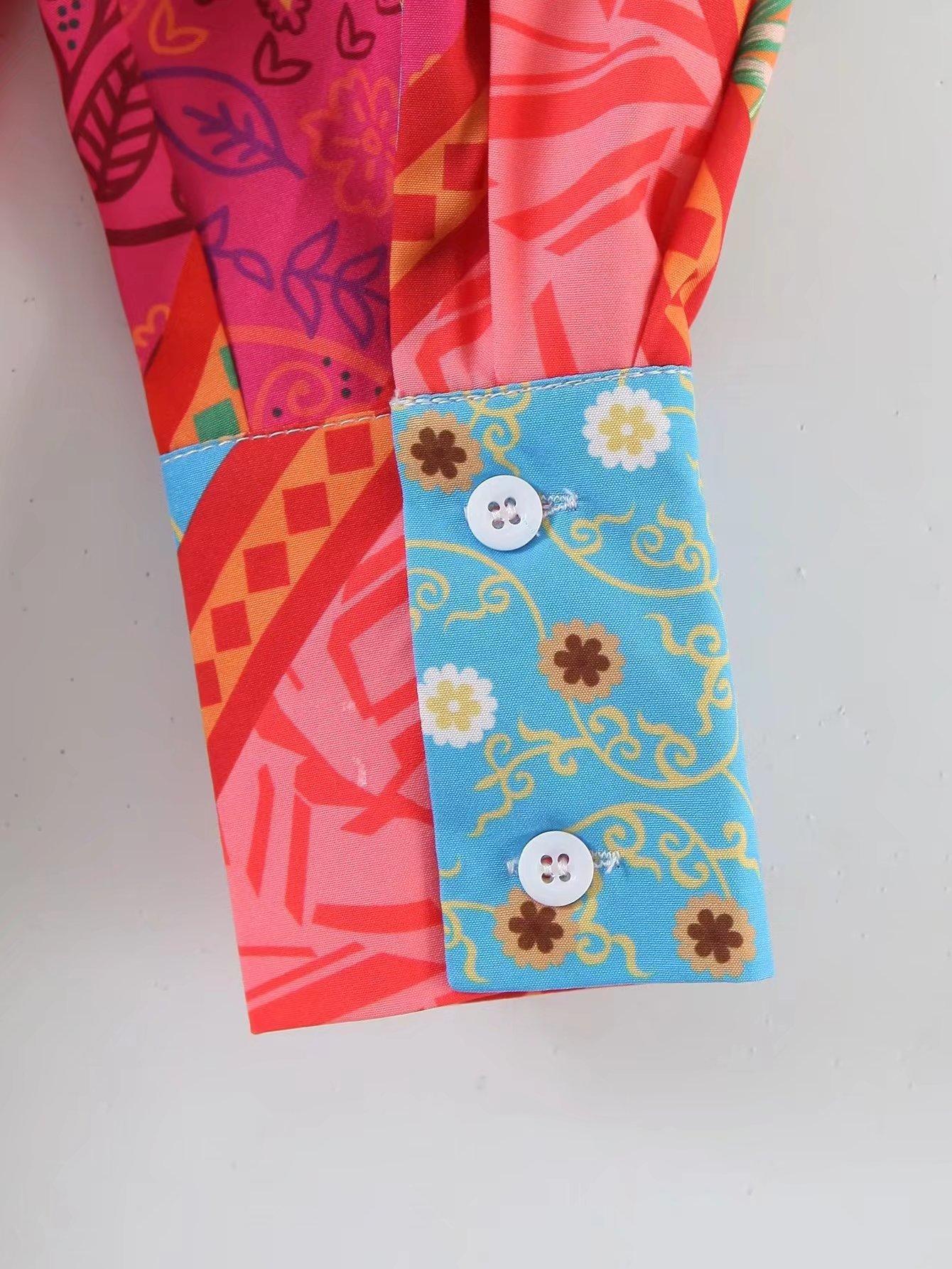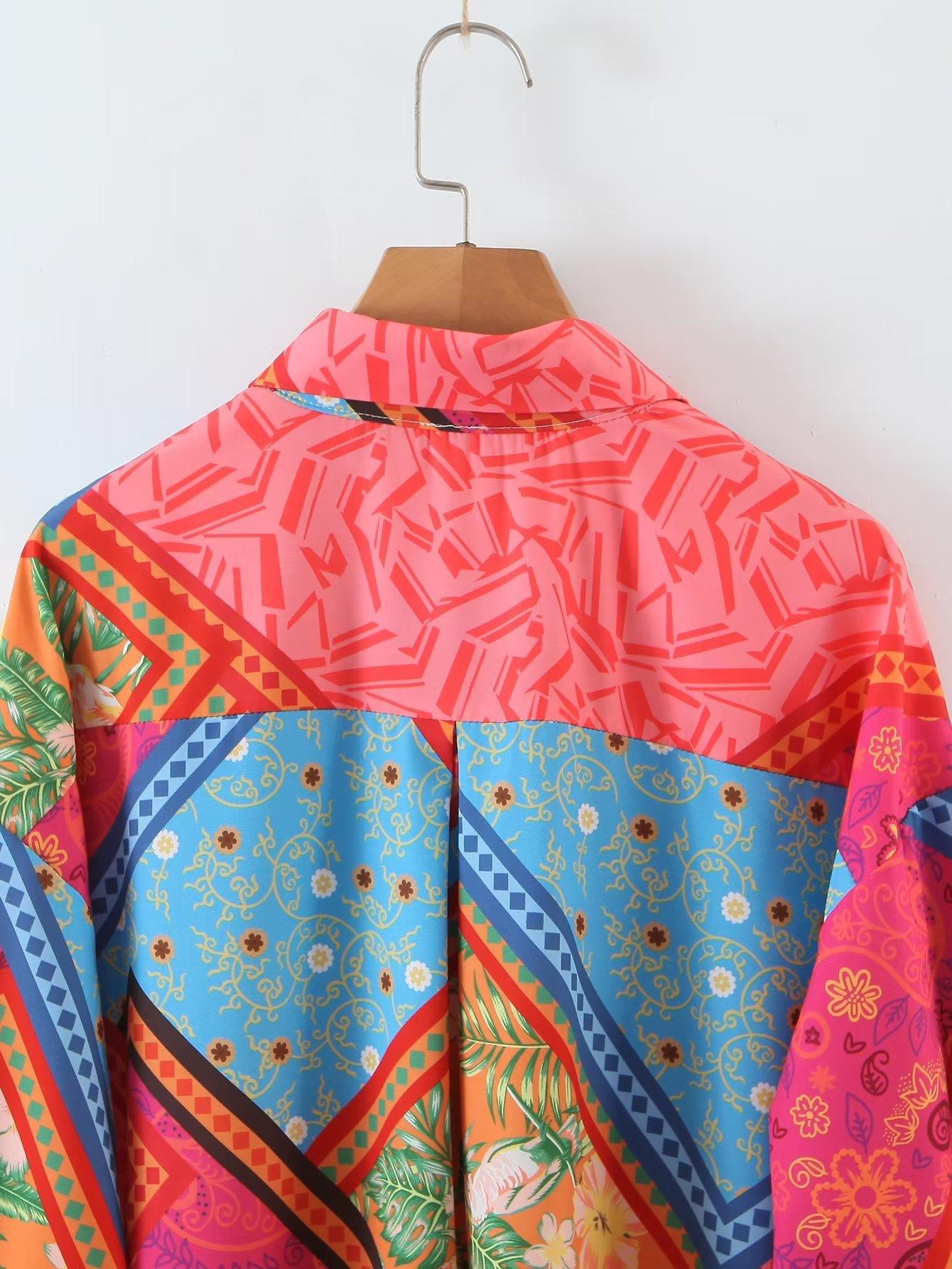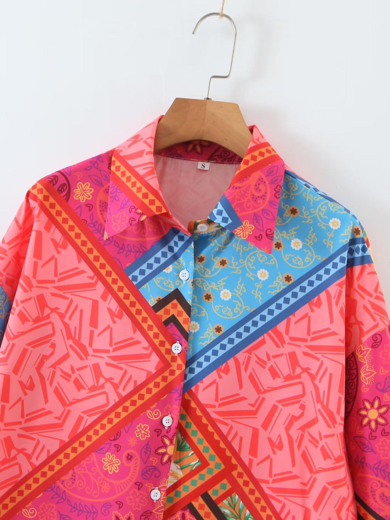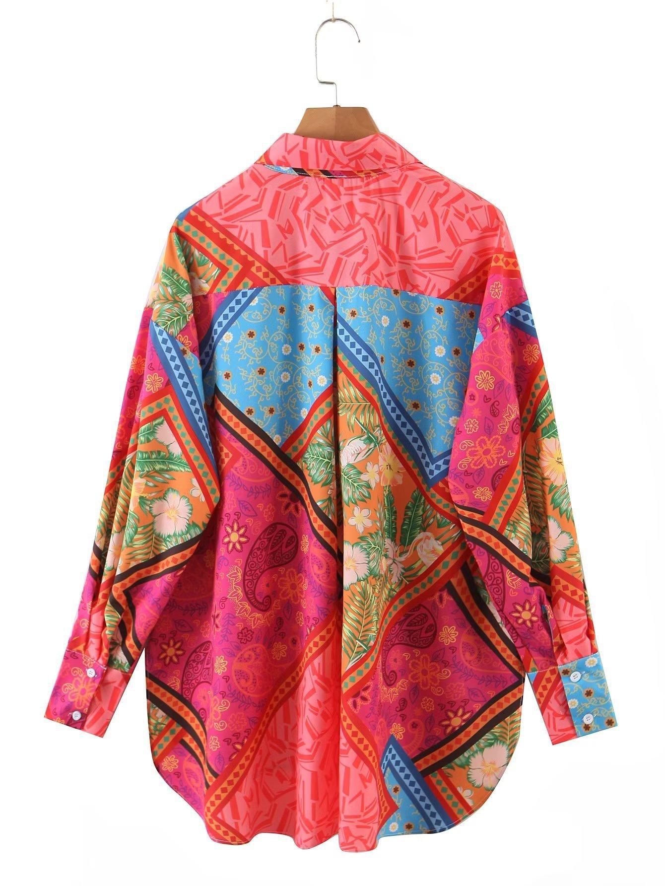 2022 Otoño Nuevo Estilo Europeo y Americano Camisa Irregular Estampada de Manga Larga para Mujer