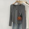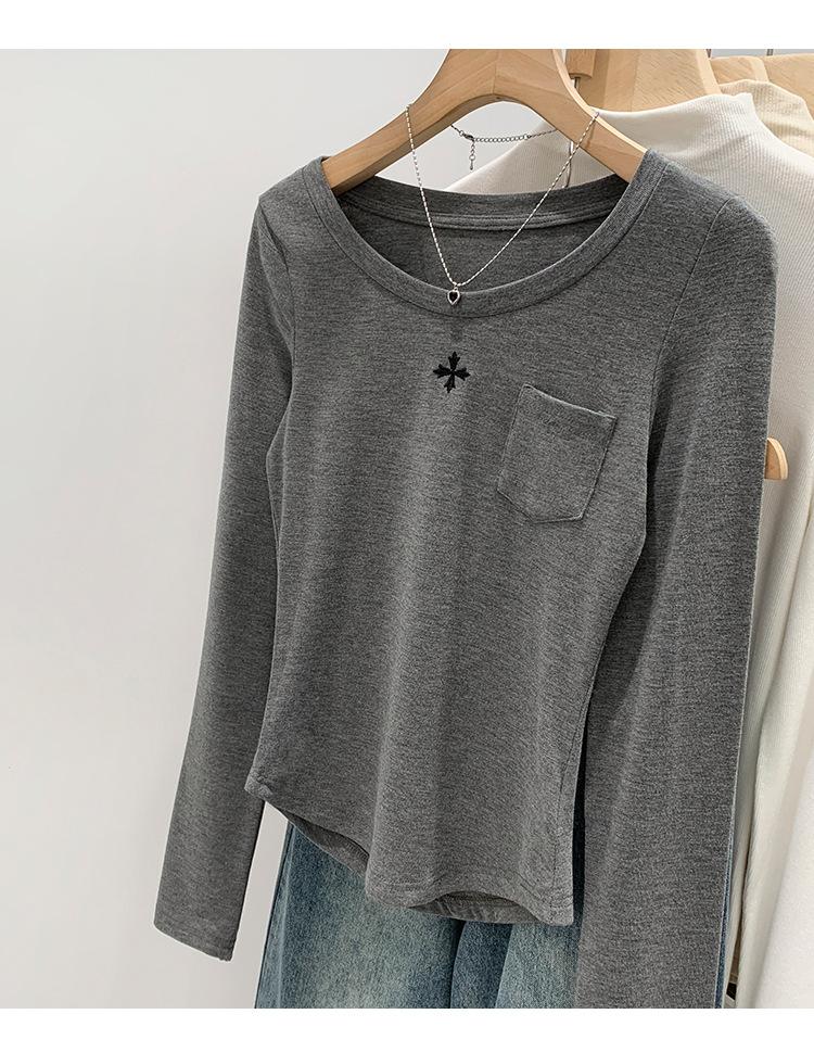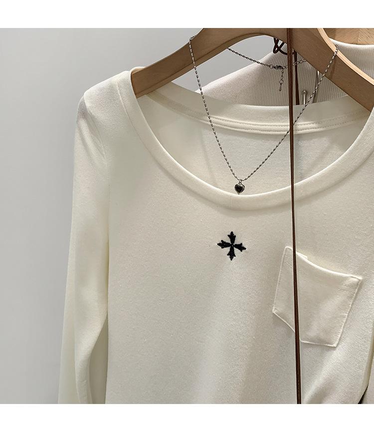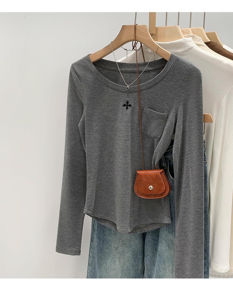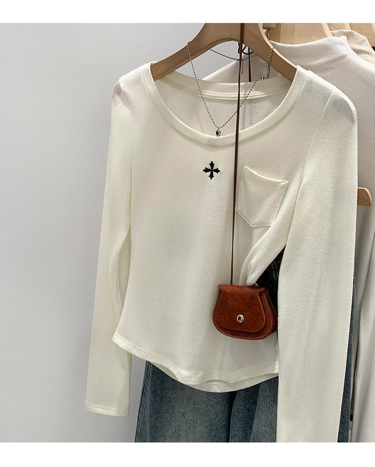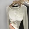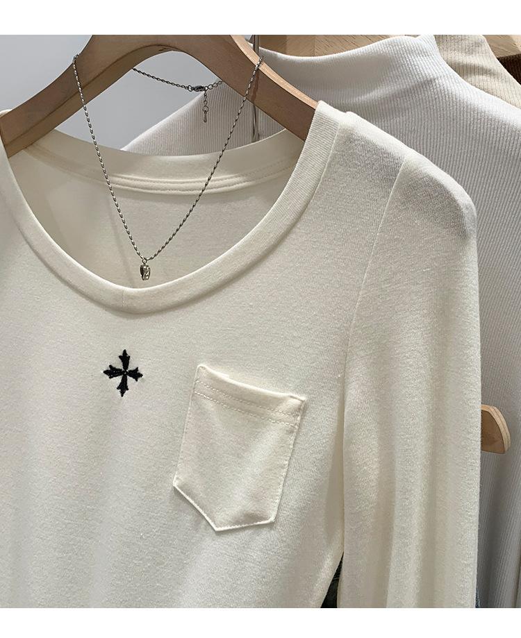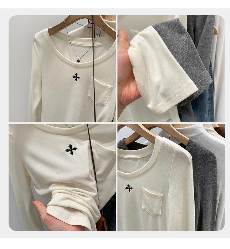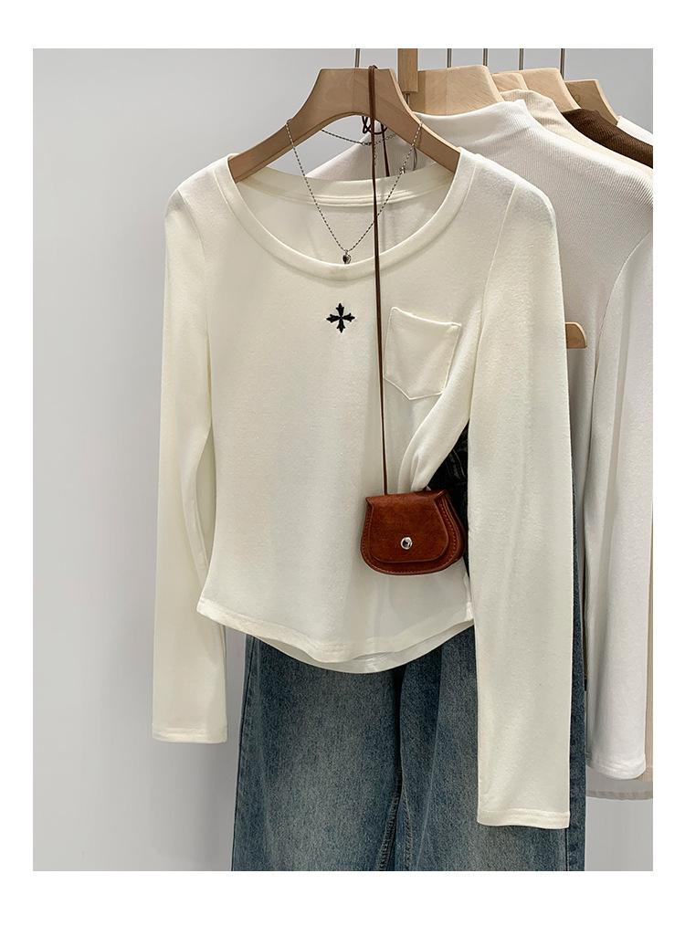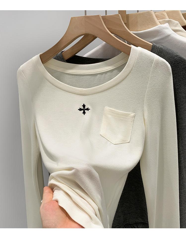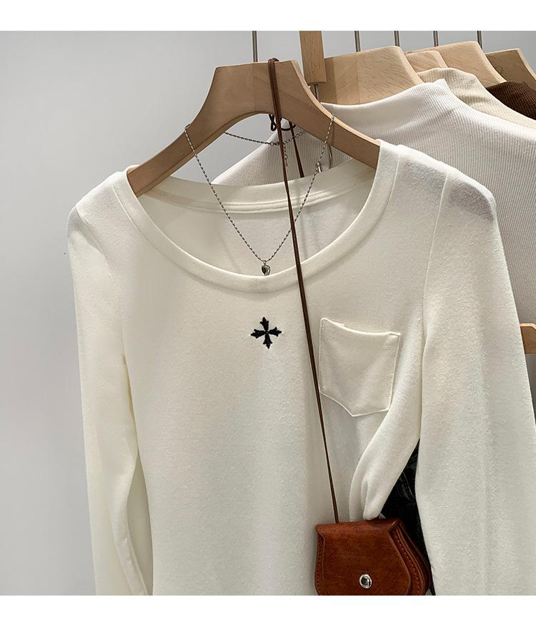 Qué bueno otoño e invierno 2025 nuevo estilo coreano manga larga camiseta interior base para mujer delgada ajuste ceñido adelgazante camiseta estilo americano