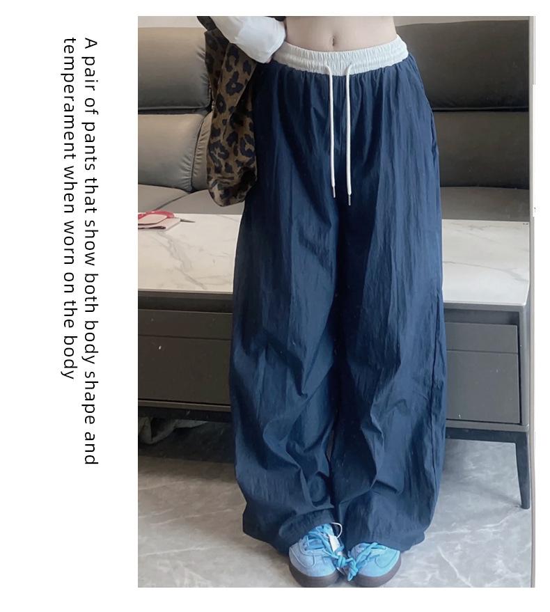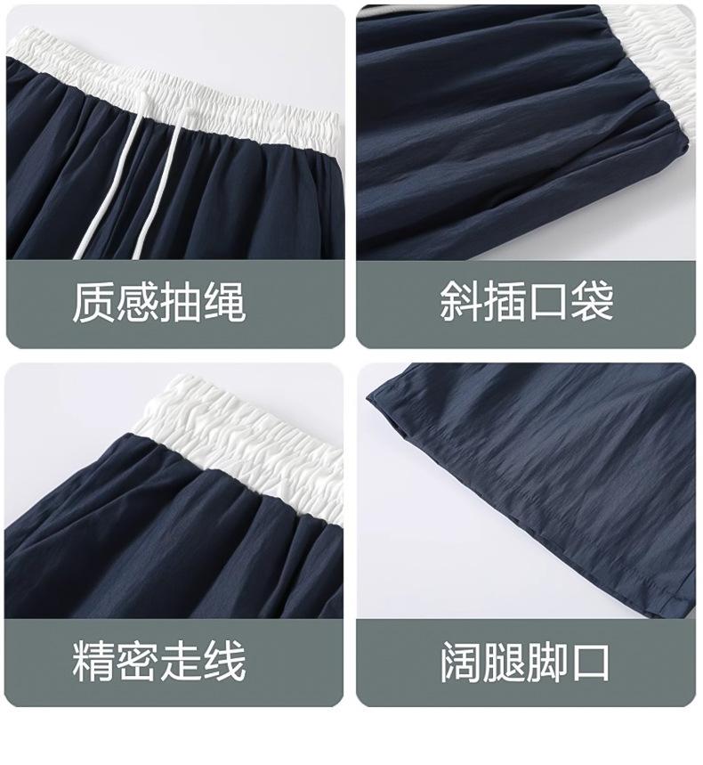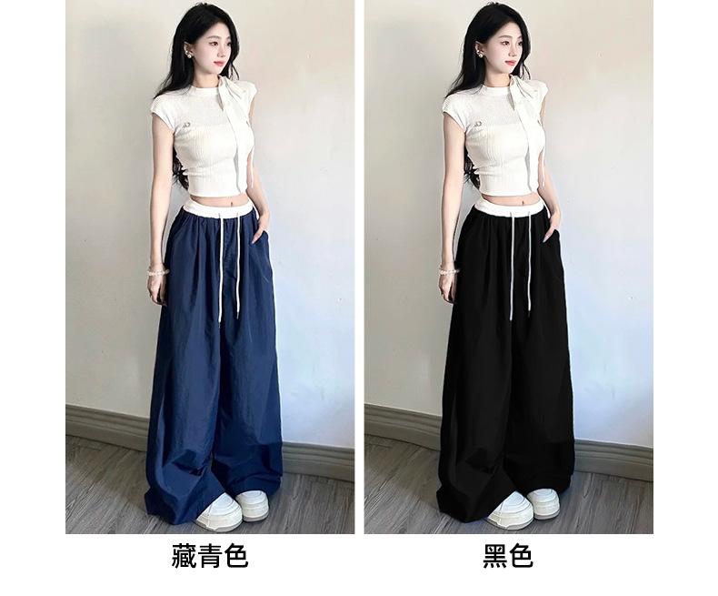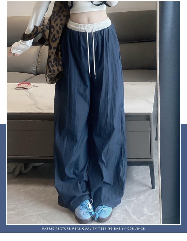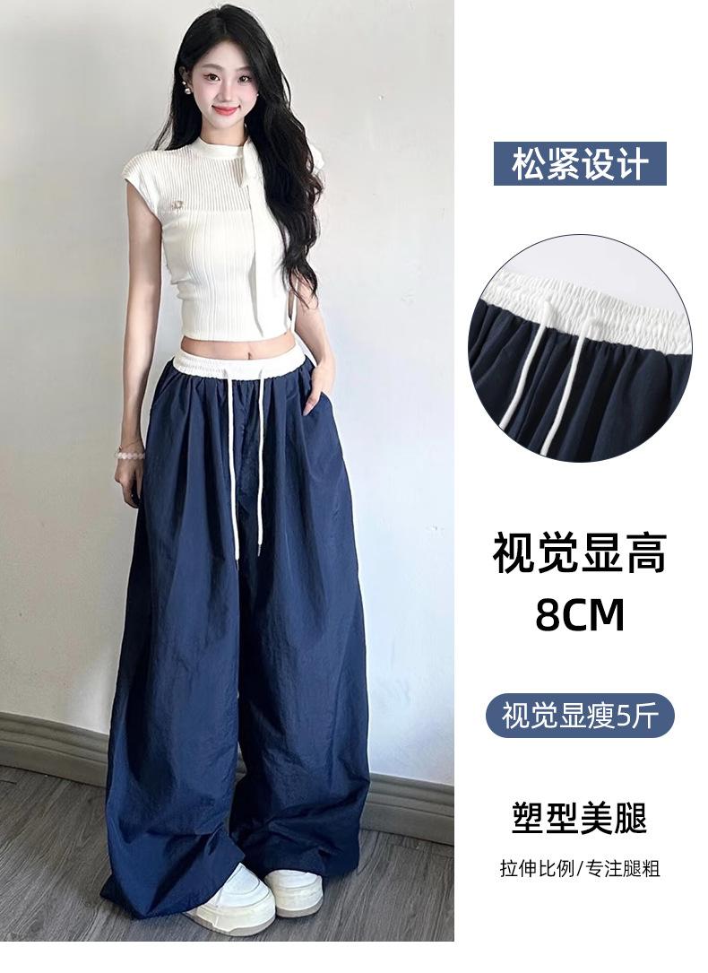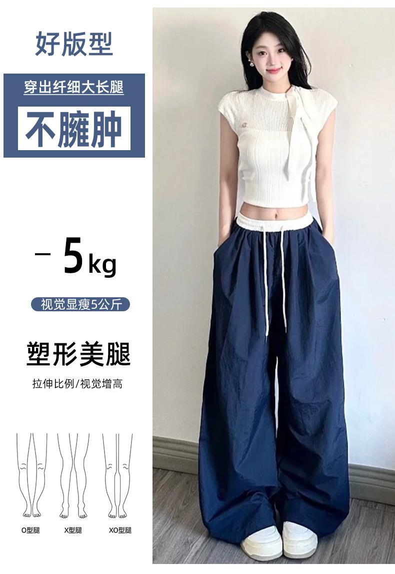 Pantalones azul marino de secado rápido de pierna ancha para mujer verano 2025 nuevos holgados estilo BF casual seda helada deportivos petite