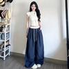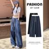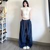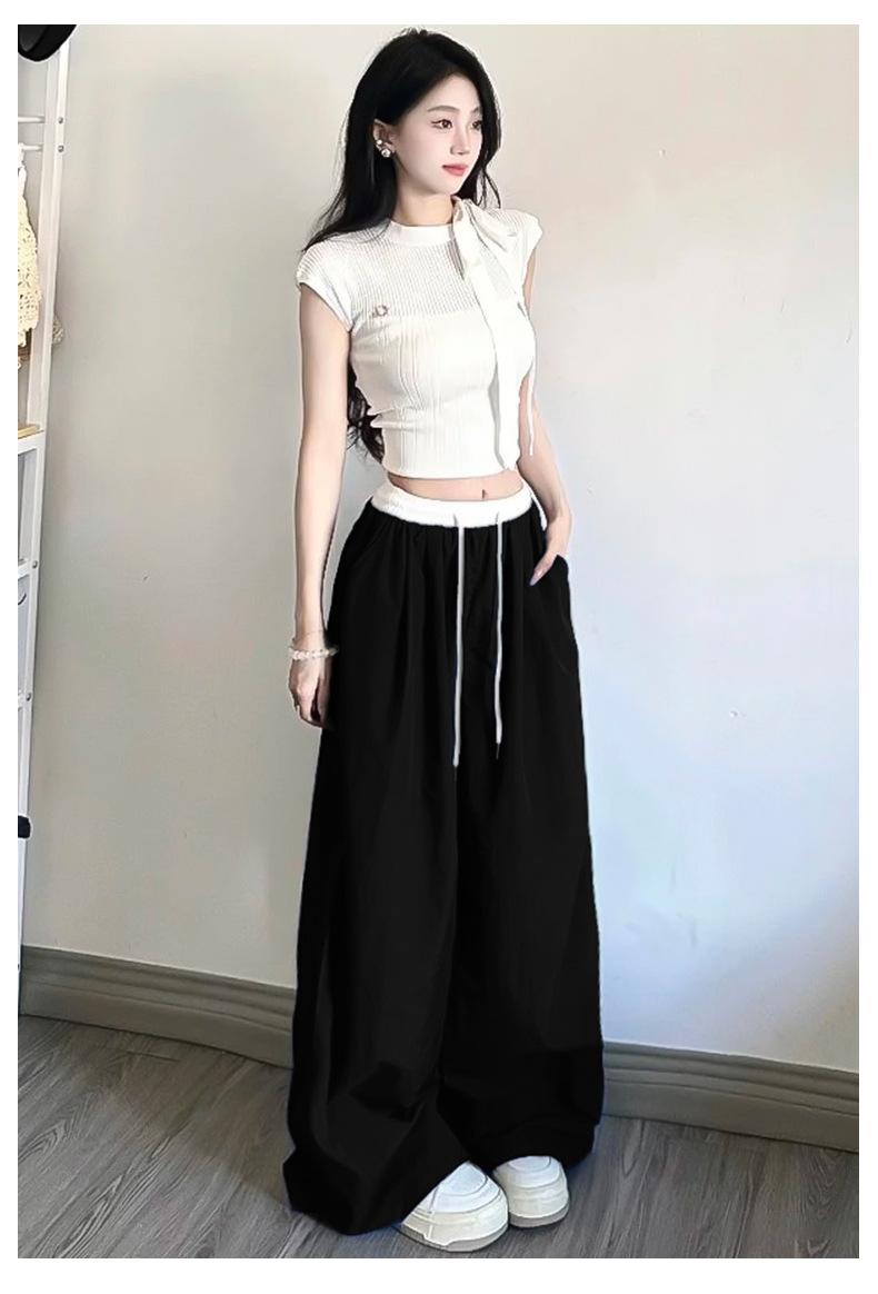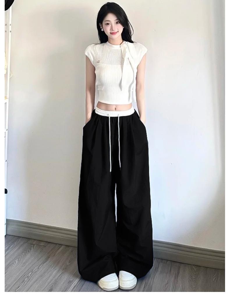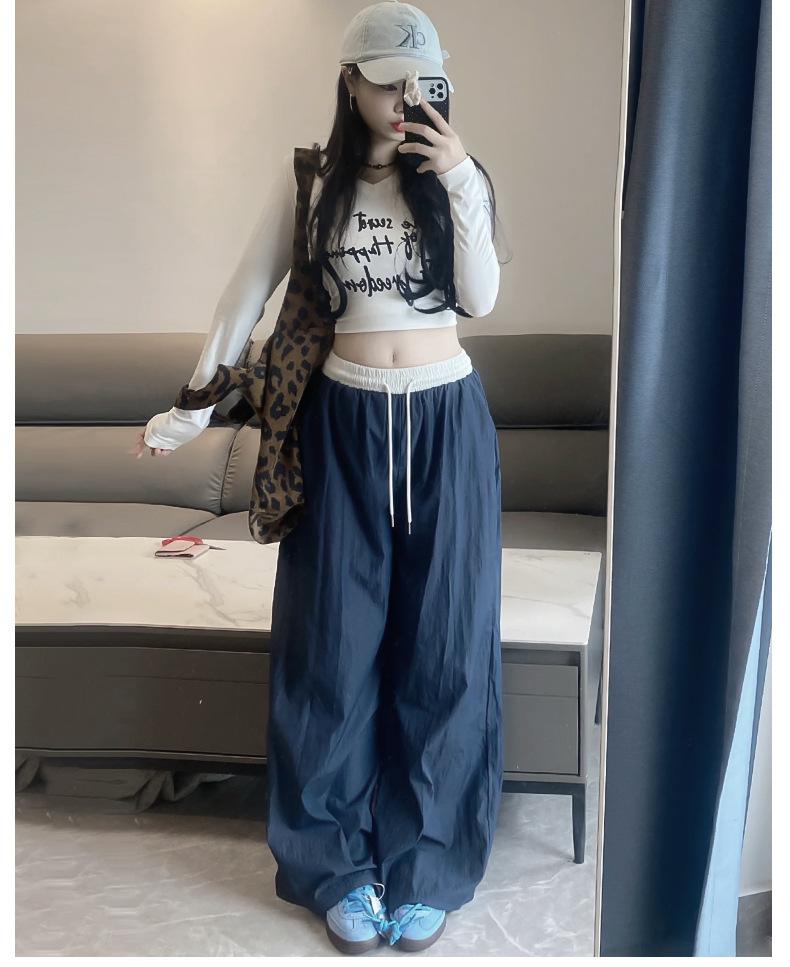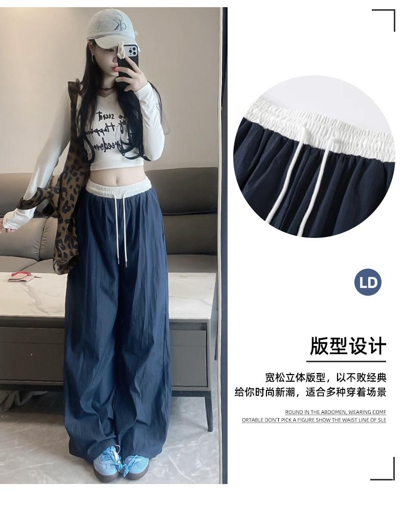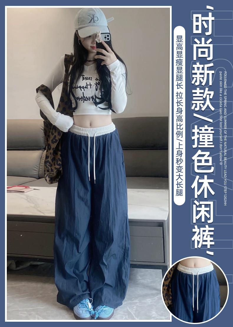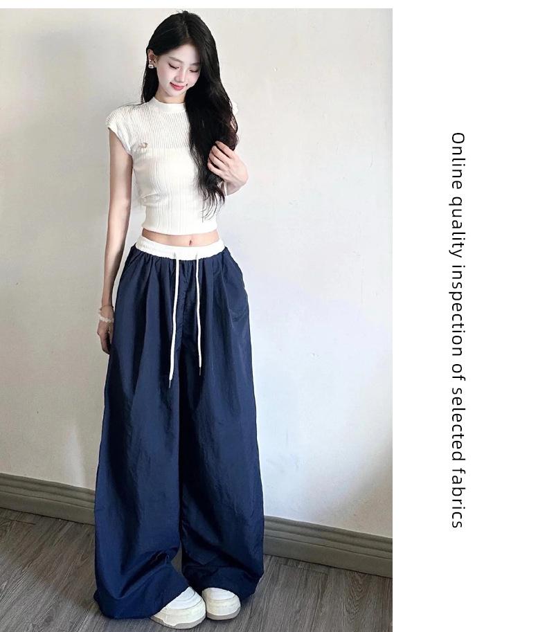 Pantalones azul marino de secado rápido de pierna ancha para mujer verano 2025 nuevos holgados estilo BF casual seda helada deportivos petite