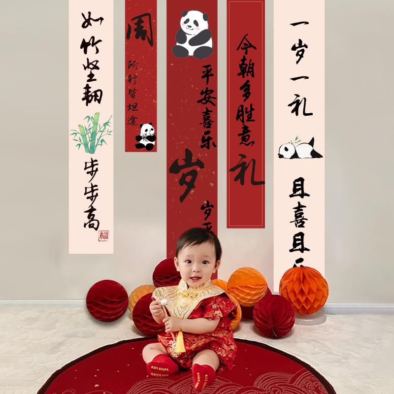 First Birthday Gift Red Bamboo Hanging Cloth, First Birthday Gift Panda Tapestry, First Birthday Ceremony Flor...