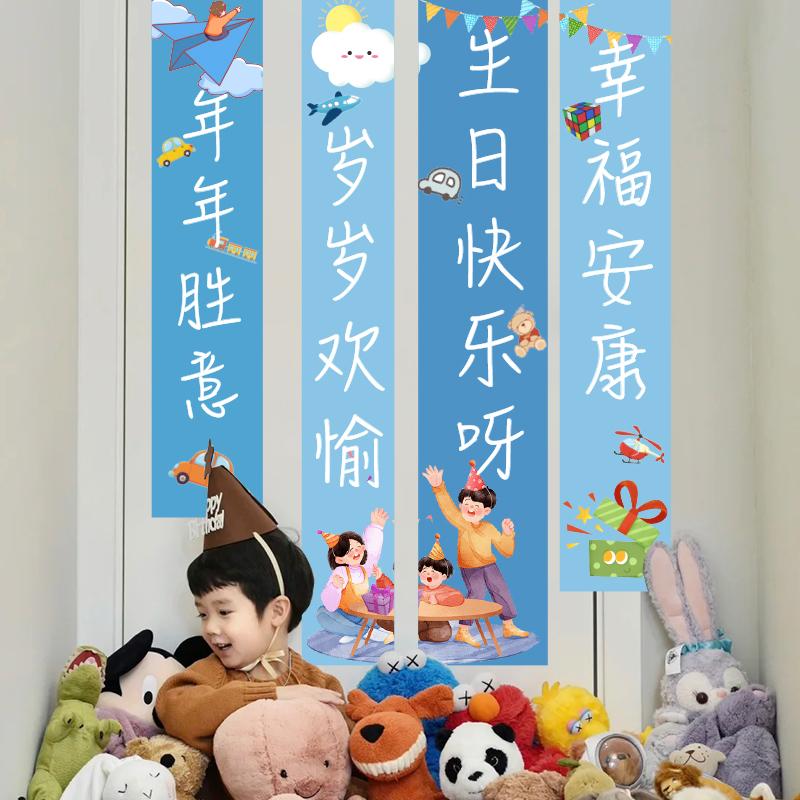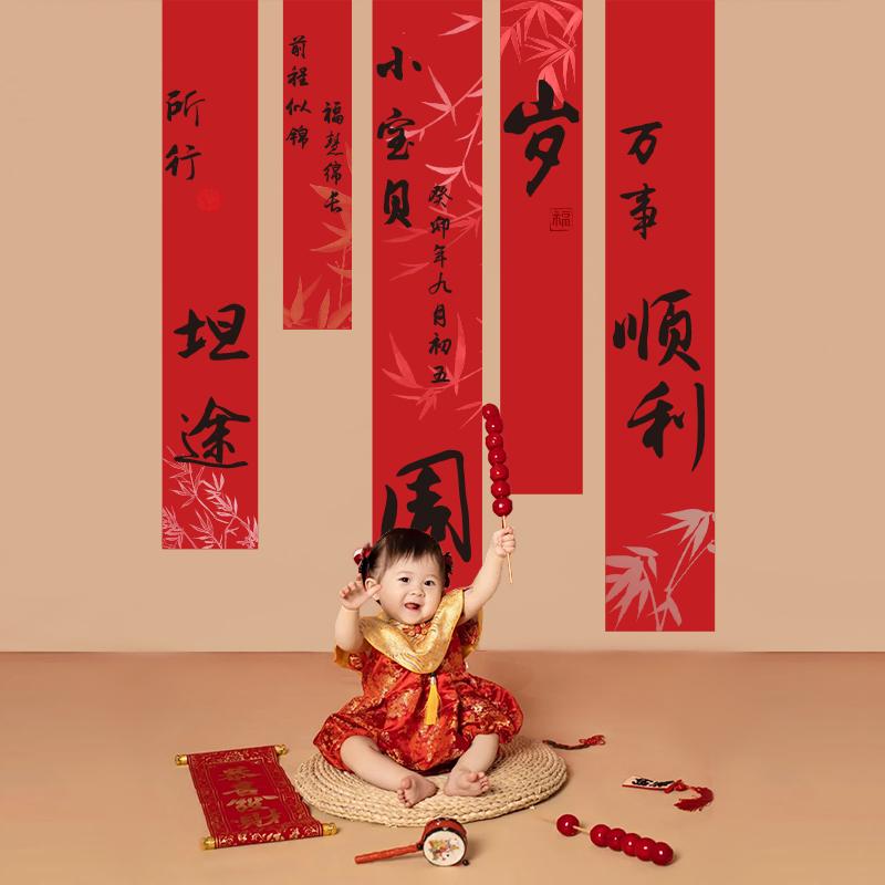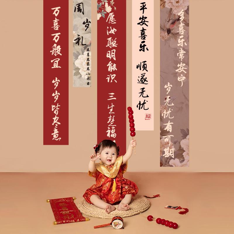 Nuevo Banner de Primer Cumpleaños para Niños de Estilo Chino Paño Colgante Arreglo de Escena de Feliz Cumpleaños Apoyos para Primer Cumpleaños Decoración Pared de Fondo Estilo Nacional