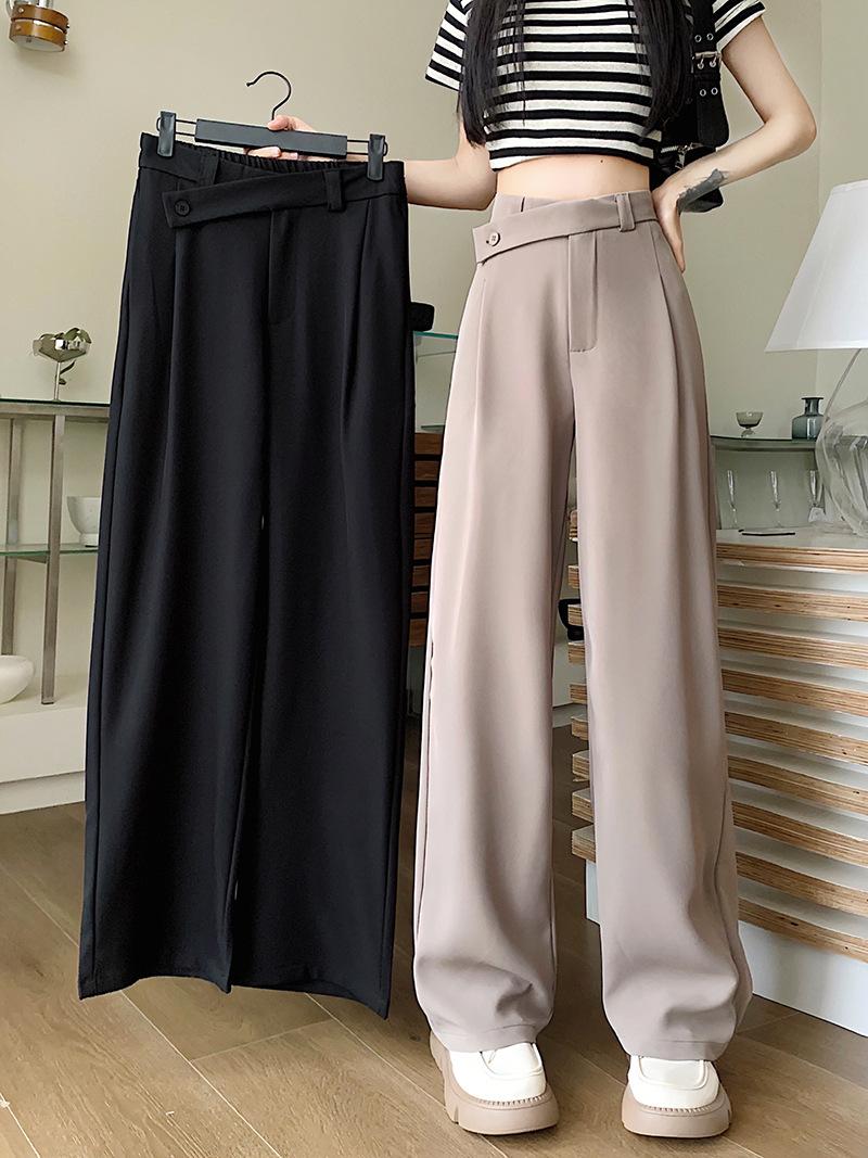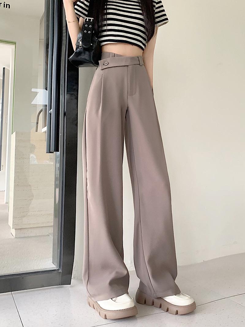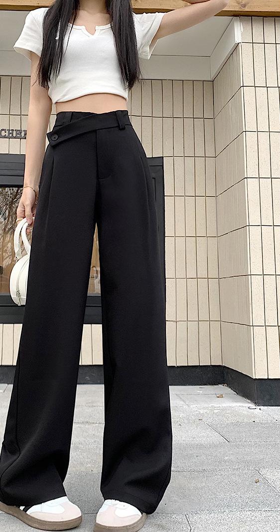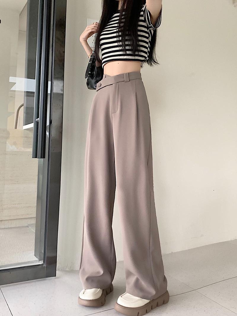 Pantalones de traje de mujer con sentido del diseño de talle alto y caída 2024 primavera y otoño nueva moda pantalones largos de pierna ancha marea