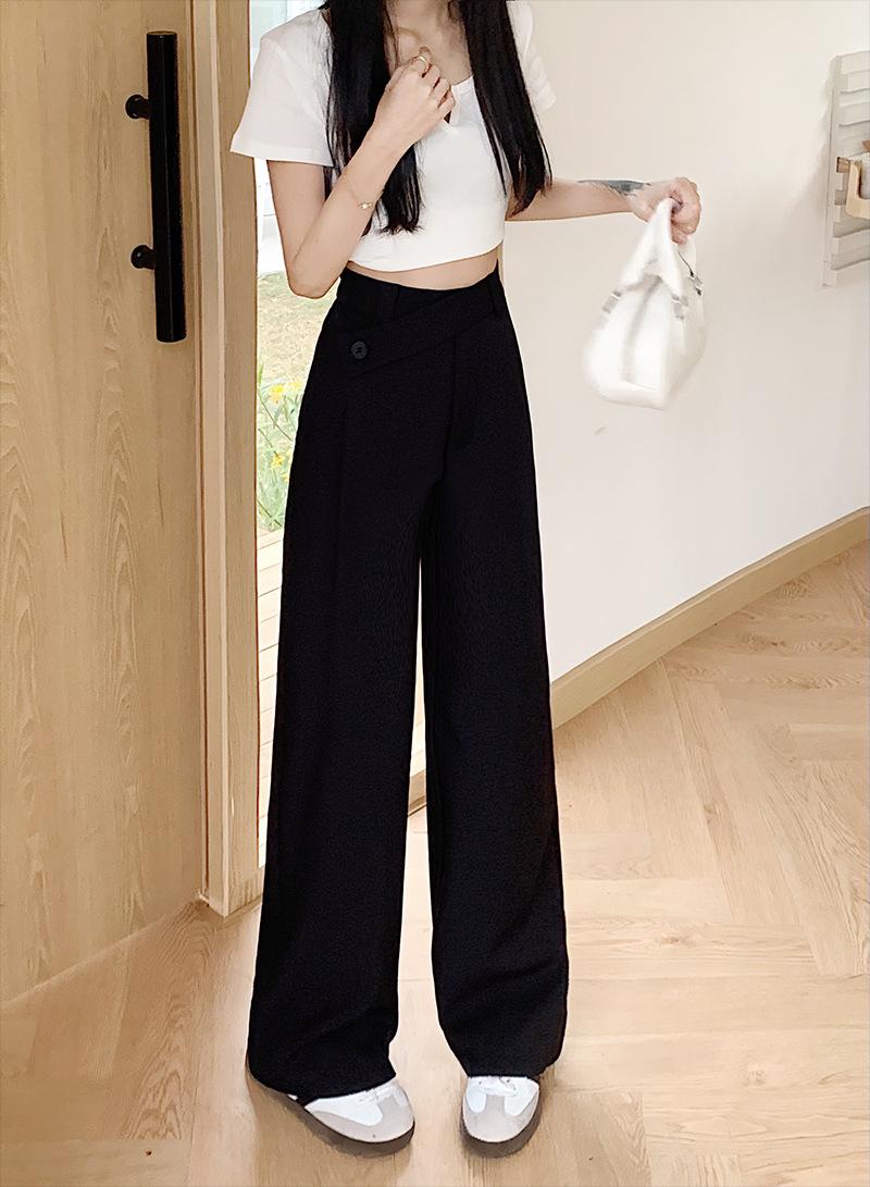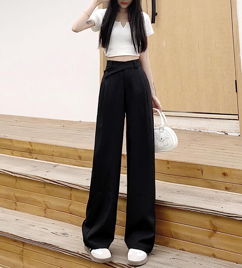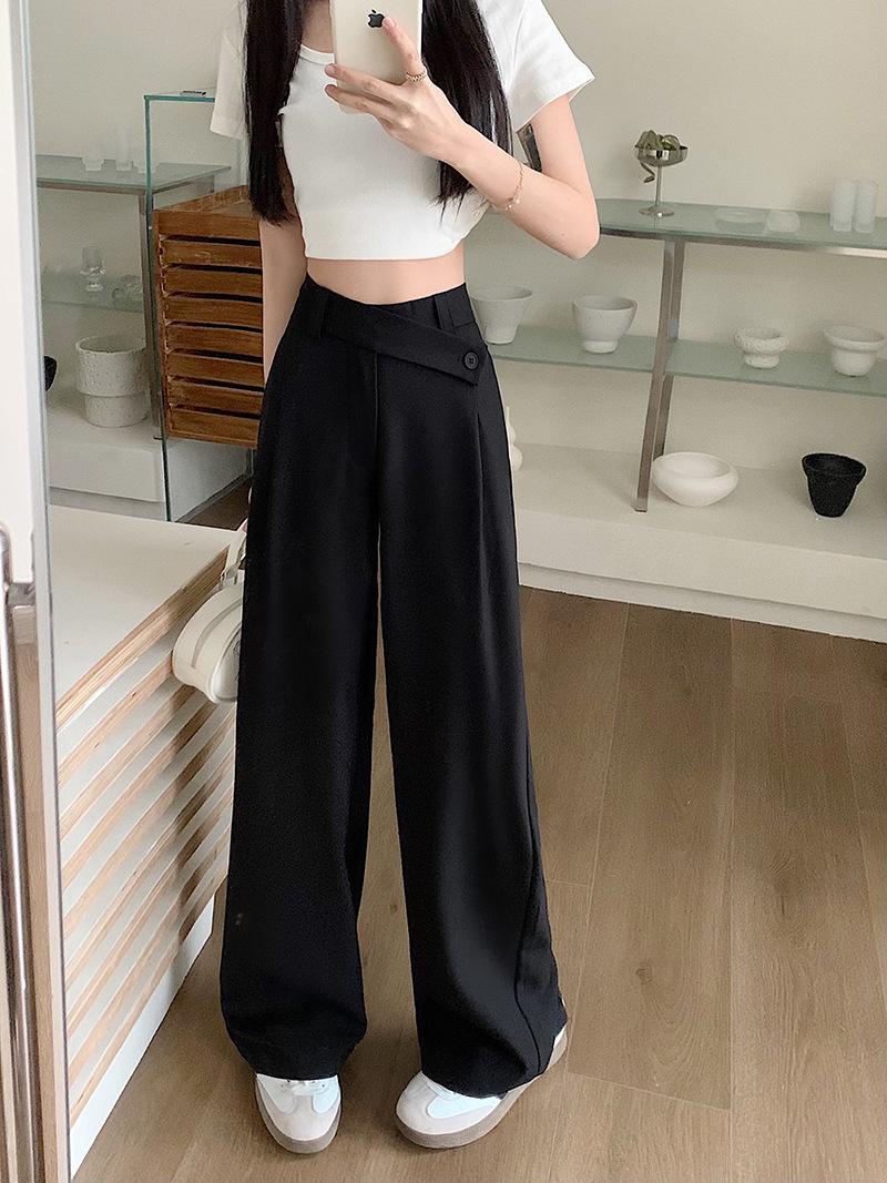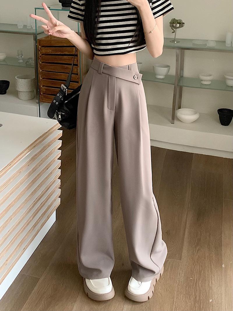 Pantalones de traje de mujer con sentido del diseño de talle alto y caída 2024 primavera y otoño nueva moda pantalones largos de pierna ancha marea