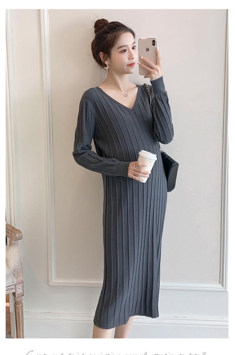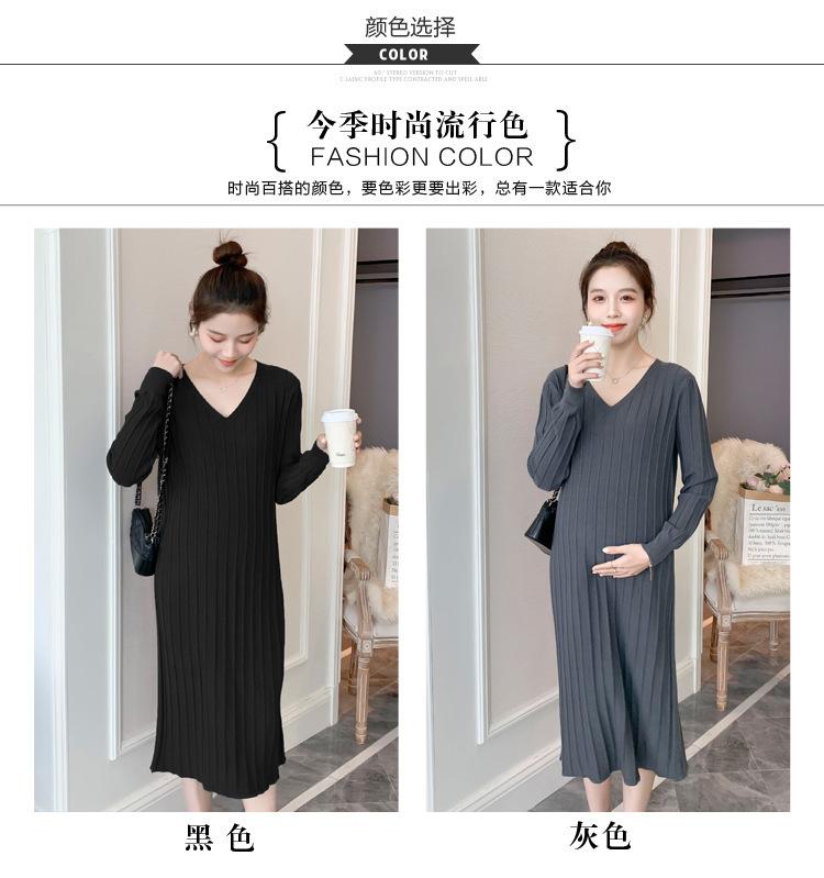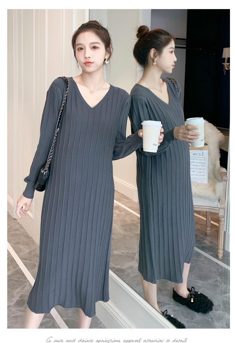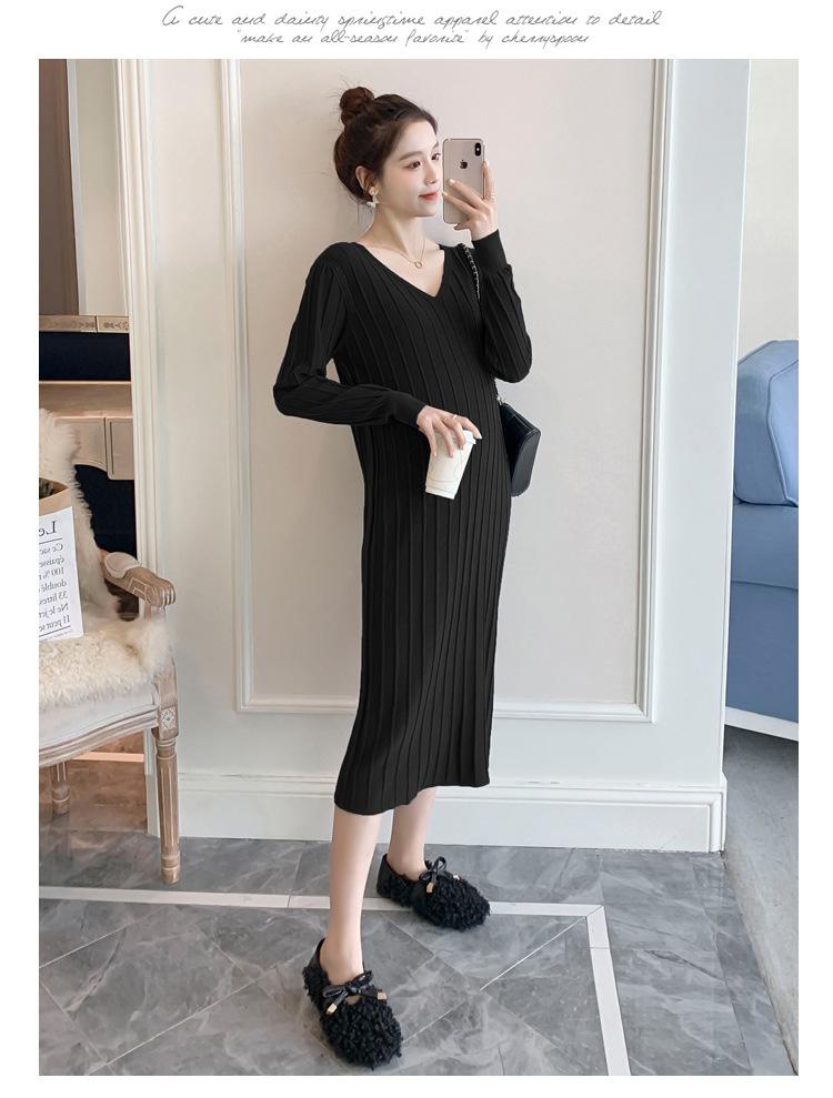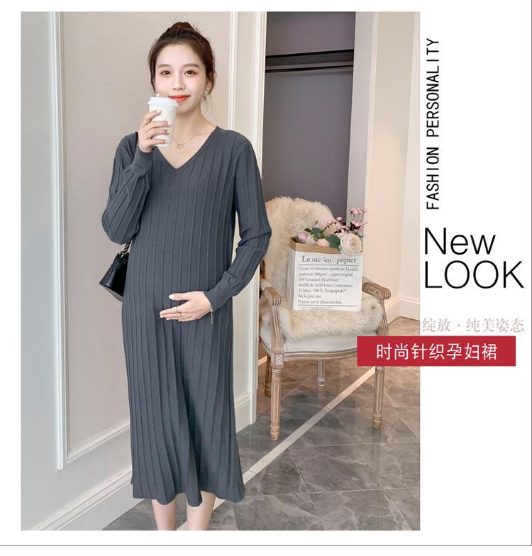 Maternidad 2022 Otoño e Invierno Nuevo Estilo Coreano Moda Versátil Cuello en V Tejido Vestido de Maternidad Sobre la Rodilla