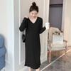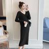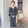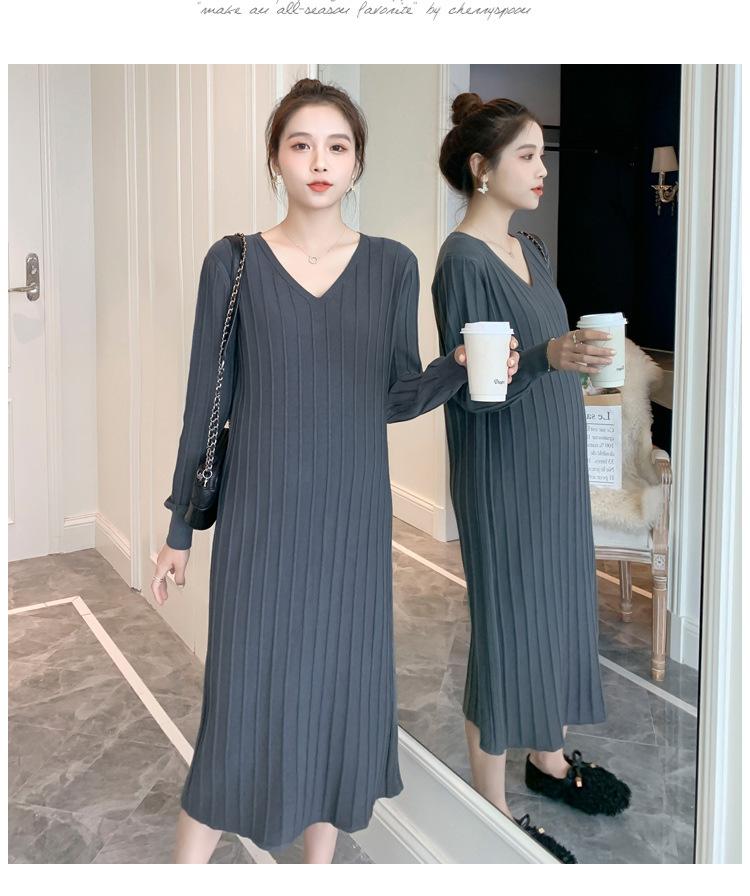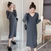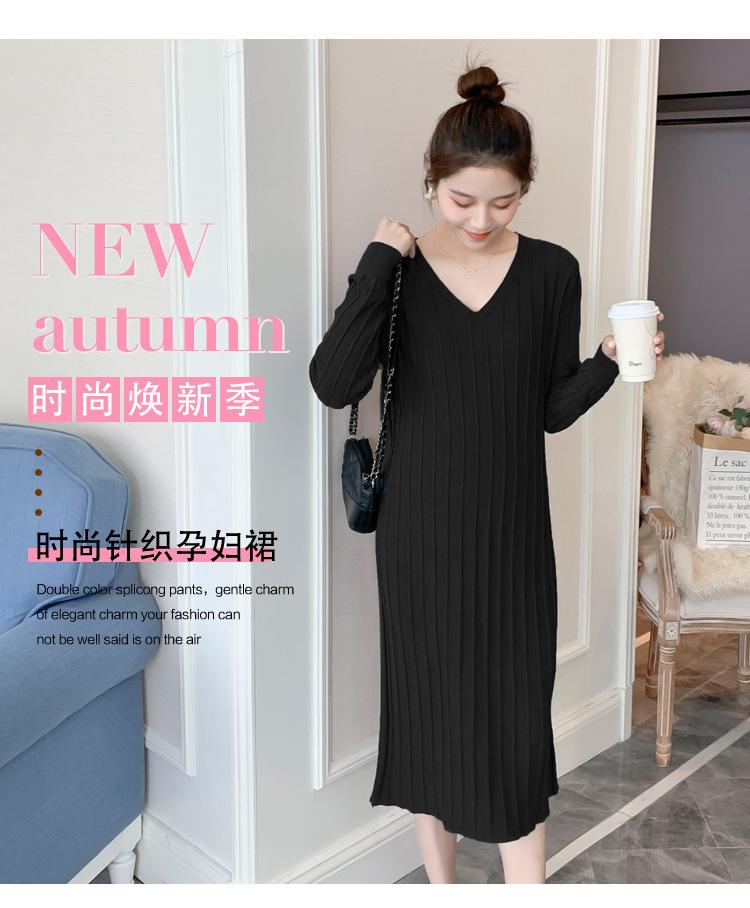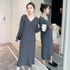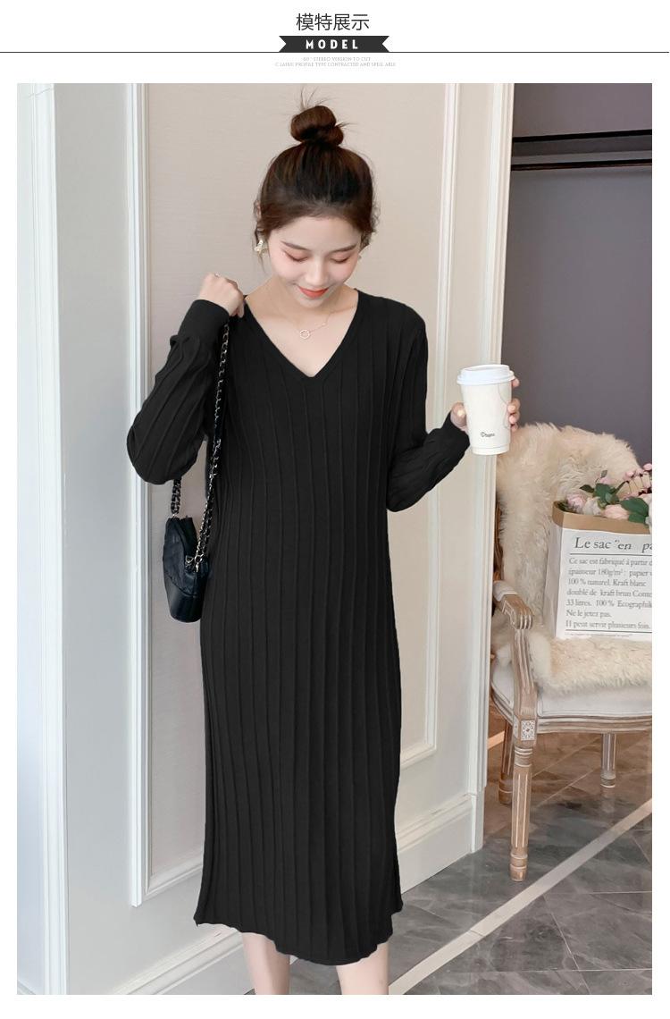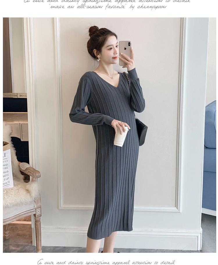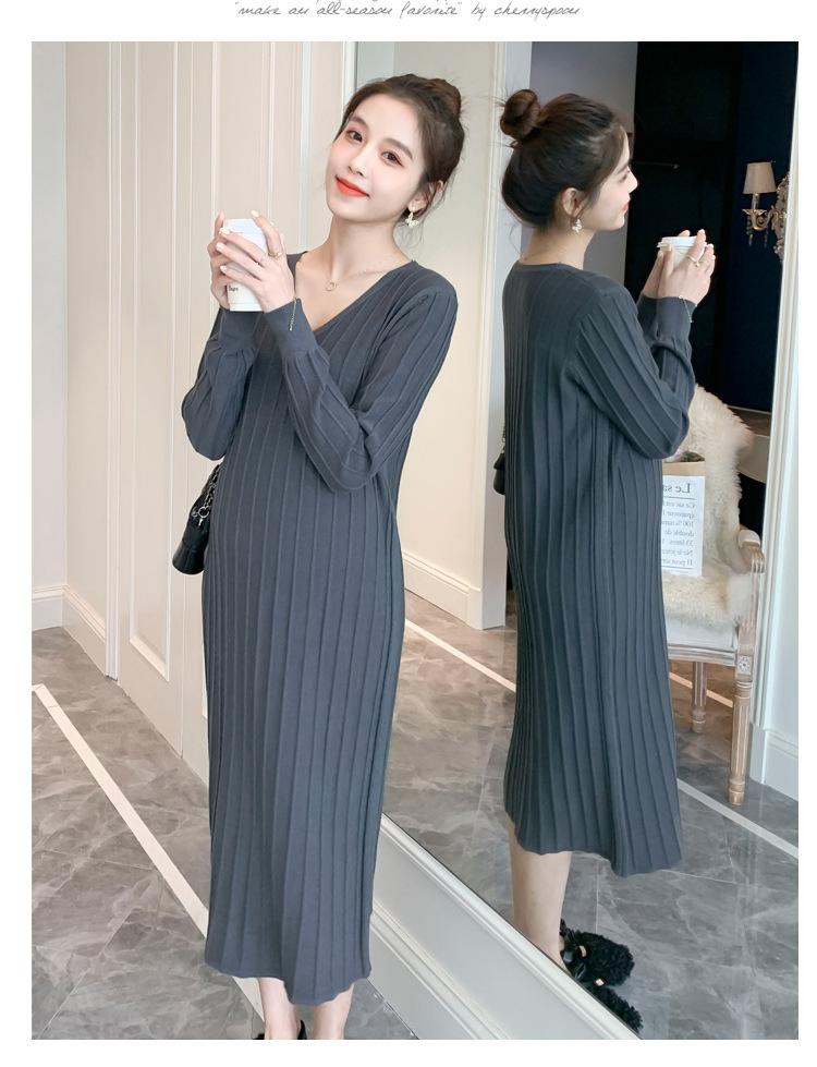 Maternidad 2022 Otoño e Invierno Nuevo Estilo Coreano Moda Versátil Cuello en V Tejido Vestido de Maternidad Sobre la Rodilla